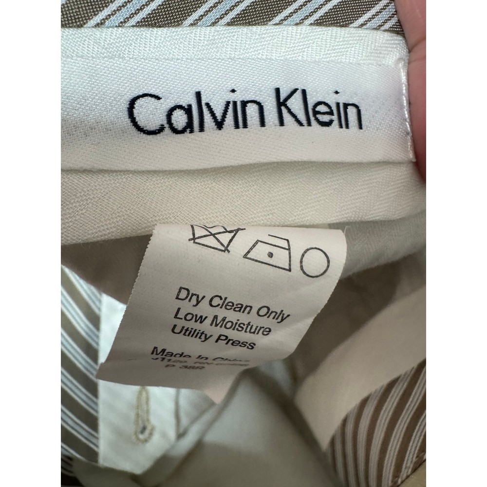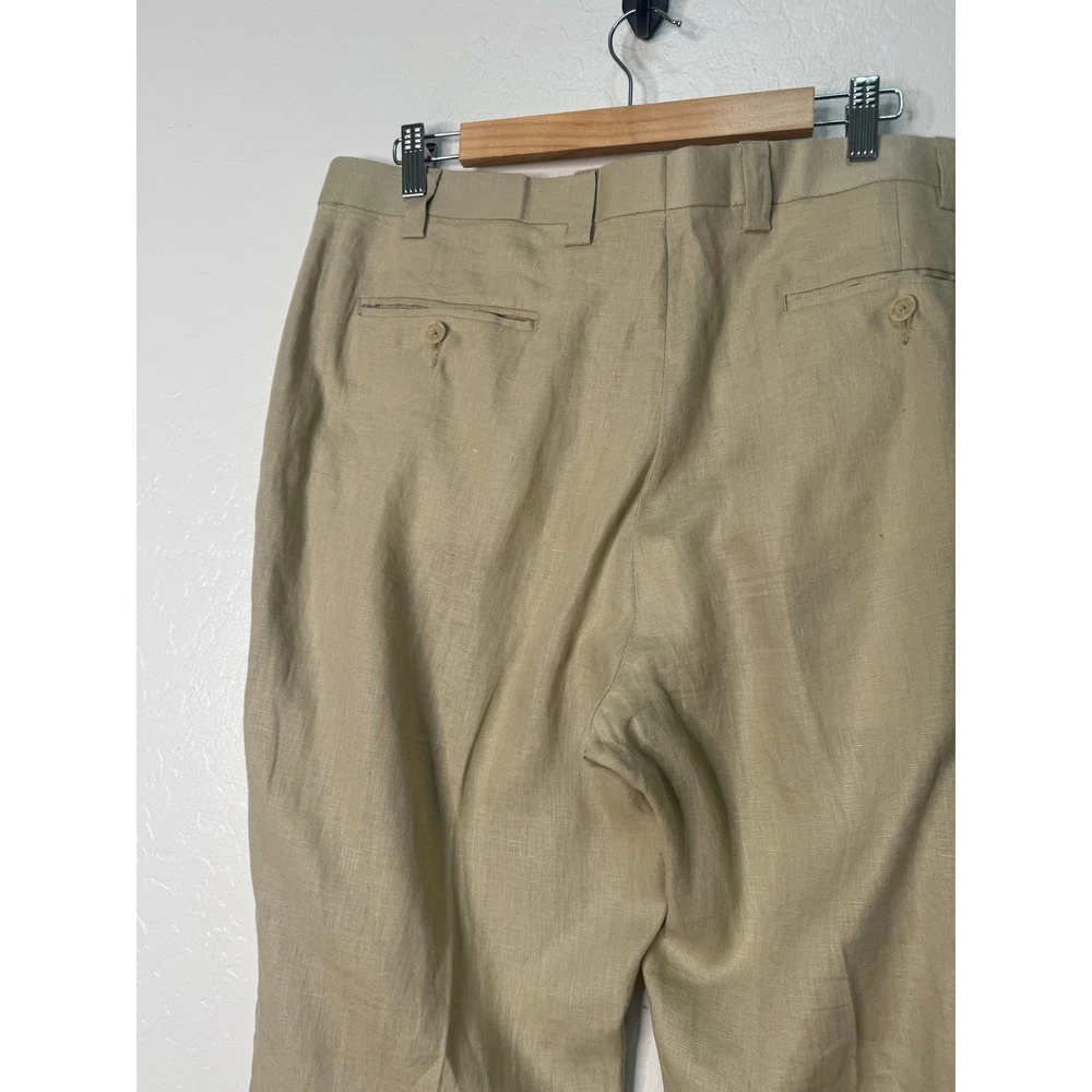 Calvin Klien Mens 100% Linen Tan Trouser Dress Pants Size 38R Lightweight Summer, wedding, vacation 19" Waist 31" Inseam