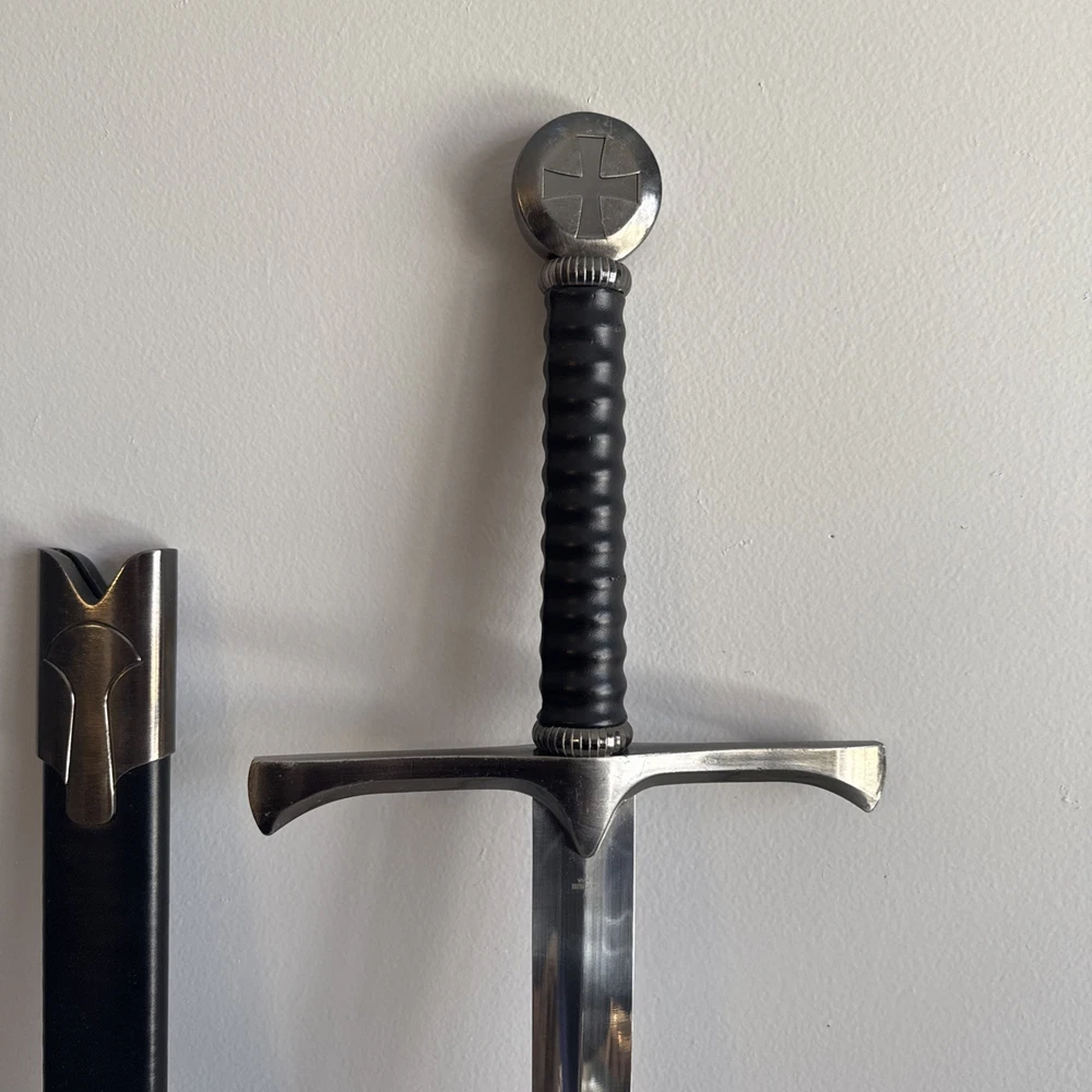 This Camelot Replica King Arthur Sword is a stainless steel cosplay prop decor inspired by the famous King Arthur theme. The sword features a full tang design with an ambidextrous handle made of stainless steel, maintaining the original look and feel. The silver color adds a touch of authenticity to this collectible piece, perfect for fans of King Arthur legends and fantasy enthusiasts. This replica sword is a must-have for those seeking a high-quality and visually appealing piece for display or cosplay purposes.