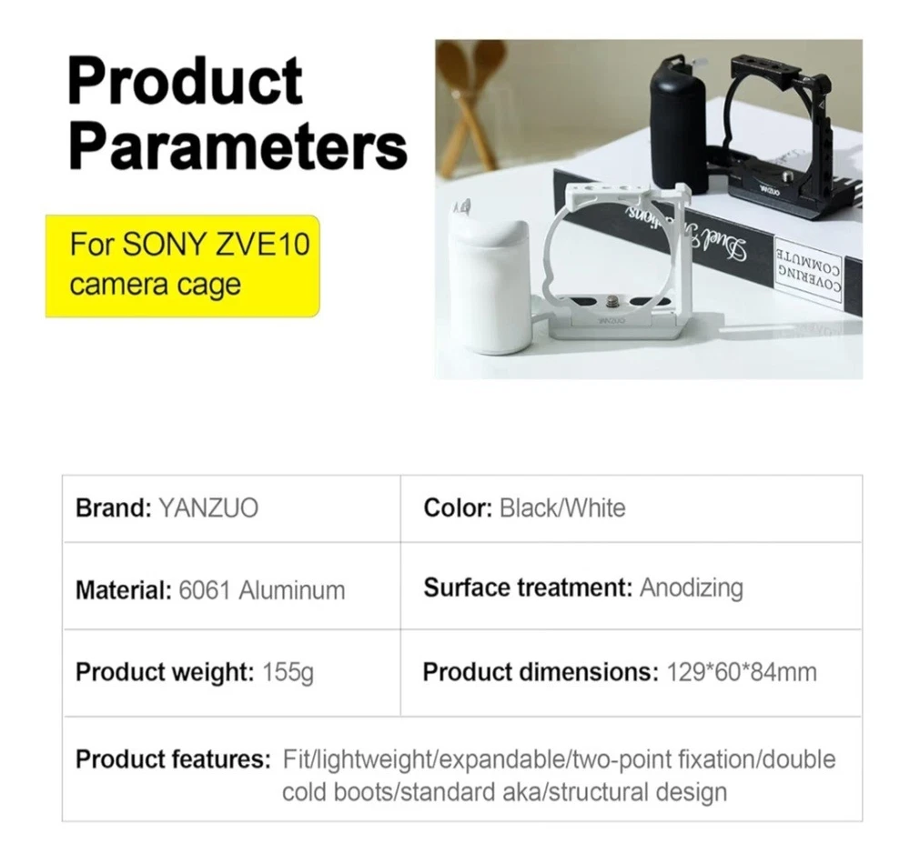 Brand new in the box. We are including a "copy and paste" below of the details/specifications from the manufacturer listing from this specific item. Please note we found this information online. We are selling this item on consignment, which means we only have one on hand, and no other colors are available. We are not a licensed reseller or warehouse. ----------------------------------------------- 【Perfect Balance of Protection & Accessibility】 Maintains the ZV-E10 sleek profile while providing full-frame protection. All camera functions remain easily accessible, including the recording button, mode dial, and various ports, ensuring uninterrupted creative workflow. 【Enhanced Two-Point Locking System】 Features an upgraded dual fixation design with both bottom and side locking points, ensuring your ZV-E10 stays securely in place during dynamic shooting. The non-slip silicone padding provides additional protection against scratches and accidental drops. 【Optimized for Vlogging & Content Creation】 Specifically designed for the ZV-E10 compact body, this cage offers full protection while maintaining access to all ports and controls. The dual cold shoe mounts allow simultaneous attachment of microphone and LED light, perfect for live streaming and video recording. 【Comfortable Silicone Grip & Lightweight Design】 Weighing only 155g, the cage features an ergonomic silicone handle that provides secure, comfortable grip for extended shooting sessions. The smooth rubberized texture ensures stable handling while protecting your camera from accidental slips. 【Modular Design & Quick Release Capability】 Utilizing a versatile modular design that can be configured as a full cage or compact baseplate. The built-in Arca-Swiss plate enables quick transitions between gimbals, tripods and handheld shooting, compatible with RS series stabilizers.