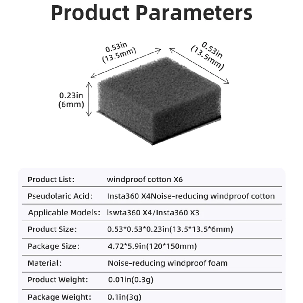You may also like Lens Focus Motor for Niko 18-140 18-300 28-300 24-85/3.5-5.6 Lens 22.59 USD 26.58 USD Free shipping 15% off Quick Release Plate Universal Camera Gimbal Quick Release Plate Tripod Ballhead 6.85 USD 8.06 USD 0.68 USD 15% off Camera Handle Grip Black/ Silver Metal Quick Release Plate for Olympus PEN-F 24.62 USD 28.97 USD Free shipping 15% off Plug and Play Handheld Mobile Power Charging Power Part for DJI Osmo Pocket 3 46.88 USD 55.15 USD Free shipping 15% off For Sony-ZV1 Camera Cage Set Camera Cage Plus Wooden Handle Grip Cold Shoe 33.14 USD 38.99 USD Free shipping 15% off For Hero7 Silver/Hero7 White Camera Lens Cover Lens Glass Replacement Parts 9.32 USD 10.97 USD 3.5 USD 15% off Finger Grip Handle for Leica BigM M9/M9P M8 Camera 23.8 USD 28.0 USD Free shipping 15% off For DJI OM 4/OSMO Mobile 3 Handheld Gimbal Bike Mount Clamp Holder Bracket Stand 10.38 USD 12.21 USD Free shipping 15% off For DJI Mini 4 Pro Body Shell Upper Cover Drone Replacement Parts 31.41 USD 36.95 USD 4.99 USD 15% off 6/9pcs For Leica M2 M3 M4 M5 M6 M7 MP SM Camera Repair Tools Set Camera Wrench 18.84 USD 22.16 USD Free shipping 15% off Jog Dial Unit Turntable Dial Knob Switch for Panasonic AG-UX90 UX180 170 Camera 42.57 USD 50.08 USD Free shipping 15% off USB Protective Cover Protects Against Dust Moisture for Insta360 Ace Pro 14.94 USD 17.58 USD Free shipping 15% off Viewfinder Eye Cup Part Fit for FDA-EP19/ A7R5/ A7RV/ A7M4 /A7SM3/ A1 6.66 USD 7.83 USD Free shipping 15% off Lens Hood Light-blocking Head Protects Against Glare Sunshade Accessories 8.98 USD 10.57 USD Free shipping 15% off Magnetic Quick Release Mount Sports Camera Accessories for Insta360 Ace Pro/Ace 10.65 USD 12.53 USD Free shipping 15% off Lens Protective Cover Cameras Screen Protector Accessories for OSMO POCKET 3 11.37 USD 13.38 USD Free shipping 15% off Tempered Film Protective Film Lens Explosion-proof Film for Insta360 Ace Pro 2 10.13 USD 11.92 USD Free shipping 15% off High Quality Rechargeable Adapter CNC Rechargeable Parts for OSMO Pocket 3 16.13 USD 18.98 USD Free shipping 15% off Product Description Camera Mic Windscreen Noise Reduction Sponge Muffler Windproof Case For Insta360 Feature s: l 100% Brand new and high quality l Made of high quality material, durable and wear-resistant l Noise-reducing windproof cotton, reduces wind noise and passes through the acoustics l Professional acoustic sponge, strictly selected sponge with appropriate density, to reduce wind noise while maintaining the transparency of the sound Specification: l Color :Black l Applicable M odel :For Insta360 X4/X3 Accessories l Quantity: 6 PCS Package: l 1x Camera Noise Reduction Sponge Note: l The product is with Logo, please contact us if you want to view the real picture with Logo pattern. Thank you ! l Due to the light and screen difference, the item's color may be slightly different from the pictures. We guarantee the style is the same as shown in the pictures About Us Payment Shipping Returns Feedback Our company is located in China, East Eight Zone, woking time is 9:00 to 18:00, from Monday to Friday. We mainly accept payment through PayPal . Payment should be done within 7 days after the end of the Auction. Otherwise Unpaid Item Dispute will be filed with eBay. International Buyers Please Note: a) Import duties, taxes and charges are not included in the item price or shipping charges. These charges are the buyer's responsibility. b) Please check with your country's customs office to determine what these additional costs will be prior to bidding/buying. We ship items to your PayPal confirmed address only. Please make sure your address in PayPal is matched with your shipping address before you pay. We are unable to take any responsibility for wrong address, any custom delay or tax. Transit time is highly depended and provided by Postal Service. All items will be dispatched within 1 business day after receipt of payment. Please notice that orders placed on weekends and public holidays will be dispatched on the next working day It may take longer to other countries or remote areas. If you have not received your shipment within 30 days from payment, please contact us. We will track the shipment and get back to you as soon as possible with a reply. Our goal is 100% customer satisfaction. We back our products with a 30-DAY SATISFACTION GUARANTEE! Customers should inspect item(s) and notify us within 30 days of any problems. If you have a problem with your item, please contact us before leaving feedback. All items being returned must be issued an RMA number BEFORE they are returned. Return shipping is to be paid by the Buyer. 12 months Warranty from the date of purchase covering manufacturing defects. This warranty excludes any damage caused by the user. We greatly appreciate your 5-Star POSITIVE Feedback . We have a program which automatically replies as soon as you leave your feedback. We aim to offer each of our valued customers the 100% Satisfaction Product and Service . So if you have any problem, please e-mail us immediately before leaving neutral/negative feedback. We will give you a satisfying solution according to your will. All communications are handled through Email. We strive to answer all emails as fast as we can. About Us Our company is located in China, East Eight Zone, woking time is 9:00 to 18:00, from Monday to Friday. Payment We mainly accept payment through PayPal . Payment should be done within 7 days after the end of the Auction. Otherwise Unpaid Item Dispute will be filed with eBay. International Buyers Please Note: a) Import duties, taxes and charges are not included in the item price or shipping charges. These charges are the buyer's responsibility. b) Please check with your country's customs office to determine what these additional costs will be prior to bidding/buying. Shipping We ship items to your PayPal confirmed address only. Please make sure your address in PayPal is matched with your shipping address before you 