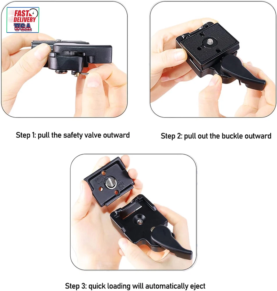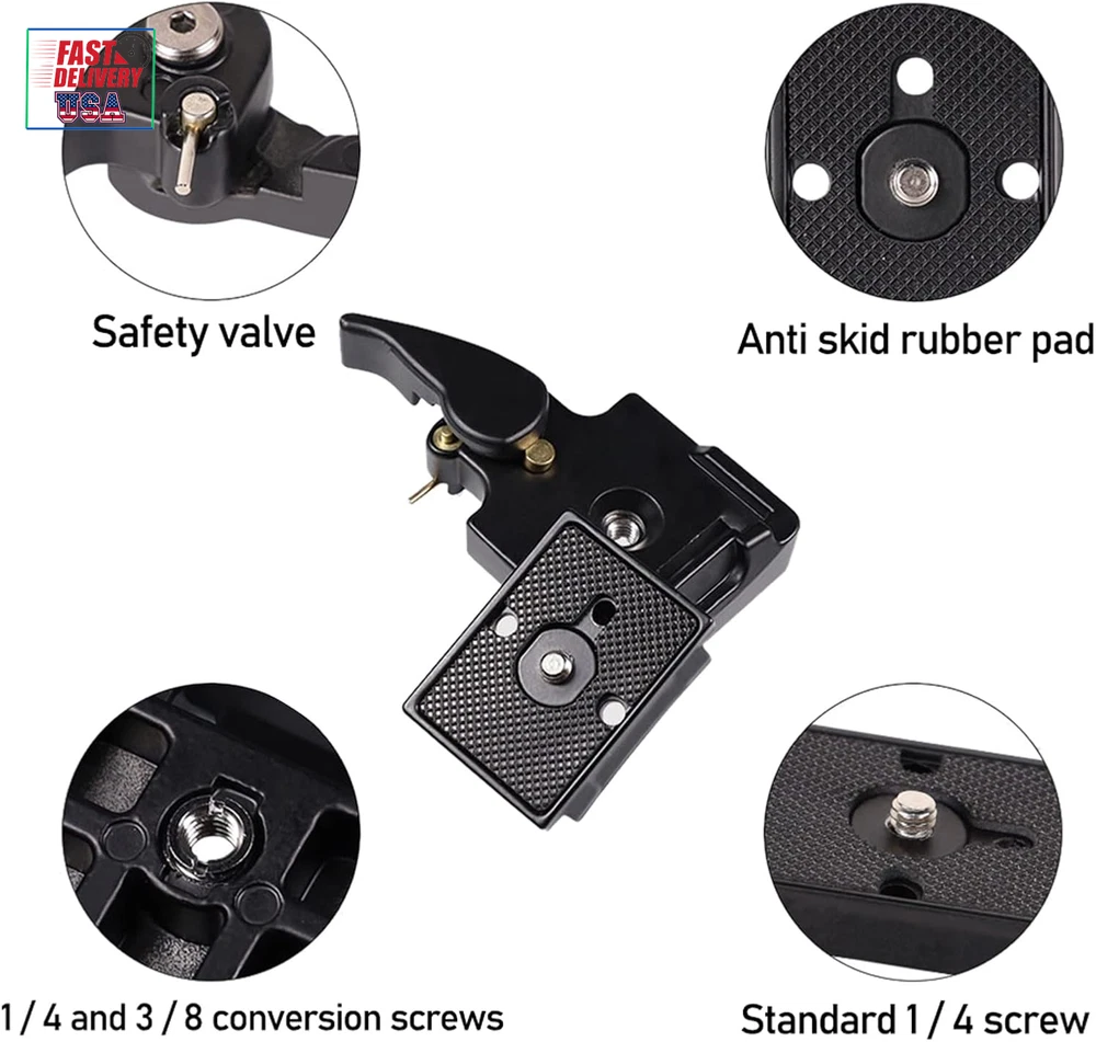 Store New Arrivals Add to Favorite View Feedback Contact Camera Tripod Quick Release Plate Adapter with 1/4'' Screw, 200PL-14 323 Camera Mounting Adapter for Manfrotto, Universal Quick Release Plate System for Camera Gimbal, Black Description Item model number 200PL-14 323 Whats in the box 1 x Quick Release Plate Adapter Mounting Type Tripod Color Black Country of Origin China Compatible Devices Cameras Item Weight 5.3 ounces Special features Rotatable Compatible Phone Models Camera Tripod Made of high quality aluminum alloy material, strong and durable. Will fit either 1/4-Inch or 3/8-Inch tripod mount sockets. With 1/4'' screw and rotating handle on the bottom, the quick release plate can be manually adjusted to connect the camera or flash. Durable Rubber Pad to stop expensive slips and equipped with a bouncing locking system and a cut-off valve, the pan/tilt base makes a more stable and securer connection with the camera. Easy to use.This set can be easily assembled or disassembled as needed, compatible with Manfrotto 200PL-14, suitable for 496RC, 498RC2, 804RC2. Package List: 1 x 200PL-14 Quick Release Plate, 1 x Quick Release Plate Adapter, 1x 1/4'' Screw Adapter. Product Description Quick Release Plate With Adapter For Manfrotto 323 (200PL-14) DSLR Cameras 2-Stage Safety Quick Release System,mount your camera on a tripod easily with this quick release plate. Durable Rubber Pad to stop expensive slips, reduce the wear on the bottom of the camera. Full for Manfrotto 200-PL14 compatibility. 1/4 inch Metal Screw Attachment (to attach to your camera). Locking lever and locking pin make it a dual-lock system,further ensures the locking in case of accidental slip. Mount your camera on a tripod easily with this quick release plate. This camera quick release plate will quickly screw onto your tripod to properly and securely position your camera for the best shooting angle. Screwless designed D-Ring to attach/detach quickly from your camera. Secondary safety system assures secure mounting of photographic equipment. 200PL-14 323 Quick Release Plate Clamp Adapter For Manfrotto Tripod Material : Aluminium Plate : 200PL-14 Color: Black Weight: 676 g / 1.488 lbs Size: 5.7 x 7.8 x 2.2CM Clamp Standard:Manfrotto standard Plate Standard:Manfrotto standard Camera screw:UNC 1/4 screw Use for:Camera tripod Used 1/4 and 3/8 Screws The quick release plate holder is compatible with 1/3 and 3/8 screws, and is compatible with most camera tripods on the market. Quick Double Lock Design Locking lever and locking pin make it a dual-lock system,further ensures the locking in case of accidental slip.Secondary safety system assures secure mounting of photographic equipment. Protect Your Camera Durable rubber pad to stop expensive slips.Mount your camera on a tripod easily with this quick release plate. ABOUT US We offer the best prices around on high quality products. Our E-store includes media such as books, movies, music and games while offering electronics, toys, sporting apparel, clothing, tools, general home, garden items and more. SHIPPING We are always working hard to ensure your package arrives as soon as possible. Please understand that some factors like weather, high postal traffic, and the performance of shipping companies are outside of our control. We offer free shipping to the lower 48 states and ship within 2 business days of payment, usually sooner. We do not accept P.O. Boxes. Please provide a physical address. For shipping outside of the continental USA, we only use eBay's Global Shipping Program.The item is shipped to KY and then sent to the rest of the world. International customers are responsible for all duties and taxes. Continue to check out in order to calculate costs for shipping the item to your country. Messages regarding eBay's Global Shipping Program MUST be directed at eBay EXCLUSIVELY. RETURNS We offer a 30-Day Return Policy on items which you are not completely satisfied with. You have the option for a full-refund or an exchange of the item. No returns are available on items shipped outside of the USA. PAYMENT We accept PayPal. CONTACT US This page content is yet to come Please ad us to your favorite seller and visit again later Thank You CUSTOMER SATISFACTION We try our very best to make sure every customer is completely satisfied. If there's a problem, message us! We're happy to help. WE ACCEPT Copyright © 2021 AutoDS. | All Rights Reserved