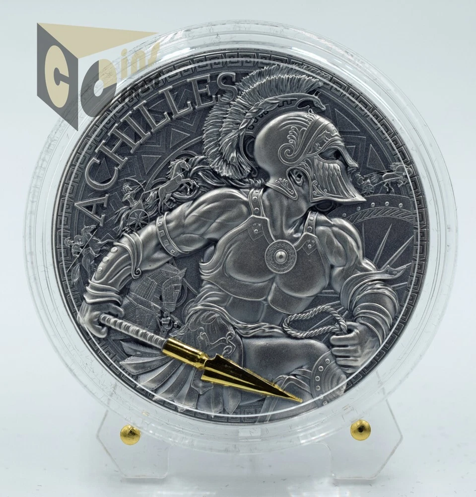 Achilles - Great Greek Mythology Series Country: Cameroon Year: 2023 Meet Achilles – the hero of the Trojan war, the greatest warrior of all. He is the main character in Homer's Iliad, who chooses a short, victorious life instead of a long and idle one. He decided to be brave, and one of his many daring feats is illustrated on this 50 mm coin. With the antique finish, you can see Achilles in the fight near the horses and riders, marching with his golden sphere. Limited mintage to only 500 pcs worldwide. 2 Oz 999 pure silver Ultra High Relief, Antique Finish Highly detailed strike 24K Gold Details Mint Capsule, Presentation Box Certificate of Authenticity Cameroon Legal Tender - 2000 Francs CFA Limited mintage only 500 coins Stands in images are not included Registered shipping with tracking number Discount on shipping for each additional eligible item you buy. Buy More - Save on Shipping Returns are accepted within 30 days of receipt, no questions asked. Buyer pays for return shipping A full refund of the items will only be offered upon receipt of the original item/s in the same condition as they were sent If you have any questions, don´t hesitate, just ask Have a look on my other items and Buy With Confidence Item Description All items are 100% authentic , in Perfect Condition . I post high resolution photos, but you can ask more (photos) in case you notice something. Shipping All orders will be shipped within 3 business days (usually next day) from the day payment is received, from Cyprus, via International Registered Mail, complete with tracking information. Shipping time varies depending on the buyers' location. Combine Shipping - Automated Discount on Shipping for Each Additional Eligible Item you Buy if you face any problem, p lease use Add to Cart and in the end Request Total. Questions Feel free to contact me if you have any questions. Feedback Once your item has arrived, please post positive feedback and I will know that your item has arrived safely. Once receiving feedback, I will post a positive one for you also. I am waiting these feedbacks so to know that this transaction is been completed and you are a satisfied buyer. If you are NOT satisfied PLEASE EMAIL ME FIRST BEFORE LEAVING FEEDBACK! I ALWAYS try to solve any problems.