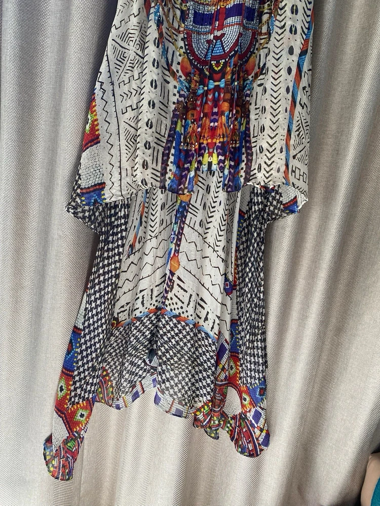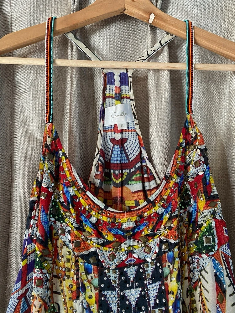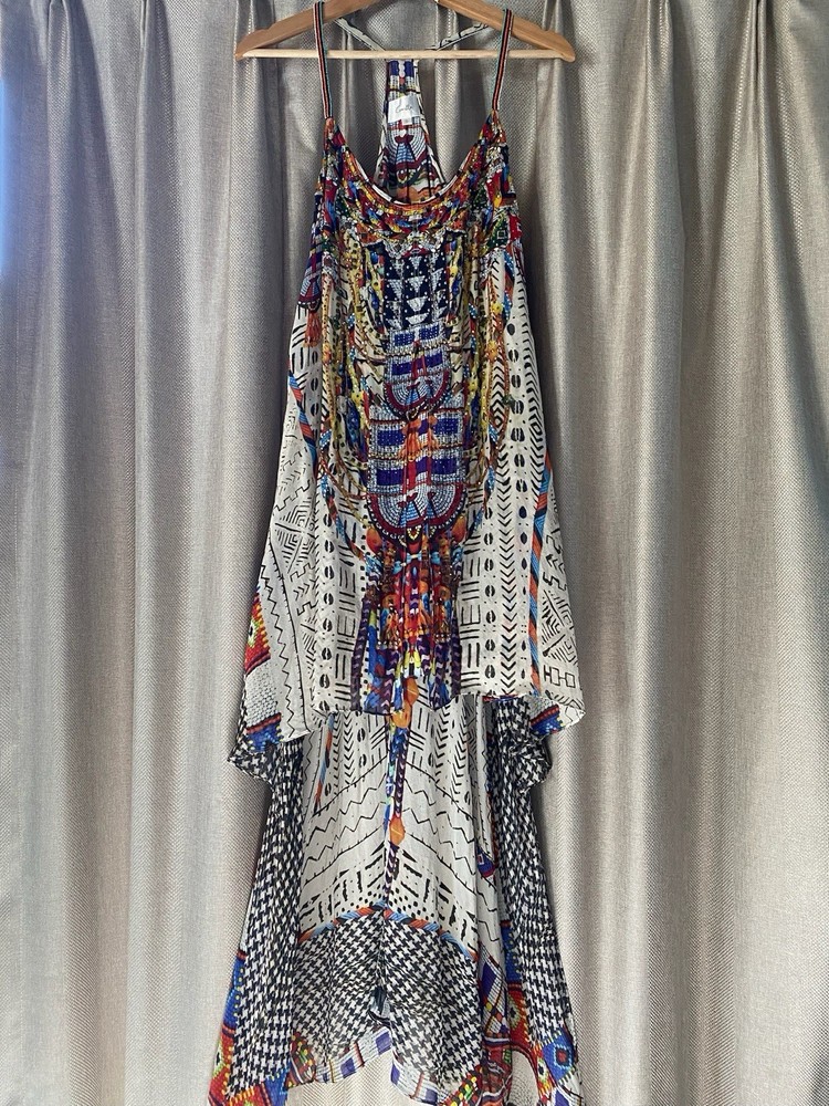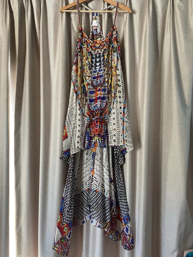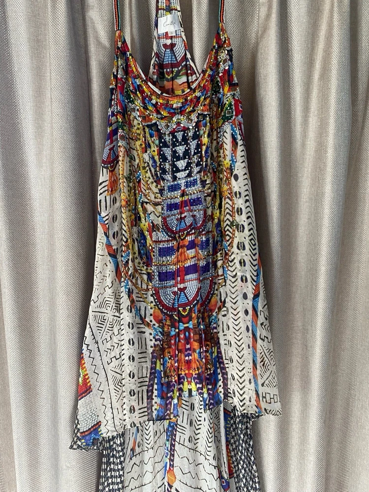 Camilla Dress Echoes of Engai Size Small Front Split Silk Dress Hilo Racer Back