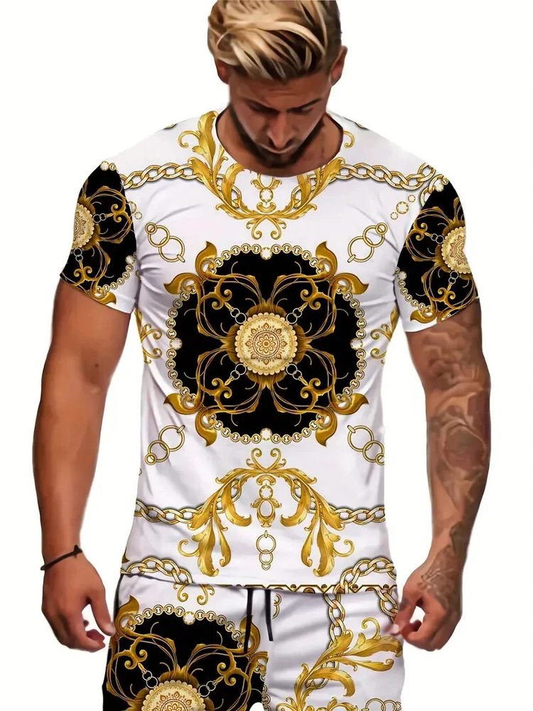 T-Shirt Novelty Fashion Golden Chain Casual Short Sleeve Vintage Round Neck M, L, XL, 2XL, 3XL - Ultra Soft & High Quality Material for Comfort and Durability - Machine Washable, Easy Care - Smooth & Lightweight Fabric for Sport Performance - Shrink Resistant Material Wicks Sweat & Dries Fast - Super Fast Shipping from USA