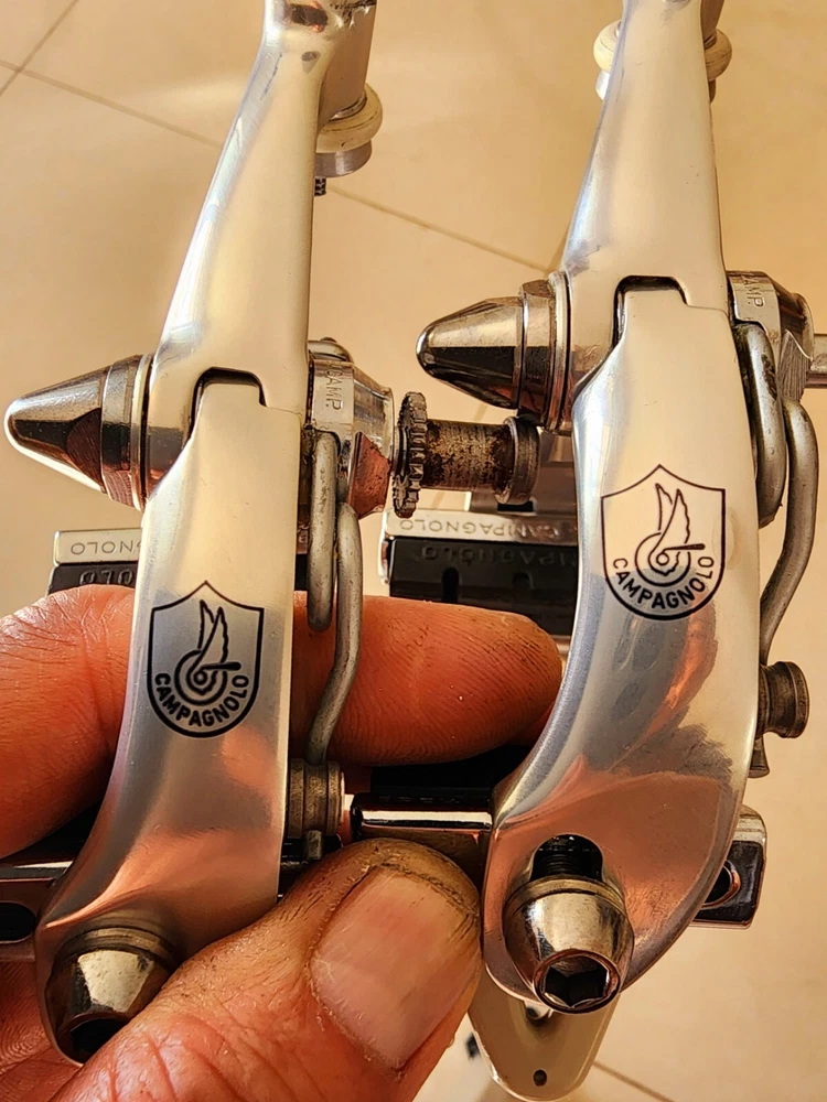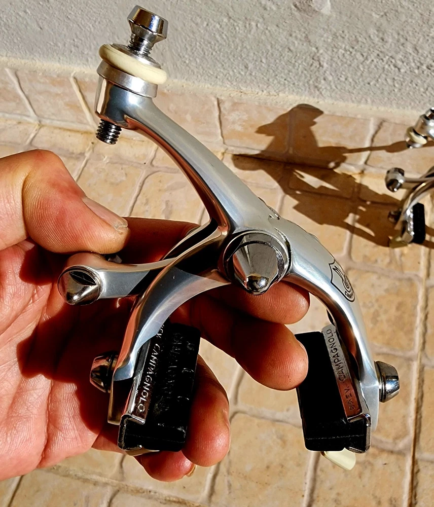 Model:1987-89Material:AluminumBrake Type:Rim BrakeBrand:CampagnoloCompatible Bike Type:Road Bike, Racing Bike, BMX Bike, BMX Bike - Flatland, BMX Bike - Racing, City Bike, Folding Bike, Time Trial/Triathlon BikePosition:Front & RearNumber of Items:1Set Includes:Brake SetColor:SilverPart Type:Brakes