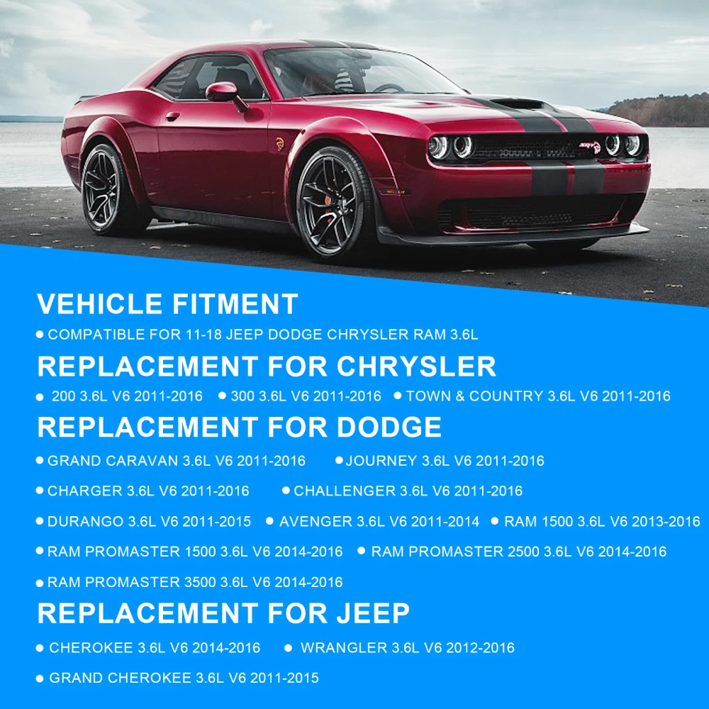 WHY OUR CUSTOMERS KEEP SHOPNG WITH US ✅All items are covered by manufacturer warranty. ✅FAST FREE SHIPPING. ✅Most orders ship within 1 business day with Tracking Number. Customer also can choose two-day or expedited shipping. ✅100% customer satisfaction is backed by a 30-Day Money Back Guarantee for New items and a 30-Day Money Back Guarantee for Recon. FEATURES Camshaft Rocker Arms Lifters Kit for 11-16 Chrysler Jeep Dodge 3.6L V6 Pentastar WHY OUR CUSTOMERS KEEP SHOPNG WITH US ✅All items are covered by manufacturer warranty. ✅FAST FREE SHIPPING. ✅Most orders ship within 1 business day with Tracking Number. Customer also can choose two-day or expedited shipping. ✅100% customer satisfaction is backed by a 30-Day Money Back Guarantee for New items and a 30-Day Money Back Guarantee for Recon. FEATURES 【3.6 Pentastar Engine Rebuild Kit】05184377AF, 5184377AG Left Side Exhaust Camshaft | 05184378AF, 5184378AG Right Side Exhaust Camshaft | 05184379AF, 5184379AG Left Side Intake Camshaft | 05184380AF, 5184380AG Right Side Intake Camshaft. 【Enhanced Engine Performance】Over time, the performance of your truck’s factory camshaft may dwindle down, making your vehicle exhibit a less than satisfactory driving performance. If you want to regain your truck’s lost performance, then replace your factory camshaft with this OEM Camshaft. Just like your original camshaft, this camshaft works at a stock basic operating RPM range, allowing your truck to achieve the power it needs in conquering challenging trails. 【Durable Construction】This 5184377AG/5184378AG/5184379AG/5184380AG camshaft kit is constructed using high-strength materials. With its durable build, the camshaft is able to resist impacts and endure your truck’s tough driving performance. HAYIAUTO 3.6L V6 Engine Camshafts Rockers Lifters Kit won’t easily wear or break even when exposed to extreme driving conditions.Each component is designed to meet or exceed OEM standards, ensuring reliable performance and durability for your engine. 【Signs of Engine Camshafts Kit Failure】①Engine Misfires; ②Ticking or Clicking Noises;③Loss of Engine Performance;④Rough Idle;⑤Low Oil Pressure Warning Light.We use professional-grade components in Camshafts Rockers Lifters Kit, each part undergoes rigorous testing and quality control measures, providing you with a reliable and durable solution for your engine. With our Camshafts Rockers Lifters Kit, you receive a comprehensive kit required for a complete overhaul. FITMENTS FOR2011-2015 3.6L pentastar engine, not for VVL (Variable Valve Lift) 2011 - 2015 CHRYSLER 200 3.6L V6 DOHC (24-VALVE) 2011 - 2014 CHRYSLER 300 3.6L V6 DOHC (24-VALVE) 2011 - 2015 CHRYSLER TOWN & COUNTRY 3.6L V6 DOHC (24-VALVE) 2011 - 2014 DODGE AVENGER 3.6L V6 DOHC (24-VALVE) 2011 - 2015 DODGE CHALLENGER 3.6L V6 DOHC (24-VALVE) 2011 - 2015 DODGE CHARGER 3.6L V6 DOHC (24-VALVE) 2011 - 2015 DODGE DURANGO 3.6L V6 DOHC (24-VALVE) 2011 - 2015 DODGE GRAND CARAVAN 3.6L V6 DOHC (24-VALVE) 2011 - 2015 DODGE JOURNEY 3.6L V6 DOHC (24-VALVE) 2011 - 2014 JEEP GRAND CHEROKEE 3.6L V6 DOHC (24-VALVE) 2012 - 2015 JEEP WRANGER 3.6L V6 DOHC (24-VALVE) 2013 - 2015 RAM 1500 3.6L V6 DOHC (24-VALVE) 2011 - 2014 VOLKSWAGEN ROUTAN 3.6L V6 DOHC (24-VALVE) OEM NUMBER Camshaft Part Number: 5184377AG 5184378AG 5184379AG 5184380AG; Rocker Arm Part Number: 5184296AH; Lifters Part Number: 5184332AA; Intake Pipe Gasket Part Number: 5184562AA, 5184331AC; Valve Cover Gasket Part Number: 5184595AE, 5184596AE. Timing Chain Kit Part Number:5184355AE, 5184352AE, 5184357AD, 5184356AD, 5047891AA, 5047891AA, 5047886AA, 5184392AD, 5047794AA, 5047791AA, 5047790AA, 5184093AE, 5047966AA, 5184273AD, C511, C512, S1006, S1023, 95747, 95752, 95751, 95748, 95750, 95749, 95754, 95753, 95755, C513 Camshaft Phaser Part Number: 5184370AH, 5184369AH Oil Control Valve Part Number: 5184150AF Head Gasket Bolts Kit Part Number: HS26541PT, ES72467 Oil Pump Part Number: 68252670AB, 68252670AA, 05184295AG, 05184295AF Water Pump Part Number: 5184498AD, 5184498AE, 5184498AH, 5184498AI ITEM INCLUDES It changes with your choice, please ask me if you have any questions FREE RETURN If you are unhappy with your purchase for any reason, you can return it to us in an un-used condition in the original packaging within 30 days of purchase and we'll give you a refund or exchange. The refund/Exchange will not include postage/eBay costs. Please note you MUST contact us to obtain a Return Authorization Number before returning any part. Any parcel without the Return Authorization Number will be rejected *If your item is faulty or was incorrect, you must contact our sales representative before returning the parcel and we will endeavour to solve the problem effectively. Video or picture is required to show the item 、condition before we issue the Return Authorization Number. * Professional installation is highly recommended (No Instruction Included) * For any needs please contact us Item Specifics Brand : susucar Type : Camshaft Kit OE/OEM Part Number : 5184377AG 5184378AG 5184379AG 5184380AG Items Included : AS THE OPTION CHANGED!!! Manufacturer Warranty : 2 Years Material : Steel Finish : Polished Left Side Exhaust Camshaft Part Number : 5184377AG 5184377AD 5184377AE 5184377AF 05184377AH Right Side Exhaust Camshaft Part Number : 5184378AD, 5184378AE, 5184378AF, 5184378AG, 05184378AH Left Side Intake Camshaft Part Number : 5184379AD, 5184379AE, 5184379AF, 5184379AG, 05184379AH Right Side Intake Camshaft Part Number : 5184380AD, 5184380AE, 5184380AF, 5184380AG, 05184380AH Rocker Arm Part Number : 5184296AH Lifters Part Number : 5184332AA Intake Pipe Gasket Part Number : 5184562AA, 5184331AC Valve Cover Gasket Part Number : 5184595AE, 5184596AE Head Gasket Bolts Kit Part Number : HS26541PT, ES72467 Timing Chain Kit Part Number : 5184355AE, 5184352AE, 5184357AD, 5184356AD, 5047891AA Timing Chain Kit Part Number 2 : 5047891AA, 5047886AA, 5184392AD, 5047794AA, 5047791AA Timing Chain