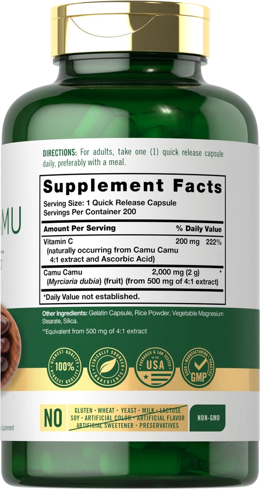 Camu Camu Capsules | 2000mg | 200 Count | With Vitamin C | Non-GMO | by Carlyle