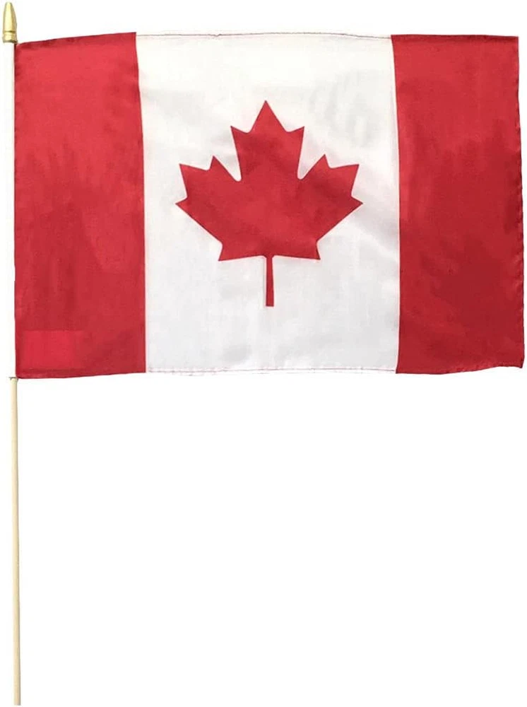 Quantity: 1 12"x18" 100% 68D Polyester Stick Flag 24" Wooden Staff Ships Super Fast From USA Canada Canadian Country 12x18 12"x18" 68D Woven Polyester Nylon Stick Flag On 24" Wooden Staff - Imported - Made in China - Ships Super Fast From USA