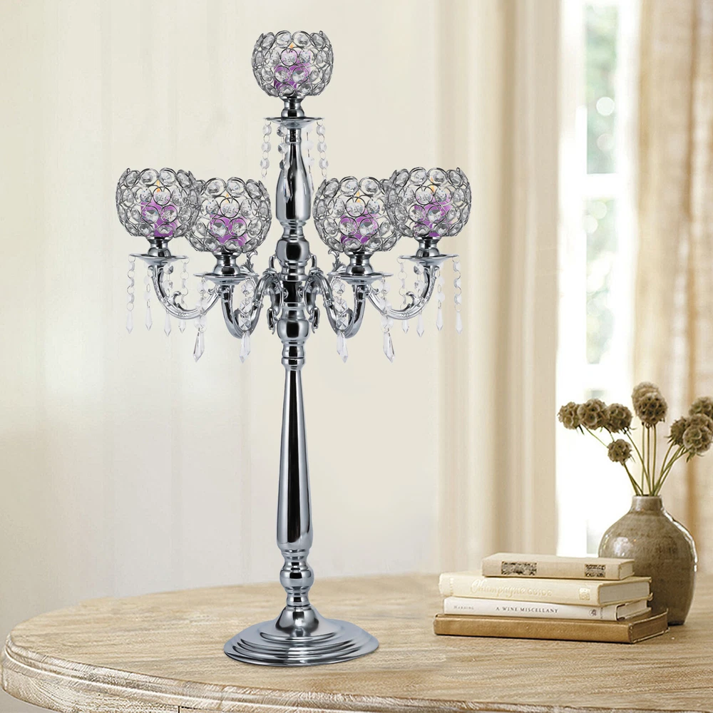 Specification Color: Silver Style: Stylish, Luxurious Material: Iron, Glass, and Acrylic Surface Treatment: Electroplating Applicable Candle Diameter: 5.5cm/ 2.17in Each Head Diameter: 10cm/ 4in Base Diameter: 36cm/ 14.2in Candle Holder Height: 75cm/ 29.5in Candle Holder Width: 55cm/ 21.6in Package Size: 50*24*24cm/ 19.69*9.45*9.45in Net Weight: 4.5kg/ 9.92lbs Gross Weight: 5kg/ 11.02lbs Package Included 1* Five-arm Candelabra Candelabra 5 Arms Tall Floor Crystal Candlestick Holders for Pillar Candle European Style Long Table Crystal Candlestick Hotel Wedding Decoration Candlestick Decoration Romantic Atmosphere Candlestick Christmas Decoration D escription 🕯 🎅 _ Classic and timeless! Let's add a touch of old-time beauty to the tabletop and dinner setting with this five-arm candle holder, adding a pleasant and soothing mood to your dinner! With its elegant design, it is not only a candle holder but also a decoration in your room. It can be placed in your living room, bedroom and study. It can also be used as a gift for your family or friends! KEY FEATURES 🕯 5 Candle Arms The 5 arms fit all candles within 5.5cm/ 2.17in diameter. And they are set at different heights, creating a symmetrical visual appeal for you. Top Candle Holder The top candle holder is designed like the shape of a cup, and the edge is raised to ensure that the candle can be placed on it stably. Application This five-arm candelabra can be placed in the living room, bedroom, office, etc. It is also a novel gift for the graduation ceremony, anniversary, New Year, Christmas, and some other festivals. Fine Workmanship Each candle head is made of selected high-quality glass beads, and its openwork carved design conveys a sense of natural freshness and dignity. And it uses all-metal welding. Elegant Design Sparkling crystal drops glisten in the light and beautifully reflect the light onto the curved branches. Stable Placement The base of this candle holder is a 36cm/ 14.2in diameter disc design. The enlarged round base is more solid. _WHAT'S MORE_ Atmosphere Maker: Let the light be present and bring you a soothing atmosphere with candlelight. Light up the night and enjoy a spectacular candlelight show. Light Weight: With a weight of 4.5kg/ 9.92lbs, the five-arm candelabra is light enough to be moved anywhere you want, facilitating your daily use. Ideal Gift: The elegant silver look combined with the delicate engraving style gives this candle holder a gorgeous appearance, making it a great decorative piece. You can give it as a gift to your friends or family. Ideal Decoration: Put the finishing touches on dining tables with a piece of classic art. Design and decorate exquisite tables for indoor or outdoor parties or weddings. High Durability: This five-arm candelabra is made of iron, glass, and acrylic material with electroplating treatment, which makes it rust-proof and durable, allowing you to use it for a long time without worrying about fading. Easy to Clean: You can easily clean it without much effort and time because of its smooth surface and fewer gaps. If there is dust, just wipe it off with a towel. Easy to Install: The body of the candle holder is already assembled and you just need to join them together to get an elegant 5-arm candle holder! Specification 🕯 Color: Silver Style: Stylish, Luxurious Material: Iron, Glass, and Acrylic Surface Treatment: Electroplating Applicable Candle Diameter: 5.5cm/ 2.17in Each Head Diameter: 10cm/ 4in Base Diameter: 36cm/ 14.2in Candle Holder Height: 75cm/ 29.5in Candle Holder Width: 55cm/ 21.6in Package Size: 50*24*24cm/ 19.69*9.45*9.45in Net Weight: 4.5kg/ 9.92lbs Gross Weight: 5kg/ 11.02lbs Package Included 1* Five-arm Candelabra 🧐Notes Please use a soft, dry cloth for cleaning. Please note the safety rules for fire and candles. And we recommend using electronic flameless candles instead of burning candles. Please allow the slight color difference caused by the shooting light and 1-3 cm error due to manual measurement, and make sure you do not mind before ordering. Payment Delivery details Terms of sales About us Contact us Payment We accept ebay payment 。 Fees such as import duties, taxes are not included in the item price or shipping costs. These charges are the buyer's responsibility. Delivery details Shipping: 2-9 working days to: USA Terms of sales We maintain high standards of excellence and strive for hundred percent customer satisfaction. Feedback is very important to us. We hope that you contact us immediately before you give neutral or negative feedback, so that we can address your concerns. It is impossible to address issues if we do not know about them! About us Your satis faction is our ultimate goal. We work hard to earn your trust and future business. Our certified technicians have tested each item before shipping. The unit comes with 1 year limited warranty on all manufacturing defects. a) If you receive a defective item, you may return it or ask for a discount. Please contact us within 14 days after you receive the package. b) What you returned must be intact and in its original packaging as re? u. Customer is responsible for shipping costs of the returned item. c) We will cover the cost of shipping back t with the shipping rate indicated in the registration page. We will send you a new unit or refund the full payment you paid. Thank you. Contact us Business Hour Business Hour: Monday To Friday: 8:30 AM to 5:00 PM (Beijing China time) Due to time zones, our reply to your questions may not be immediately. But within above working time, we will reply your email within 24 hours. If it's non-workdays, please kindly be patient and wait till Monday. Please contact us with ebay message. Please feel free to contact us if you have any questions. Monday To Friday: 8:30 AM to 5:00 PM (Beijing China time) Due to time zones, our reply to your questions may not be immediately. But within above working time, we will reply your email within 24 hours. If it's non-
