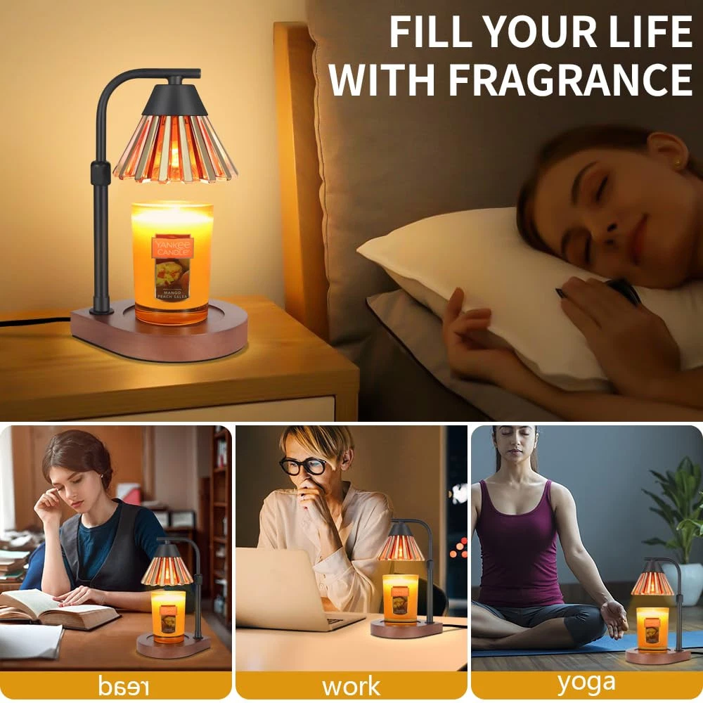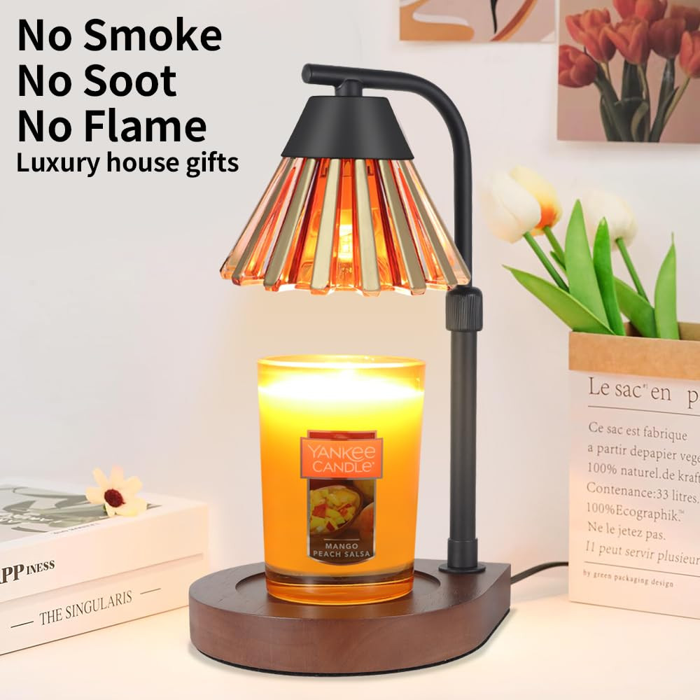 ENVIRONMENTALLY SAFE CANDLE WARMER: Equipped with a 50 watt halogen heating bulb (included), the candle warmer lamp provides a safe and environmentally friendly way to enjoy candles. No open flame, no smoke, no soot, no pollution, reduce the risk of fire. Candle light heaters are cleaner and more efficient. Ideal for sustainability and safety. EFFICIENT & ADJUSTABLE, SCENT IN MINUTES:candle warmer uses a 50W GU10 halogen bulb to melt candles and wax from top to bottom for fast and efficient scenting. With the dimmer control of the Aesthetic Home Decor Lights Candle Warmer, you can adjust the melting speed. The brighter the environment, the faster it melts. In addition, you can set the 2/4/8 hour off function of this candle warmer lamp with timer. PERFECT HOME DECOR:This candle warmer is a stylish combination of wooden base, metal body and glass shade, blending classic and modern design. Wax melting warm smelling wax as delicate and functional decorative lamp used for bedroom decor, living room decor aesthetics, den, office, yoga room, and more. FITS ALL SIZE CANDLES: There is a safe distance from the base of this candle warming lamp to the shade, with Yankee candles and most different types of jar candles or wax. Under the wooden base, non-slip pads are added for stability, making you feel safer when using this candle warming lamp. Say goodbye to candle flames and protect your house from fire hazards with halogen bulbs. BEST GIFT FOR MOM:Show your love to your family, loved ones or friends with this housewarming gift. Elegant appearance and practical performance make these candle lights a birthday gift for women, mother's day gift for mom. Suitable for Mother's Day, Valentine's Day, Easter, graduation gift, Father's Day gift, teacher gift, Halloween, Thanksgiving, Christmas, birthday gift for mom.