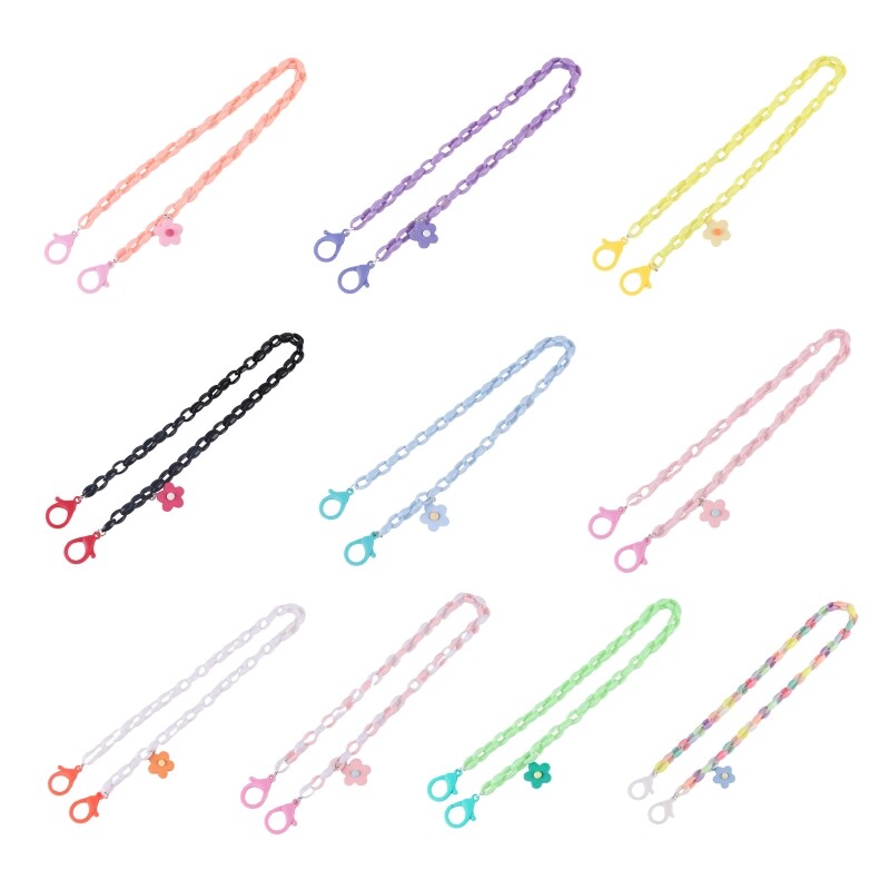 Description: Features: brand new and high quality flower pendant, sweet candy colorful acrylic chain, 10 colors optional. Can be used for mask lanyard, or buckle lobster clasp for fashion oval chain necklace. Made of high quality acrylic, hypoallergenic, will not irritate your skin, lightweight, comfortable. Large lobster clasp fits most masks and doesn’for t slip off like clip. Keeps your mask within reach and helps avoid contamination by laying down on other surfaces. Just grab your ear loops and put it on. Like eyeglass or sunglasses holder. Notice: Not Including Face Mask!! Specification: Material: Acrylic Length: app. 58cm(22.83in) Optional Color: 2 3 4 5 6 7 8 9 10 Quantity: pc Note: 1cm=10mm=0.39inch No retail package. Please allow 1-3cm error due to manual measurement. pls make sure you do not mind before you bid. Due to the difference between different monitors, the picture may not reflect the actual color of the item. Thank you! Package includes: x Mask Lanyard(Mask is not included!)(other accessories in the picture is not included.)