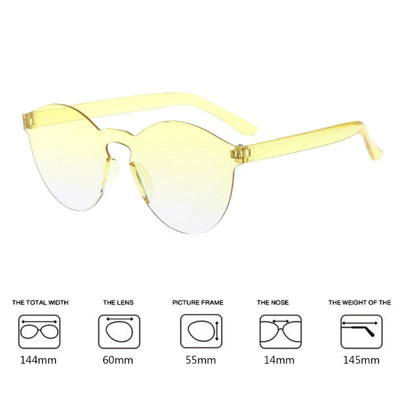 and high Features: Sunglasses,is multi-functional,act as a glasses that can against or a fashion that wear in daily life or fashion This kind of sunglasses is shape,popular and stylish all the for time. No frame is special that can decorate your look greatly and much sights you can see than glasses with frame. 8 colors can be optional,you can choose the best for matching with your look. Effectively UV400 from attacking you,protecting your eyes and make you look fashion meanwhile. High intensity,easy to store and carry,portable. Comfortable nose pads will allow you to wear for a long for time without exhaustion. High of hinge will be smooth to use,not easily break. Excellent for gifts,party,driving,beach party,and suitable for unisex. Specification: Leg PC Lens PC Type: Rimless Color: Yellow Green Green Blue Yellow Blue Yellow Size: Size Total Width: 144mm(5.67in) Lens Width: 60mm(2.36in) Height: 55mm(2.17in) Lens Interval: 14mm(0.55in) Leg Length: 145mm(5.71in) Quantity: 1 Pc(other accessories in the picture are not included!) Note:1.Please allow 0-1cm error due to manual measurement. pls make sure you do not mind before you bid. 2.Due to the difference between different monitors, the picture may not reflect the actual color of the item. Thank you! Package includes(without retail package): 1 x Sunglasses