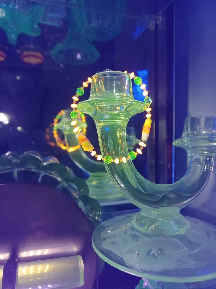 Whether you're dressing up for a special occasion or just want to add some sparkle to your everyday look, this bracelet is the perfect accessory. It's made from high-quality materials and is designed to last for years to come. So why wait? Add this gorgeous Candy Corn Glowing Bracelet to your jewelry collection today! Czech cadmium, uranium beads used. This is a handmade item.