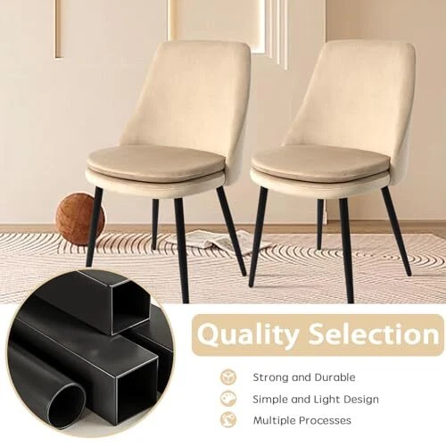 CangLong Upholstered Velvet Dining Chairs Set of 4 , High Back Armless Boucle Dinner Chairs with Metal Legs for Home Kitchen , Living Room & Meeting Room , Light Coffee Premium Quality materials:resistant steel frame, to last for many years of intensive daily use. The velvet seating upholstery and Slab foam filling of the cushion are of superior quality, while the tailored-stitching Backseat details add to the modern design of the chair This chair is developed having your comfort and health in mind. The comfortable seating and strong base are complemented by a well-designed metallic footpad, helping maintain and improve your posture while providing your lower back The support it requires Adorned with luxurious velvet for decorative appeal providing a plush comfort, the fluffy seat also boasts superb elasticity and strong resilience for snugness.Whether drawn up to a dining table for a stylish meal, a side chair like this is a versatile accent wherever you need it Multiple Usage: The Velvet Cushion chairs can be used in the dining room, kitchen room, living room, guest room, vacation house as a reading chair, tea corner chair or desk chair, etc If you have any questions, please feel free to contact us via email and we will give you a satisfactory solution immediately