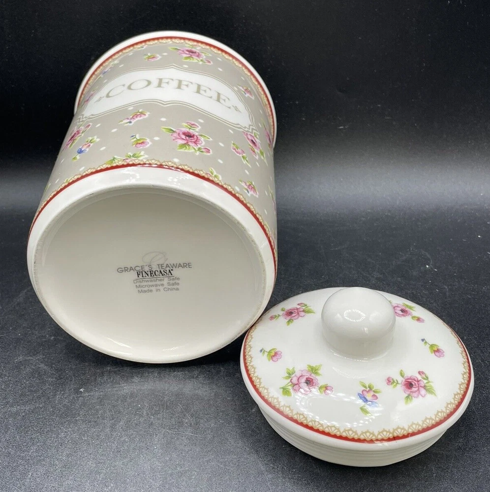 Add a touch of elegance to your kitchen with this beautiful coffee canister from Grace's Teaware Finecasa. Made of high-quality ceramic material, this canister features a lovely pink floral pattern with the word coffee in the center that is sure to brighten up any countertop. The canister is round in shape and has a lid that is sealed to keep your coffee fresh and flavorful. This coffee canister has one compartment and measures 4 inch diameter and 7 inches in height, making it a medium-sized canister that can hold enough coffee for a few days. It is an original and licensed reproduction from Grace's Teaware and is perfect for coffee lovers who want to display their love for coffee in their kitchen. New without box. No visible damage, wear or discoloration. Offered a s a Buy it Now for $25.00. Enjoy & Thank you for looking. Shipping and handling times are within 1 business day of payment. All of our items are shipped Monday thru Saturday, excluding holidays. Our shipping fees are calculated by dimensions and weight, and are shipped USPS, UPS and FedEx. We always try to save our customers by going with the most efficient, safest cost. We do request payment at close of sale, pending prior agreements made before closing. Any unpaid items will have cases opened after two (2) days of Non-Payment and those non-paying bidders will be blocked from future sales/auctions. We are happy to combine items and shipping on request. Please let us know about multiple items before payment so we can adjust the shipping. If there are any questions or concerns relating to Ebay transactions at any time, we are available to give responses as soon as possible. Follow us and receive updates on new listings. We try and list new items daily. Please don’t forget to leave us Feedback and Thank You for visiting our store! We ALWAYS appreciate your business. T22