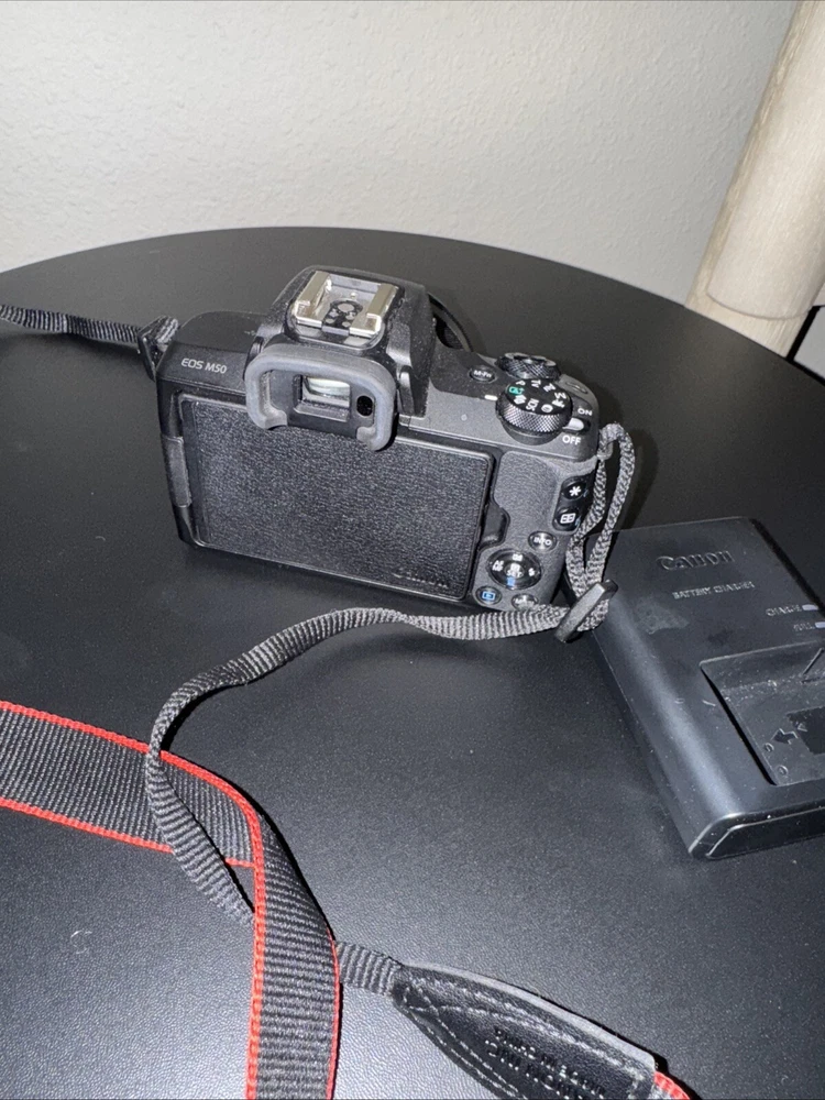 Canon EOS M50 w/ 15-45mm f/3.5-6.3 IS STM Lens. Has been used 3 times. In great condition, free of scratches. Comes with strap, battery, battery charger, and lense