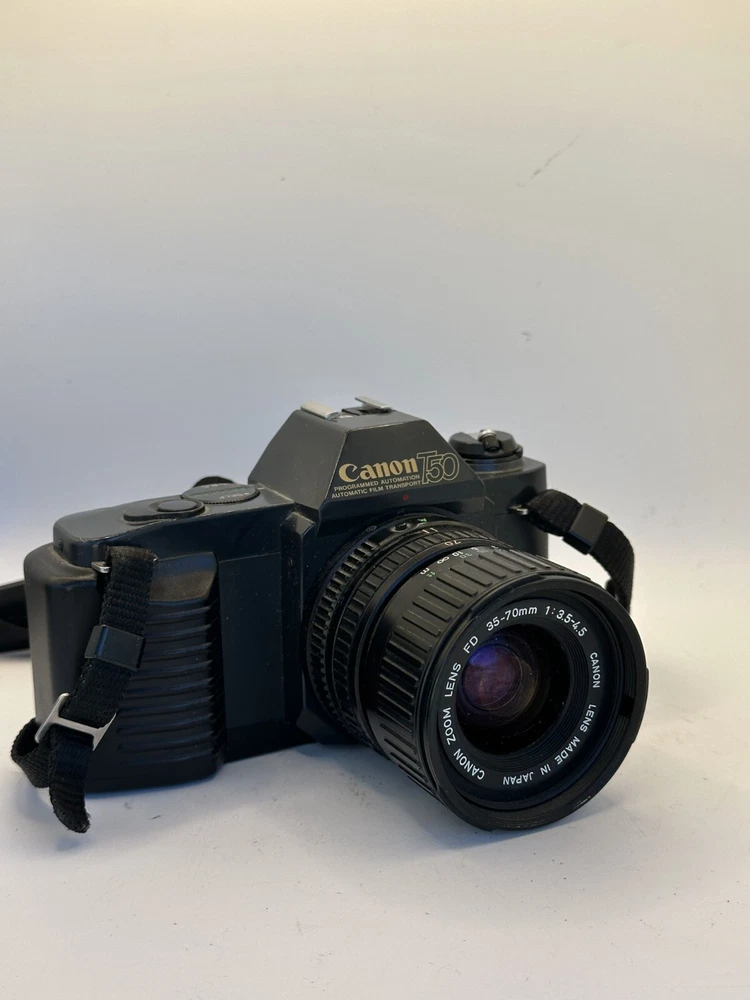 Capture memories with this classic Canon T50 35mm SLR Film Camera. Equipped with built-in light meter, auto exposure, and an electric drive, this camera offers a range of features to help you take the perfect shot. The black body design is sleek and stylish, blending in with your photography gear. This unit is a reliable choice for film photography enthusiasts, whether you're a professional or amateur. With a focus type of manual, you have complete control over your shots. Made in Japan, this camera is a testament to the country's reputation for quality electronics. Don't miss out on the opportunity to own this iconic piece of photographic history.