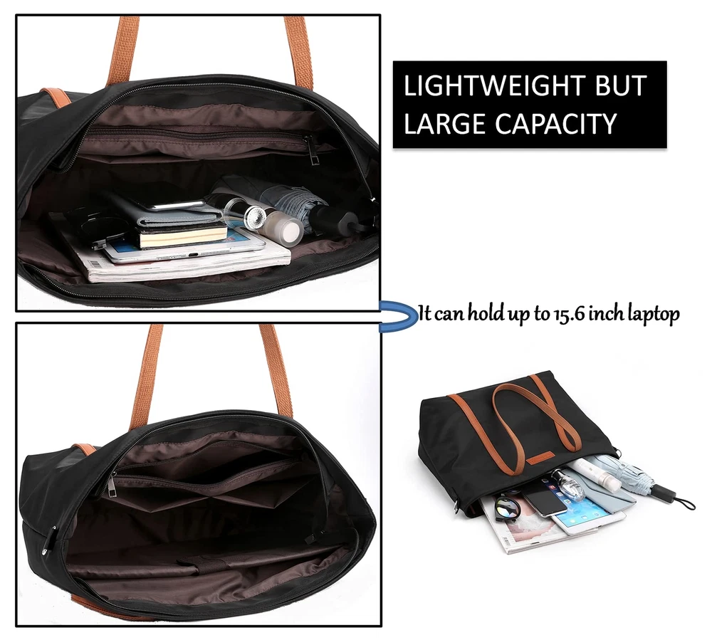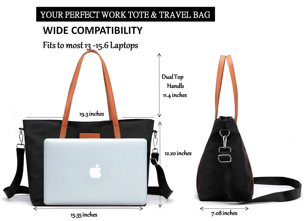 Multi-function Tote Bag-This work tote bag Is crafted from lightweight & water resistant Nylon, with a wide shoulder strap you can wear without creating discomfort on your shoulder. You can use it as handbags, teacher bag, school bag, leisure bag, travel bag, fitness bag and so on.It can every item is very orderly and convenient to access,just need a bag to hold your daily necessities,electronics,cosmetics,office supplies,and ease your hands.Fashion and Casual design:This tote is a perfect gift for full-time moms, teacher, nurse, college students. Excellent for shopping,traveling,working, cafes, school. Also great as a diaper bag. Easy Clean Waterproof 1680D Oxford Nylon: Strength but Lighter weight, top zipper closure,wear-resistant and anti-wrinkle. Multiple Pockets Easy Organization: Separate storage space can hold your things orderly. 1 padded compartment fits up to 15.6 inches(included 13/14 inch) laptop; 1 large main compartment for A4 magazines, iPad, books, umbrella, lunch box and more. 1 zippered pocket for wallet, business cards, or some other valuable items. 2 open pockets for cell phone, glasses, and mouse. Size: Laptop Tote Bag is 15.35 inch L x 7.08 inch W x 12.20 inch H. Spacious Fashion Laptop Bag designed specifically for women, can accommodate 15.6 inch laptops, including all sizes of tablet,soft and thick protective compartment Prevents accidental damage to the laptop. Versatile Purse: One bag to free your hands to hold your laptop other essentials. 3 ways to use - tote bag, handbag and crossbody bag, on the shoulder with the comfortable fully detachable wide cross-body strap which remains chic through any occasion. Stylish Tote Handbag: Handle drop is 11.4 inch , help you for a comfier carry. Lightweight and pliable. You can take it anywhere, which is more suitable for work,,cafes,shopping, party,travel and other occasions. Great Gift for a Teacher, Nurse, College.