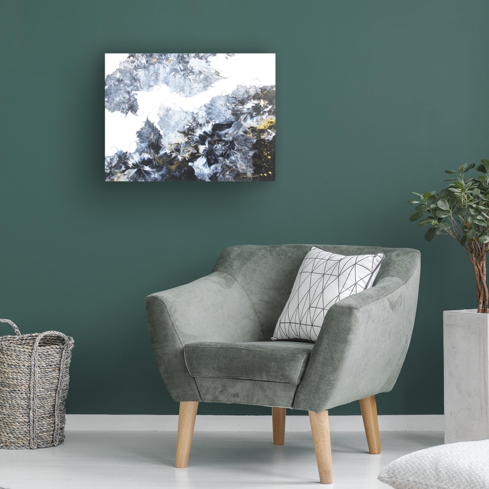 ART WALL CANVAS - This Jean Plout 'Mystical Black Pouring' canvas art by Art Licensing International is sure to complement any room décor with its Abstract style featuring an abstract exploration of color and shape.. GICLEE PRINTING - Each home décor piece is printed using Giclee, a printmaking process for creating high-quality fine art reproductions. The method results in rich details and color reproduction, making it nearly indistinguishable from the original piece. DURABLE MATERIALS - The wall art décor is printed on thick cotton poly blended canvas that is gallery wrapped around a sturdy natural wood frame, allowing for a frameless presentation and lasting quality. Each piece comes ready to hang for convenience. MADE IN THE USA - Not only does manufacture here in the US, but they also make all their canvas art products in the US for a truly 100% Made in the USA product. PRODUCT DETAILS - Materials: Natural Wood and OBA-Free Cotton/Poly Blend Canvas. Made in the USA.