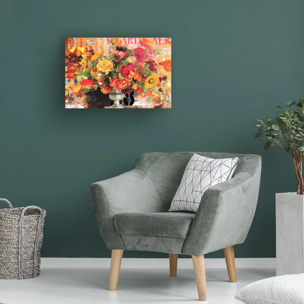 This ready to hang, gallery-wrapped Wall Décor Living Room Canvas by features a depiction of a bouquet of flowers in a vase with graffiti in the background. that'll look great in any bedroom, kitchen, bathroom, or apartment. Whether it's contemporary, rustic, modern, or traditional style wall décor, offers a variety of high-quality, carefully built wall art that will surely complement any style with art themes that range from fascinating abstracts to breathtaking landscapes. Each bathroom wall art canvas is printed on durable cotton poly blended canvas using Giclee, a process for creating high-quality fine art reproductions that are nearly indistinguishable from the original piece. From the bedroom to the living room, or even the office, makes professionally handcrafted, ready to hang wall décor that will be admired for years to come. IMPORTANT: is committed to providing the consumer with the absolute best price and value on all of our products. NOTE: This is an exclusive product of and ONLY Posters & Prints by are GUARANTEED to be genuine. Avoid buying counterfeit products and transacting with unauthorized sellers. is a registered trademark protected by U.S. Trademark law and will be vigorously defended. ART WALL CANVAS - This Porter Hastings 'Urban Bouquet 5' canvas art by Art Licensing International is sure to complement any room décor with its Floral style featuring a depiction of a bouquet of flowers in a vase with graffiti in the background.. GICLEE PRINTING - Each home décor piece is printed using Giclee, a printmaking process for creating high-quality fine art reproductions. The method results in rich details and color reproduction, making it nearly indistinguishable from the original piece. DURABLE MATERIALS - The wall art décor is printed on thick cotton poly blended canvas that is gallery wrapped around a sturdy natural wood frame, allowing for a frameless presentation and lasting quality. Each piece comes ready to hang for convenience. MADE IN THE USA - Not only does manufacture here in the US, but they also make all their canvas art products in the US for a truly 100% Made in the USA product. PRODUCT DETAILS - Materials: Natural Wood and OBA-Free Cotton/Poly Blend Canvas. Made in the USA.