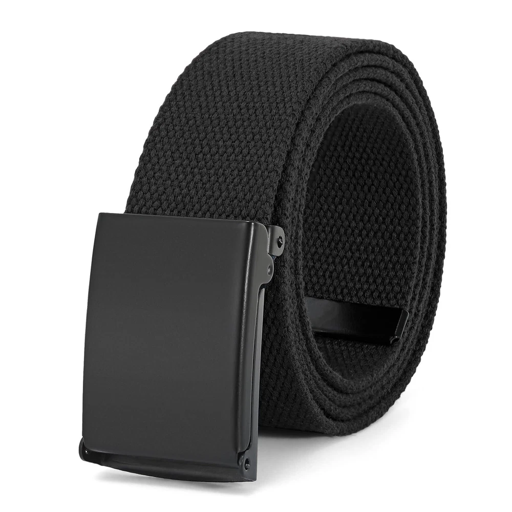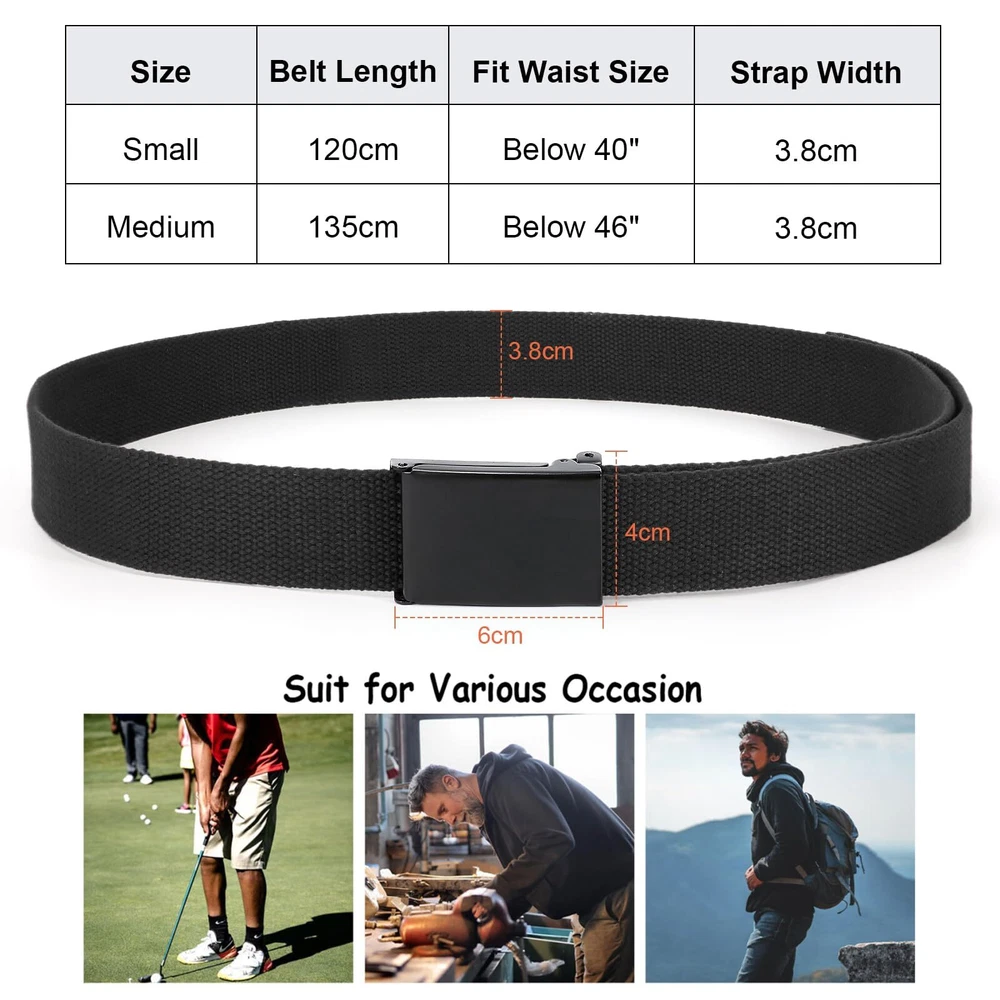 ❤Flip-Top Buckle - Features a flip top military style buckle that holds tight and stays secure, even better. The polished black finish is smooth and stylish. Press on lock design, these canvas belt for men can be easily clamped and adjusted to any tightness. ❤Fully Adjustable - no holes required, canvas web belt fit everyone, all shapes and sizes! 3 sizes to be chosen. The buckle is removable, allowing you to resize it. Resizing: Cut it down to the size needed and then melted the cut end, put the cut end back under the smaller latch and locked it. ❤Polyester+Cotton - The belt webbing is lighter/softer than the other military belts. Made of Polyester and Cotton material webbing belt, which is lightweight, soft, flexible, sturdy and durable, sweat absorption and dry fast. These military canvas belts will keep you comfortable while keeping your pants or jeans in place all day long. ❤Ideal Gift - Perfect belt for men and women used for daily wearing, work uniforms, outdoors sports, skiing, snowboarding, golf. Perfect gifts for Halloween, Thanksgiving Day, Christmas, Birthday, Anniversaries. ❤Outstanding After-Sales Service - We aims to provide quality products and intimate service to you, we will answer you within 24 hours even on holiday if you have any problems or questions. We always stand behind our products, just feel free to purchase.