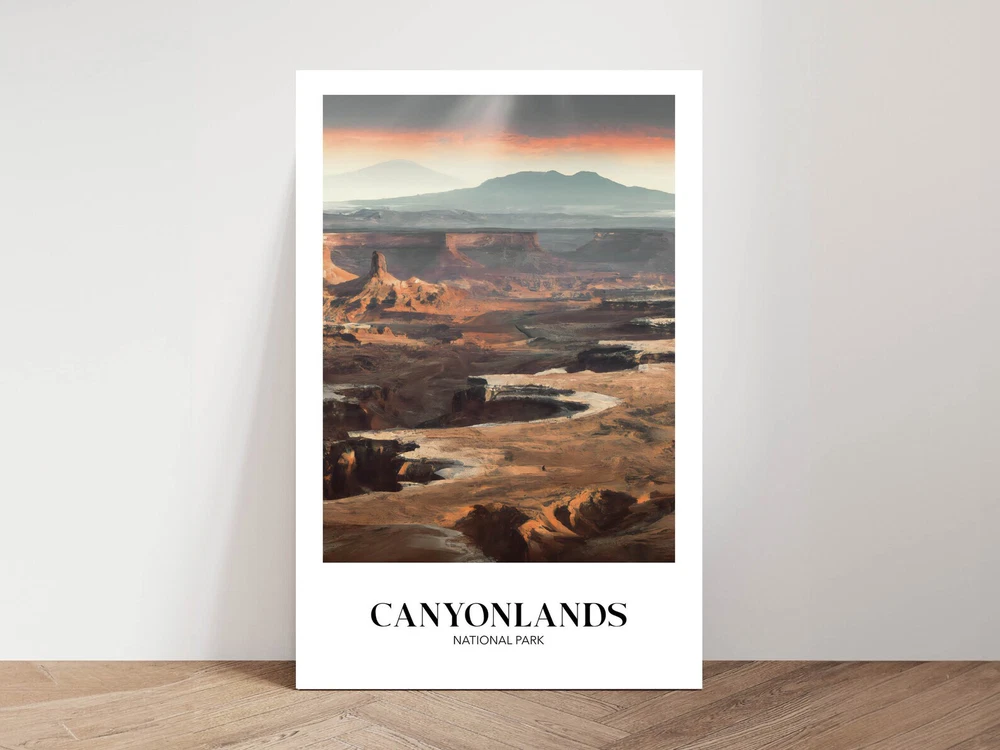 Canyonlands National Park Poster Country Travel Print Midcentury Modern Art Minimalist Decor Vintage Style Wall Art Gift For Friend Material: Premium luster photo paper Print type: Inkjet printing One side printed + The finish provides the highest possible resolution and color saturation + Lasts up to 200 years in color and 400 years in black-and-white + Printed on high-quality resin-coated photo base paper medium + Posters can be hung with double-sided tape, tacks, or framed + Hand washing with a gentle cry cloth is recommended for extended durability I will hand select the best choice of paper for your chosen design to ensure top quality results for a beautiful, bright and luxurious print. All prints are sealed in cellophane slips for protection during transportation, and are shipped in a protective cardboard envelope.