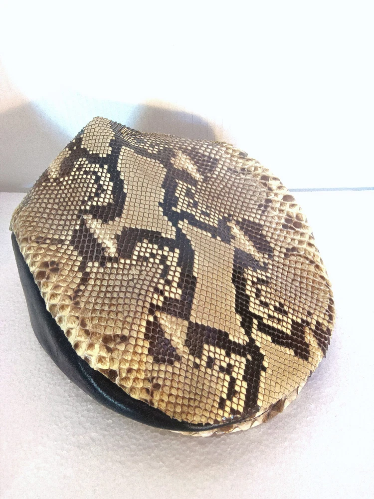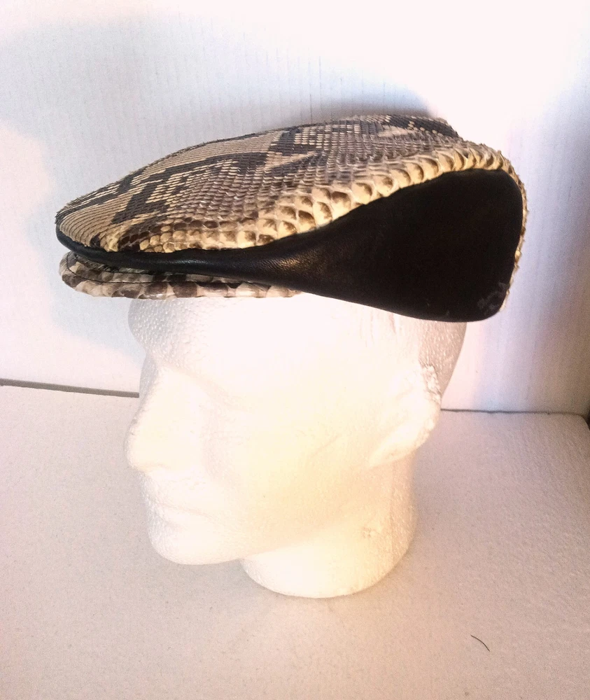 Add a stylish touch to your outfit with this men's cap from Pure Snakeskin Accessories. Crafted from high-quality leather and python skin, this driver's cap is perfect for travel, casual outings, or formal events. The cap is designed to fit comfortably. This cap is a must-have for men who want to make a statement with their accessories. It is made in the United States and is perfect for those who appreciate quality and style. Whether you're going out for a walk or attending a formal event, this cap will add a touch of sophistication to your outfit.