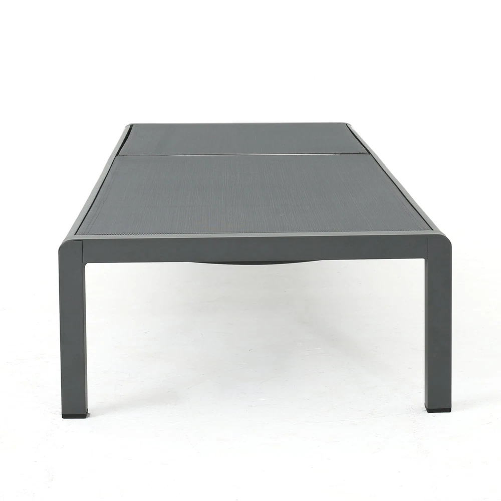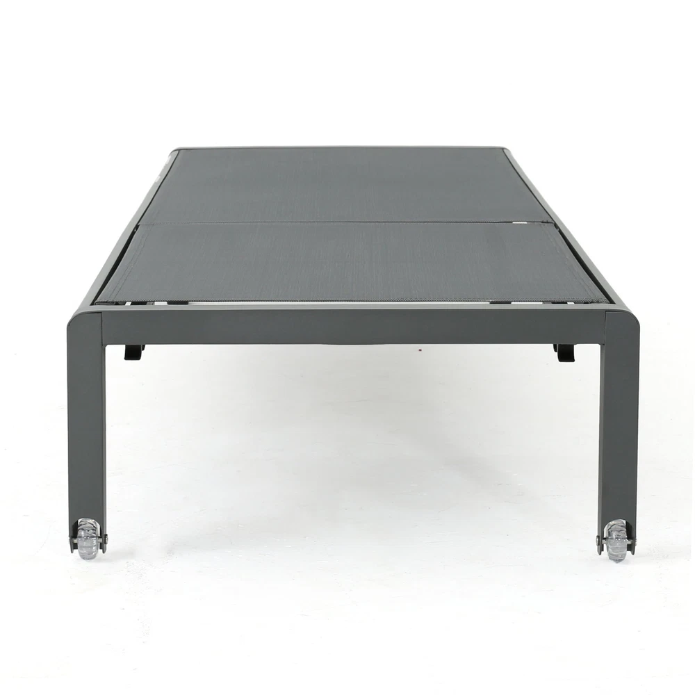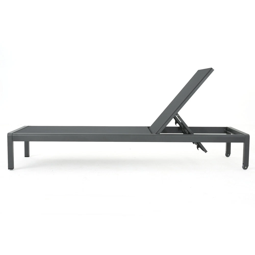 Specifications Place of Origin China Main Color Gray Main Material Mesh Dangerous Goods #dangerFlag# Dimensions & Weights Assembled Length (in.) 77.50 Assembled Width (in.) 25.25 Assembled Height (in.) 11.80 Weight (lbs) 20.72 Product Features Enjoy your action again with the Cape coral gray outdoor mesh chaise lounge, available in both a single and double pack Lounge out in the sun, getting your tan back on with this chaise lounge Manufactured in China Cushion Dimensions: 77.50 inches deep x 25.25 inches wide x 11.80 inches high Description Details Poolside relaxation can be made effortless this summer with our charming chaise lounge with cushion. This chaise lounge offers a sturdy aluminum frame, breathable mesh seating, and a water-resistant cushion to create the perfect backyard or patio addition of utmost convenience and comfort Description This chaise lounge set has a breathable mesh material and durable aluminum frame and provides ultimate comfort and stability to your backyard Aluminum Frame This chaise lounge set is built with aluminum, creating a lightweight and stable frame. This material is rust resistant which will further extend the life of your product Ergonomic Large Seat Made of high-quality MESH SEATING,this features seating constructed of outdoor mesh material, making our chaise lounge both flexible and supportive Easy To Move The back legs of these chaise lounges have wheels attached for easy mobility. This allows you to conveniently transport this set wherever you need