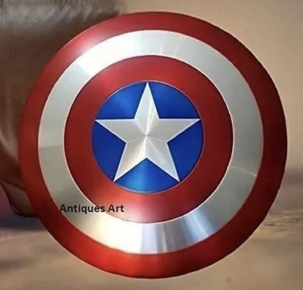 Introducing the Captain America Solid Metal Shield, perfect replica for collectors and enthusiasts alike. This Round Shield is made of Heavy Steel and comes with an Ambidextrous Dexterity for ease of use. Handmade with exceptional attention to detail, this Medieval/Viking/Greek/Roman/Templar themed shield is sure to impress. The shield is a Reproduction and is offered in the Original/Reproduction category. It is made of Steel/Leather and can be customized as per buyer requirements. This shield is suitable for LARP/Reenactment/Decorative purposes. Made in the United States, this shield is a must-have for any collector or enthusiast.