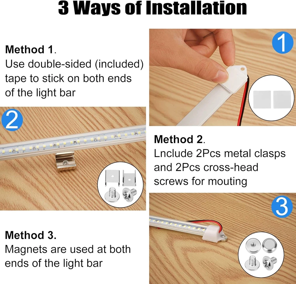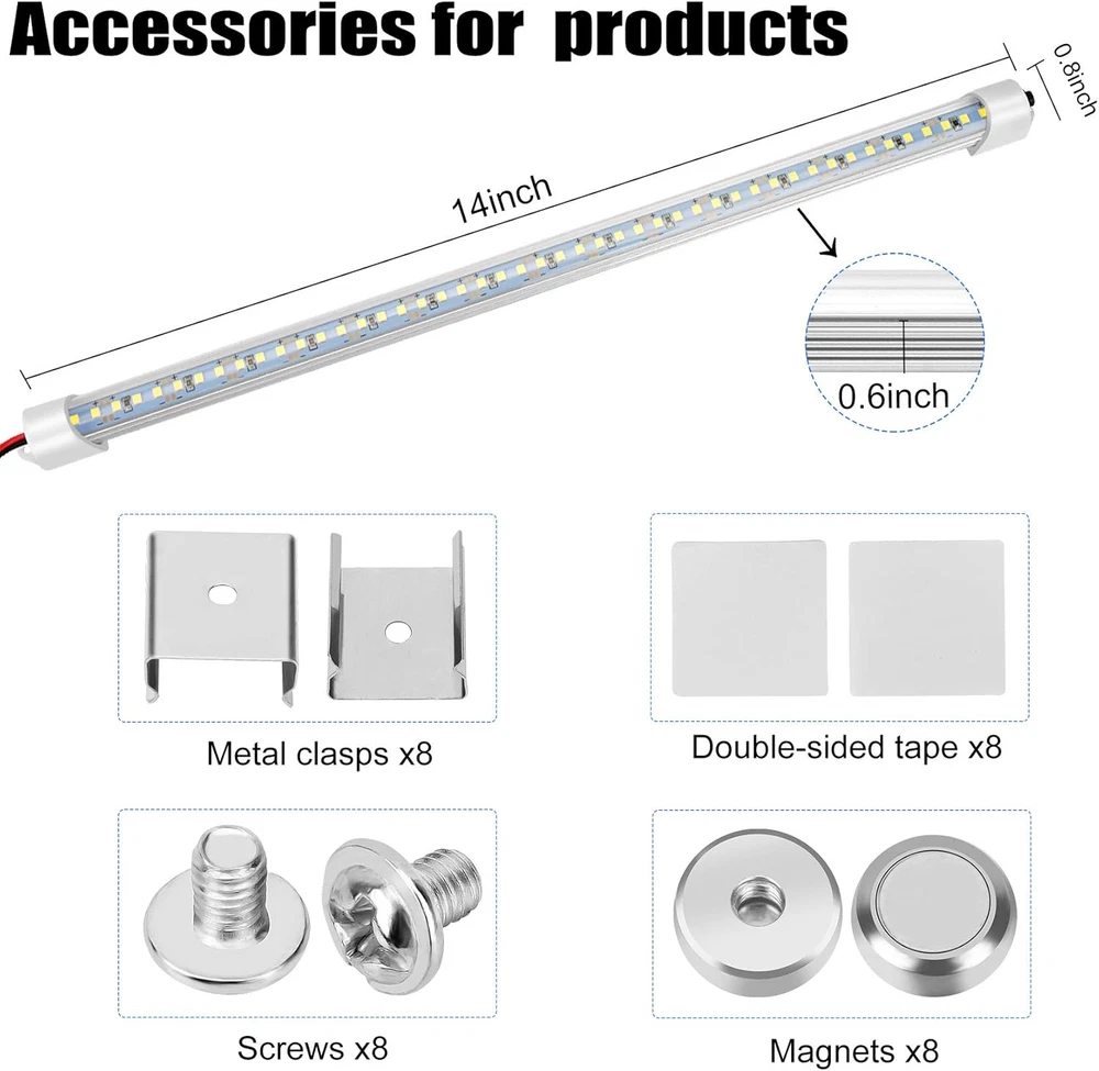 Store New Arrivals Add to Favorite View Feedback Contact Car 12V Interior LED Light Bar 48 Leds Strip Lights with Switch and Magnets 6500K White Light for Car Van RV Cabinet Showcase Indoor Room Home 4 PCS Extendable Description Light Source Type LED Fit Type Universal Fit Item dimensions L x W x H 14 x 0.8 x 0.6 inches Voltage 12 Volts (DC) Light Source Type LED Fit Type Universal Fit Item Dimensions 14 x 0.8 x 0.6 inches Color 48 LEDs Water Resistance Level Not Water Resistant Material Metal Material Type Metal Compatible with Vehicle Type Van, Car Vehicle Service Type Van, Car Voltage 12 Volts (DC) Includes Remote? No Connectivity Technology IR Auto Part Position Inner Number of Pieces 4 Form Factor Bar Remote Control Included? No Size 4 P 【Stop Working in The Dark】Rifachua 12 volt led light bar for automobile, home, office, cabinet, commercial space, showcase and interior help you say goodbye to the dark. 【1 Minute to Complete The Installation】3 easy installation plans offered. Use double-sided tape to stick, use magnet attach the light on any iron, like car hood, or use mounting clips that you can remove or reinstall the light any time. 【Extendable and One Click ON/OFF】On/Off switch on the end of the light bar, you can control the light bar respectively or connect the led strip lights in parallel and control the light by the main switch. 【Turn on The Light and It’s Clear at A Glance】Bright but not glaring. 48 PCS LEDs, 600 LM, 9.6 W, 160° light range, 6500K cool white light. No buzzing ballasts, no flickering, no mercury or hazardous materials, no UV or IR Radiation. 【2 Year Warrantee】30 days money warrantee and 2 years warrantee for and maintenance. There is exclusive customer service for you and you can feel free to at anytime. Product Description Rifachua pays attention to quality and demands perfection. What we lack is once of your chance. Let Rifachua solve your problem. Rifachua 12 volt LED interior light bar with switch can be a car interior light or work light for car, van, RV, lorries, campers, motorhomes and marine boats. And it also can be an under desk light for cabinet, showcase, indoor, room, home and more. SPECIFICATIONS Voltage DC 12 V (Voltage over 12V will burn out the light, please make sure the voltage is within 12V before use) Power 9.6W per light bar Lumen 600 LM LED 48 LEDs per light bar Beam Angle 160° Temperature 6500k Cool White Size 14 x 0.8 x 0.6 inch per light bar (Multiple lights can be connected in series to extend the length) ON/OFF method Black switch on the end of light, or you can DIY other ON/OFF switch Red Cable Positive (+) Black Cable Negative (-) Hey, Rifachua want to say: Thank you very much for choosing us, we believe we will not let you down. If you have any questions about our products, you can click "Rifachua" to find us. Package Include: 4 x LED light bar 8 x Metal clasp 8 x Screw 8 x Magnet 8 x Double-sided tape ASSEMBLY AND USE Method 1 Use the double-sided tape to stick on both ends of the light bar, and you can paste it wherever you want. Method 2 Pass the screw through the metal clasp, then fix them in the position you want, and finally install the light bar on the metal clasps. Method 3 Pass the screws through the holes at both ends of the light bar, and then rotate the magnet and the screw together, now you can place it on any magnetic surface. HOW TO CONNECT Step 1 Cut the red / black protective layer on the outside of the cable. Step 2 Connect the positive and negative cables of multiple light bars. Extension Set: Works with Extension Cable and T Tap Connectors ASIN#B09D17S6LR And then you are done ! After connecting, you can still operate on/off the light bar separately. At the same time, you can use the switch control of the main wire. ABOUT US We offer the best prices around on high quality products. Our E-store includes media such as books, movies, music and games while offering electronics, toys, sporting apparel, clothing, tools, general home, garden items and more. SHIPPING We are always working hard to ensure your package arrives as soon as possible. Please understand that some factors like weather, high postal traffic, and the performance of shipping companies are outside of our control. We offer free shipping to the lower 48 states and ship within 2 business days of payment, usually sooner. We do not accept P.O. Boxes. Please provide a physical address. For shipping outside of the continental USA, we only use eBay's Global Shipping Program.The item is shipped to KY and then sent to the rest of the world. International customers are responsible for all duties and taxes. Continue to check out in order to calculate costs for shipping the item to your country. Messages regarding eBay's Global Shipping Program MUST be directed at eBay EXCLUSIVELY. RETURNS We offer a 30-Day Return Policy on items which you are not completely satisfied with. You have the option for a full-refund or an exchange of the item. No returns are available on items shipped outside of the USA. PAYMENT We accept PayPal. CONTACT US This page content is yet to come Please ad us to your favorite seller and visit again later Thank You CUSTOMER SATISFACTION We try our very best to make sure every customer is completely satisfied. If there's a problem, message us! We're happy to help. WE ACCEPT Copyright © 2021 AutoDS. | All Rights Reserved