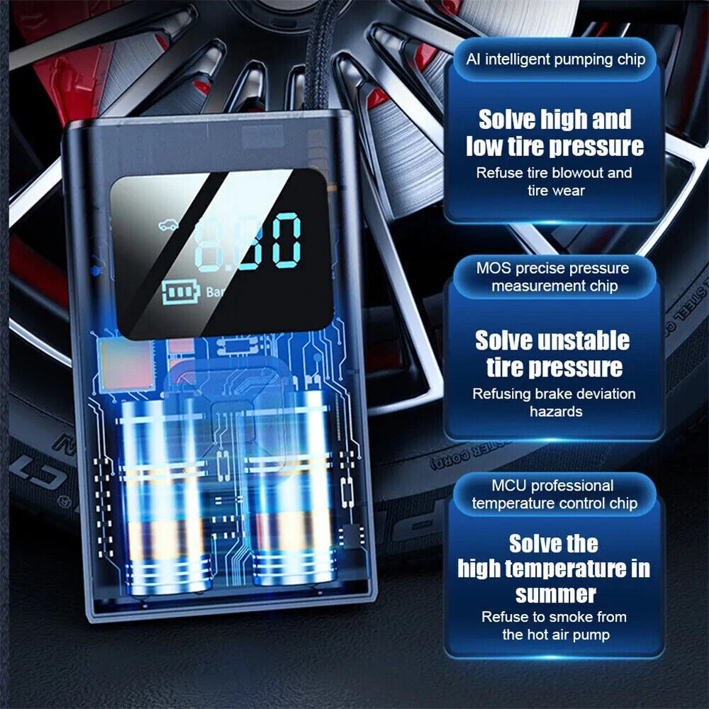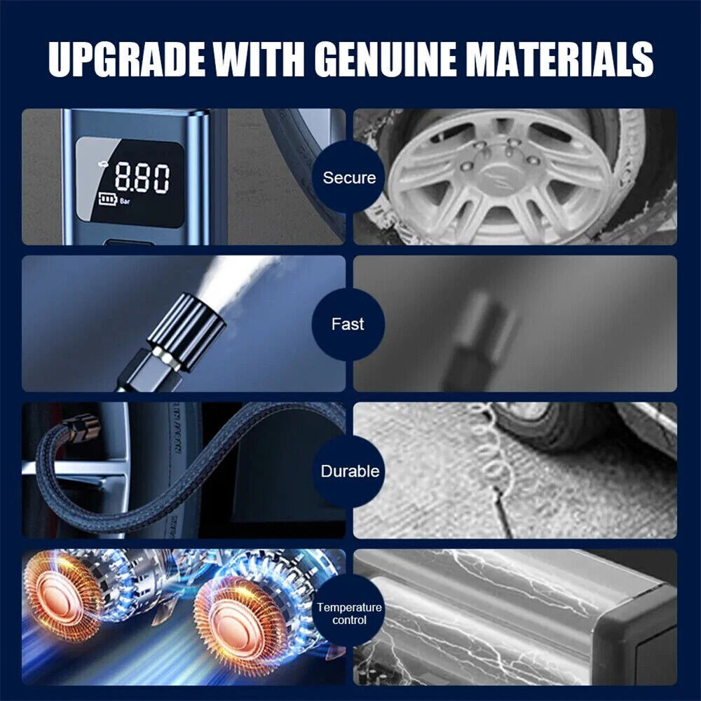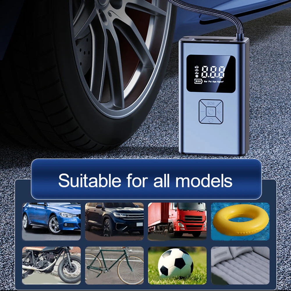 Product Description Details: [Product Name]: 7.4V Wireless Inflation Pump [ST-5522C ]:Three use wireless inflation pump+USB+DC wireless [Product Material ]: ABS [External dimensions]: Approximately 80 * 45 * 135mm [Battery capacity]: 2 series of lithium batteries - LCD screen display [Working voltage]: 7.4v [Rated Input]: 5V1A [Piston diameter]: 17mm [Rated power]: 60W [Pressure Range]: Pressure: 3-150PSI [Precision]: ± 1.5psi [Air volume]: 16L/min [Continuous working time] 8-10 minutes, [Time]: Lithium battery fully charged working time: about 20 minutes. When fully charged, it can drive 2 tires [195/65R15 0-30 psi Inflation time]: 8-9 minutes [Type-C charging cable]: approximately 80mm, [Charging time]: 3-5 hours [Charging Interface ]: Type-C [Usage time]: 30 minutes [Length of air hose]: 200mm ± 10mm [Net weight of product]: 465g [Product gross weight]: 650g (including packaging accessories, etc.) [Color box size ]: 87 * 62 * 295mm [Function]: Inflation pump, lighting, warning lights, mobile power supply [Application scope]: Cars, bicycles, electric vehicles, motorcycles, ball games, etc. [ST-5522C Wireless ]: Host * 1, inflation hose * 1, inflation nozzle 4-piece set, Type-C charging cable, 3M American 12V cable, instruction manual * 1, color box * 1 Two power supply methods: The air pump features a dual power supply design, allowing you to switch between wireless and power modes. The pump is equipped with a high-capacity 4000mAh lithium-ion battery, which can inflate more car tires with one charge. In case the battery runs out, it also comes with a 10 foot (3 meter) long DC 12V power cord that you can connect to the car to charge it. This ensures that you never have to worry about running out of electricity during the journey. 150PSI intelligent air pump: This practical electric air pump mini inflator has a maximum inflation pressure of 150PSI. Insert it into the 12V power socket of the car and connect the valve stem to the tire valve. Press on the car air compressor once, and it will do all the work for you. 4 Inflation mode and power prompt: The LCD digital display panel will display four air pressure units: "PSI", "BAR", "KPA", and "Kg/m" ²”。 There are icons such as motorcycles, cars, and balls to choose from on the digital display screen. The corresponding safety air pressure is set by default for this product type. Multipurpose nozzle: Comes with four different inflation nozzles, which can be replaced for charging products such as bicycles, motorcycles, cars, air cushions, basketball, etc. It is simple and very convenient. The wired air pump is connected to the power supply through the accompanying car power cord. LED night lighting: Power tire compressor About Us Payment Shipping Terms Contact Us 1.We are honest eBay sellers. 2.We offer best price products to worldwide. Office time: Monday to Saturday, CST: 9:30-18:30 1. We ONLY accept PayPal. 2.Payment must be received within 7 days after winning the item. To claim back the Final Value Fee from eBay, an UPI (Unpaid Item Case) will be filed automatically if buyers fail to make the payment in 7 days after item ends. 3.If you have any problem with the payment after bidding, please let us know within 24h via eBay message. Thank you! 1. USA Stock, we ship from USA . 2. All packages will be shipped within 1-2 business day . 3. We will provide a tracking number. 4. Please note that there are certain circumstances that we unfortunately can not have control i.e. weather condition, delay by post office, Sundays, National Holidays, etc. 5. We don't arrange shipment on weekends. We appreciate your great understanding. 1. Free 30 day returns. We accept return and exchange. 2. Please read the detail of listing before you purchase it. If you have any problem with the listing, feel free to contact us firstly. 3. Returned item must be in brand-new, un-used, undamaged and re-sellable condition, including original packaging and complete accessories that came with the item (with all tags and labels attached). If the item is returned damaged, or has been opened or used, we may issue a partial refund in accordance to its condition and the issue. Returned item will be refused if it contains any scratches, dirt, or sign of usage. 4.All the items are double checked before shipment, If item is damaged, defective or missing components upon arrival, please provide us photos of the damaged package or defective item, we will respond you within 24 hours and resolve your issue asap. 1.Please contact us via eBay message. 2.Since you and us may located in the different time zones, please allow us to respond you within 24 hours on office time. we will respond you within 48 hours on holidays. 3.We are doing our best to offer you a better shopping impression on eBay. If you have any issue about the transaction, feel free to contact us before opening eBay case, PayPal case and leaving Neutral feedback or Negative feedback, we will resolve your issue properly. About Us 1.We are honest eBay sellers. 2.We offer best price products to worldwide. Office time: Monday to Saturday, CST: 9:30-18:30 Payment 1. We ONLY accept PayPal. 2.Payment must be received within 7 days after winning the item. To claim back the Final Value Fee from eBay, an UPI (Unpaid Item Case) will be filed automatically if buyers fail to make the payment in 7 days after item ends. 3.If you have any problem with the payment after bidding, please let us know within 24h via eBay message. Thank you! Shipping 1. USA Stock, we ship from USA . 2. All packages will be shipped within 1-2 business day . 3. We will provide a tracking number. 4. Please note that there are certain circumstances that we unfortunately can not have control i.e. weather condition, delay by post office, Sundays, National Holidays, etc. 5. We don't arrange shipment on weekends. We appreciate your great understanding. Terms 1. Free 30 day returns. We accept return and exchange. 2. Please read the detail of listing before you pur