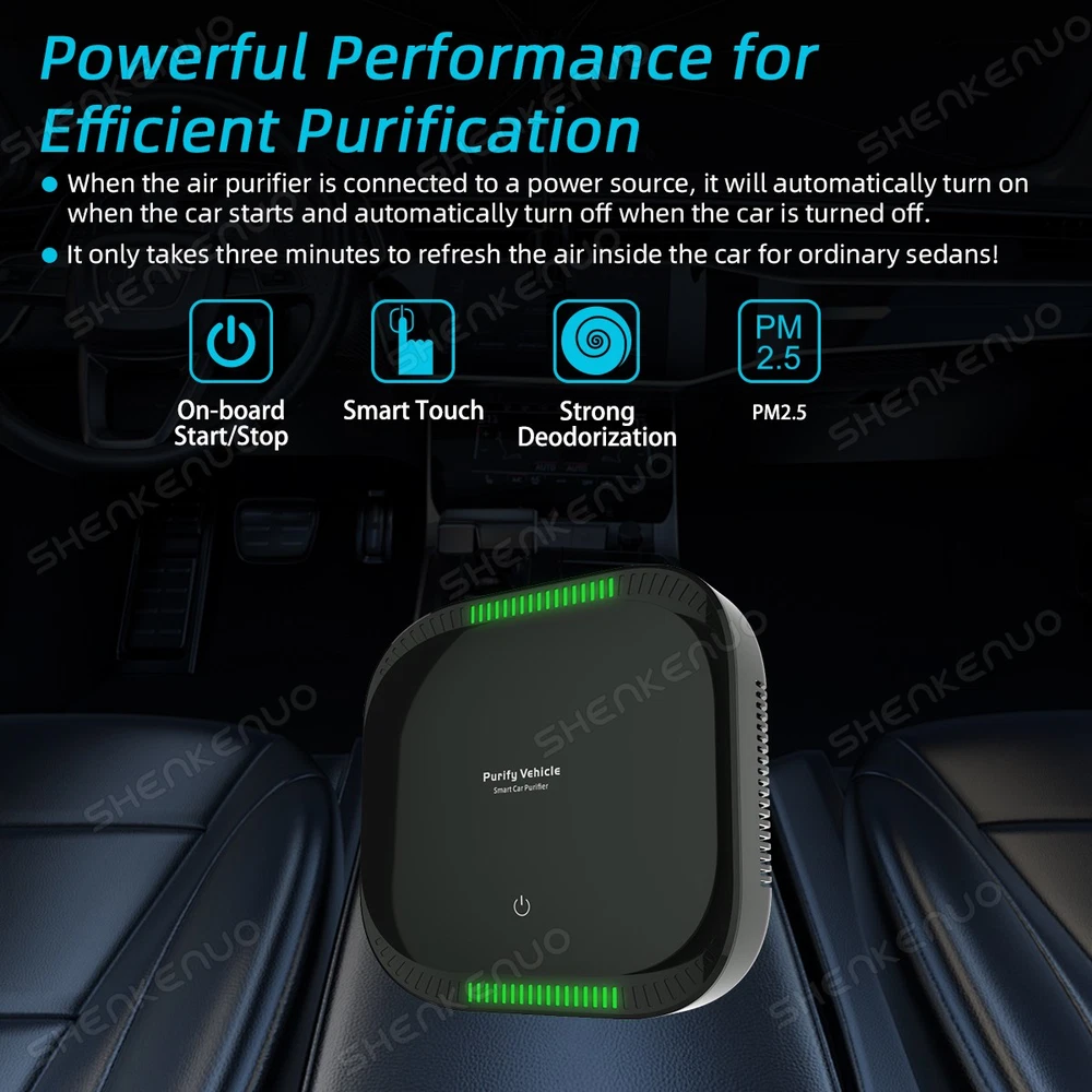 This high-performance car air purifier is engineered to create a healthier and more comfortable cabin environment. Utilizing an advanced HEPA filtration system, effectively captures airborne particles, allergens, and dust. Its core strength lies in providing large space coverage and fast air circulation, resulting in more powerful purification capability. Specifications: • Product Name: Car Air Purifier • Material: PC/ABS • Power Source: USB / Car Cigarette Lighter • Product Weight: 500 g • Color: Black • Operating Voltage: 5V • Rated Power: 3W • Suitable Area: 10-20 m² • Noise Level: <30 dB • Purification Technology: HEPA • Cable Length: 1.2 m • Package Dimensions: 205 * 205 * 70 mm Key Features: ✅ Smart Display & Touch Control Easily monitor air quality and control settings via an intuitive smart display with touch-sensitive buttons. ✅ Effective PM2.5 Purification Actively monitors and captures harmful PM2.5 particles, ensuring cleaner air inside your vehicle. ✅ Powerful 10cm Fan Enables rapid air circulation and a fast purification cycle for large spaces. ✅ Convenient Auto Start/Stop Powers on and off automatically with your vehicle's ignition for a truly hassle-free experience. ✅ Sleek, Ultra-Thin Design Its compact form factor fits seamlessly into any car interior without being obtrusive. ✅ Multi-Action Performance Features powerful odor elimination and rapid defrosting capabilities for enhanced comfort. On Nov 19, 2025 at 16:54:25 PST, seller added the following information: