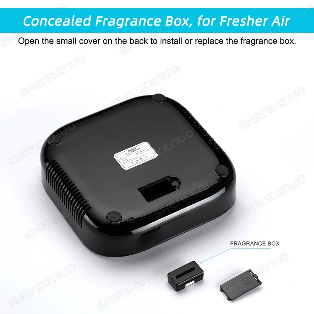 🚗 Enjoy fresh air and a pleasant ride. Tired of stuffy air, lingering smoke odors, or pungent “new car smell”? The Shenkenuo Car Air Purifier operates silently, automatically creating a fresher, healthier cabin environment for you. ✨ Key Advantages at a Glance: Instant Air Quality Monitoring Color-changing indicator displays real-time air quality (Good → Fair → Poor) Real-time PM2.5 monitoring for peace of mind Powerful Odor Elimination Effectively removes smoke, pet odors, food smells, and new car fumes Thoughtful Design: Built-in fragrance cartridge for on-demand scent Fully Automatic & Maintenance-Free Turns on and off with your vehicle. Plug it in and forget about it. Smart fan automatically adjusts speed based on air cleanliness. Powerful and Compact Purifies standard sedan air in just 3 minutes. Ultra-slim, streamlined design fits perfectly in any cup holder. Specifications & Compatibility: Suitable for: Sedans and SUVs (up to 22 square meters) Power Interface: Standard 12V car socket Package Contents: Air purifier, fragrance cartridge, user guide Upgrade your car's air quality now. Click “Add to Cart”! Specifications: Model: Smart Car Air Purifier Color: Black Power Mode: USB/Car cigarette lighter Rated Voltage: 2.5w 5v 50HZ Purification Space: up to 22㎡ Noise Value: <30dB Blast Capacity: 5.5CFM NW/GW: 0.75kg/0.8kg Product Size: 165*165*47mm Package Size: 270*210*55mm