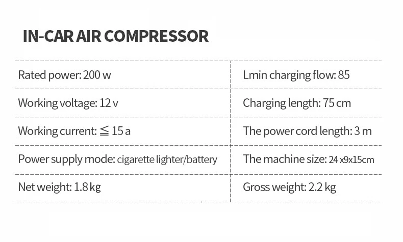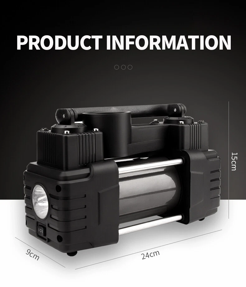 Store Home New Arrival Ending Soon Add to Favourites View Feedback Contact us Store Categories Suspension Kit Engine Mount Kit Air Intake Kit Cooling System Kit Flex Disc Kit General Goods Other Why Buy From us Car Air Tire Pump Inflator Compressor Digital Electric Auto Portable 100PSI 12V Items Description Portable Electric Digital display Air Compressor Pump,Heavy Duty Double Cylinder Tire Inflator with Gauge and Universal for Car Truck Bicycle Basketballs Other Inflatables, ABS 12V 300W 100PSI Description: 1. EMERGENCY TIRE PUMP: This quality portable car compressor makes inflating your tires fast and easy. Bimetal piston shaft, stainless steel shrapnel gas valve, self penetration solid lubricant. Only takes 2-4 mins to reach the normal tire pressure, giving full play to the characteristics of high-speed, large-capacity, powerful performance. 2. ALL PURPOSE NOZZLES & ATTACHMENTS: Inflate anything with a tire nozzle, extension nozzle and pin needle. From air mattresses, balls, beach toys, to all kinds of tires: bike, stroller, car wheels, SUVs, trucks, vans, RVs, crossovers, MPVs, campers, trailers, minivans, to cars, motorcycles, golf carts, bicycles and so on. 3. PACKAGE INCLUDING: A Heavy Duty Double Cylinder Tire Inflator Pump with Pressure Gauge, Power Cord With Battery Clamps, 3m Air Hose, Inflatable Adapters and LED work light for pumping at night or in dark areas, and a handy carrying bag. Feature: Item:Portable Tire Inflator Air Pump Material: Metal+ Plastic Color: Black & Silver Size(L*W*H): 24.5x9x14.5cm/ 9.65x3.54x5.71" Voltage: DC 12V-13.8V Max.Amperage: 23Amp Fiow rate@OPSI(13.8 Volts): 1.94CFM Max.Duty Cycle(@23 C & 150PSI): 20% Air Pressure:100 Psi Air flow: 85L/min Current: 20A Working Temp:-55℃ to 60 ℃ Continuity Working Period:30mins /40PSI /24℃ Certification:CE Certification Tire Inflator with Gauge and LED Flashlight Packaged included: 1x Tire Inflator Pump 1x 3m Air Hose 1x Coiled Hose 1x Battery Clamps pair 3x Nozzle Adaptors 1x Black Carry Bag 1x Use Manuel Notes: 1.The normal tire can reach 2.5KG normal tire pressure in about 2-4 minutes when it is inflated. Big tires will take longer. At the beginning of inflation, the indicator rises to 50-100PSI rapidly, which means that the air has not filled the tire, must stop working, re-operation, otherwise, the instrument and motor will be damaged. 2. In order to extend the life of the Tire Inflator, please do not continue to work for more than 20 minutes, avoid damage to the fuse in the cigarette lighter due to excessive temperature. Our recommendation is to cool for 5-10 minutes after 20 minutes of work and continue working. Specifications Delivery Details Payment Rerurn Policy Specifications Aftermarket product with premium quality Quality tested to ensure easy installation, optimal performance, and enhanced durability Built to meet or exceed your vehicles requirements for fitment, structural configuration, strength, and torque 100% new components and manufactured from high quality, durable material for extended life Delivery Details Item Location:KY & CA We've got several warehouses both in EAST and WEST USA. We arrange your orders firstly according to your shipping address, then to our inventories in the closer warehouse. Monday-Friday(excluding weekend and holidays)tracking number will be provided once items are shipped. Normally the package will be delivered within 3-5 business days. If don't receive your item within 10 days, pls contact us immediately, we will do our best to press the shipment company to send it fast. Payment Please use the eBay checkout system when paying for your order. Immediate payment is required for all orders. Rerurn Policy Customer must contact us within 30 days of receiving shipment for approval of any return or exchange. Returns or exchanges will be subject to a 15% restocking fee of the original item purchased, plus cost of replacement shipping. Exchanges due to shipping errors by us will not be subject to a restocking fee or shipping charges. Please BE AWARE that the vehicle compatible chart on eBay is not 100% accurate, but the OE# provided in our listing is correct, If you already have OE number of the parts you are looking for, then you can just searching by OE #. If in doubt, please send us your VIN, that's the BEST way to check if this is the RIGHT FITMENT. Copyright © 2022, kpl-automobile All Rights Reserved