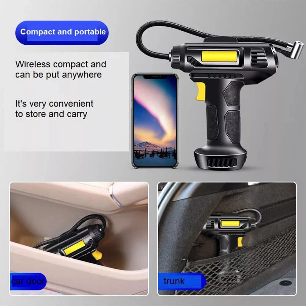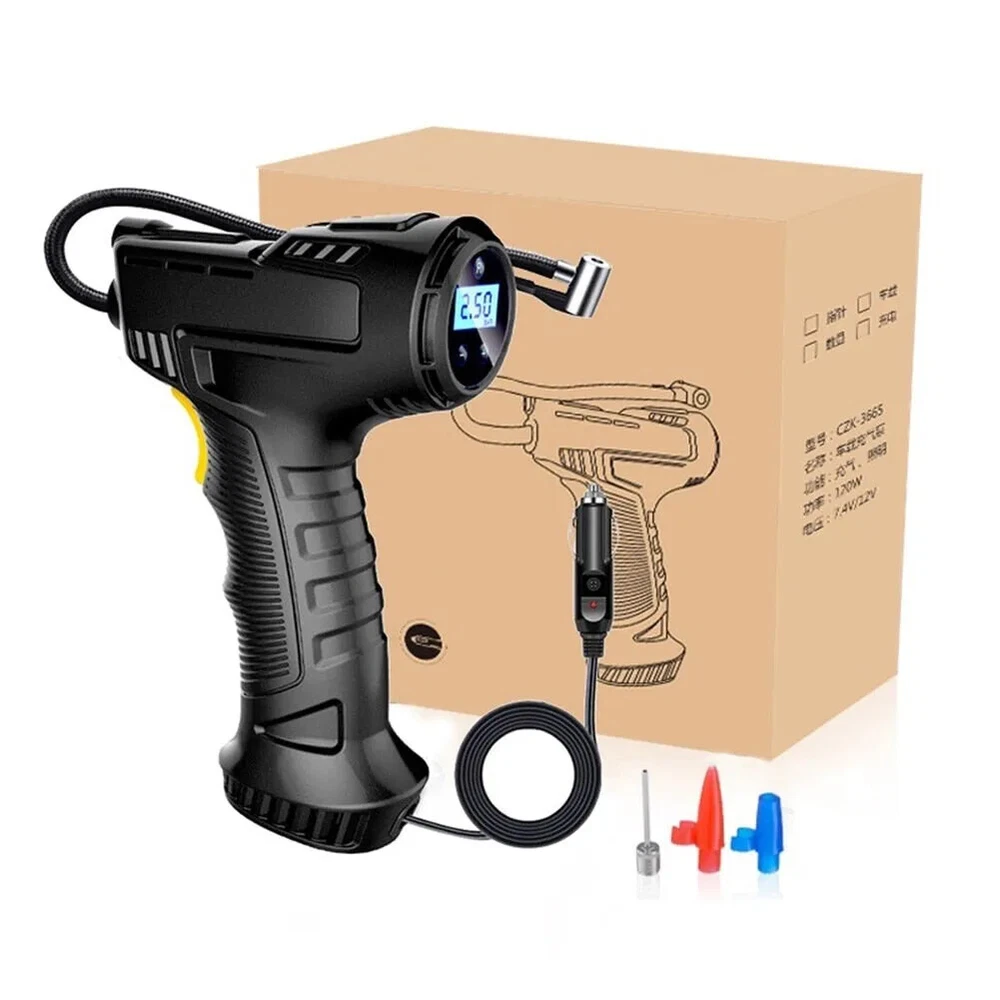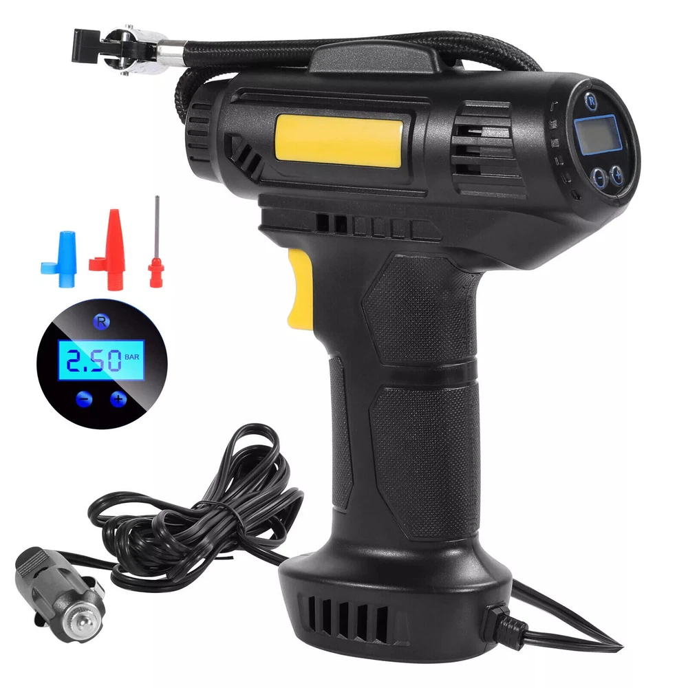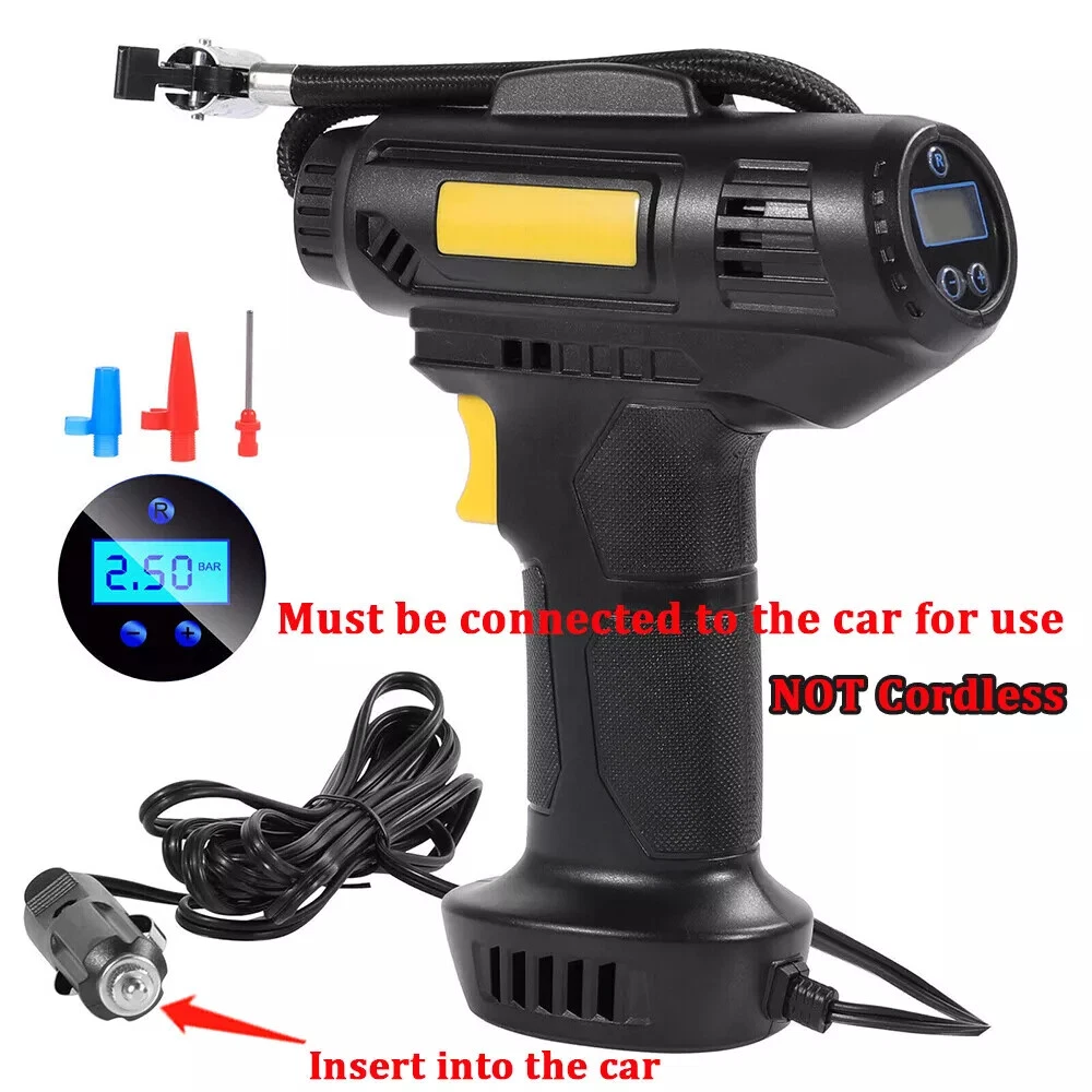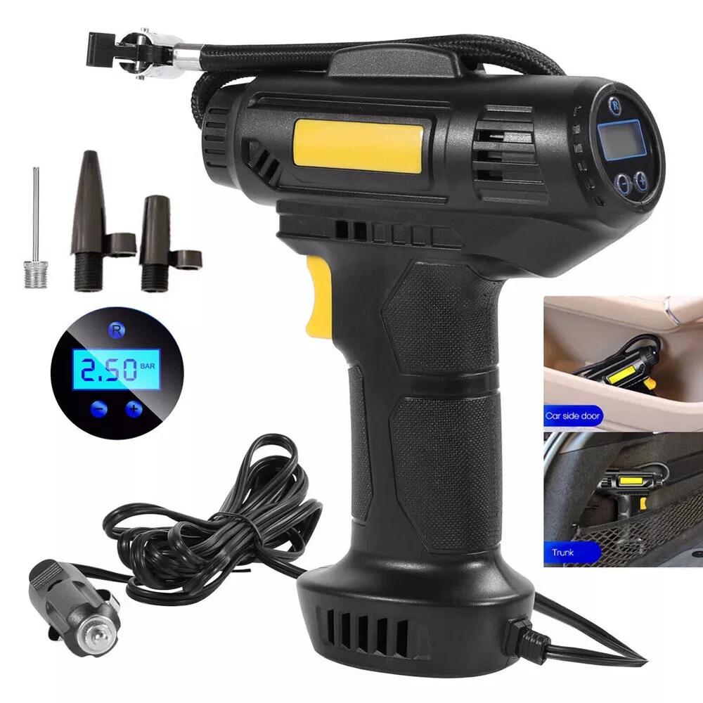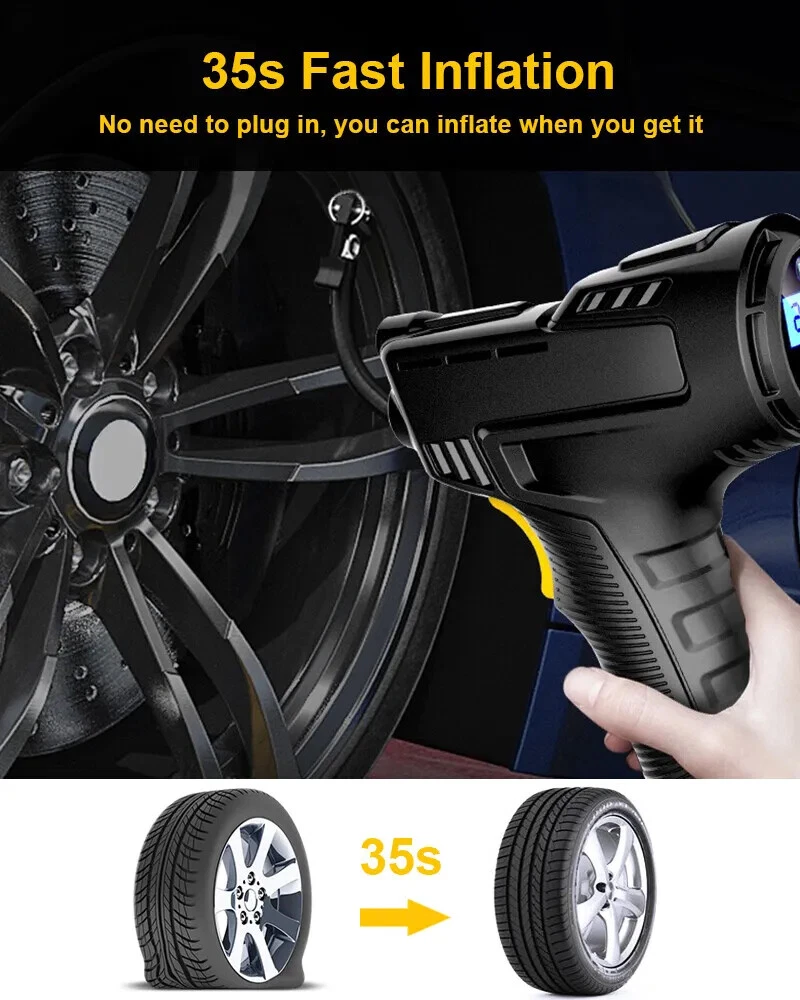 I t e m s pecifics Condition New: A brand-new fEATURE Auto-off, Fast Inflator, portable, Handheld Size 8.5" x 7" (HxW) UPC 731716348086 Working temperature -15-50℃ Power Cord Length 9.2ft Maximum Power 120W Tank Material ABS Manufacturer Part Number Does not apply Cordless NO Set Includes Tire Inflator, Inflatable Nozzle Inflator Tube Length 13 inch EAN Does not apply Maximum Working Pressure 150 Psi Color Black MPN WMGPCT3284 Portability Portable Item Length 7.70 in Brand iMountek Flow Rate Less than 100 L/min Type Piston Compressor Item Height 2 in Voltage 12 V Model WMGPCT3284 Item Width 5 in Item Weight 0.9 lbs About this product Product Identifiers Brand iMountek MPN WMGPCT3284 UPC 0731716348086 Model WMGPCT3284 eBay Product ID (ePID) 19054857630 Product Key Features Flow Rate Less than 100 L/min Maximum Working Pressure 150 Psi Color Black Portability Portable Voltage 12 V Type Piston Compressor Dimensions Item Length 7.70 in Item Height 2 in Item Width 5 in Item Weight 0.9 lbs Item description from the seller Note: This product is wired and must be plugged in for use. Wired use! PLEASE NOT Cordless !! Features: Accurate & Fast Inflation Comes with permanent magnet motor, providing super power and inflating your car ties faster. The air flow rate can reach 35L/min to fully inflate a tire in several minutes. Digital Display & LED Light You can gauge your tire pressure from the display screen and also preset tire pressure to what your tires need. The tire inflator is also equipped with a bright LED light to help you inflate at night. Auto-off Function The type of digital display can automatically shut off when the pre-set pressure has been achieved, no need to worry about the safety of your tire during inflation. Easy to Operate Simply plug DC 12V car cigarette connector into the 12V power outlet in your car and attach the hose to the tire, set the tire pressure value and then press the switch, it will start to inflate. Wide Application Comes with power cord and 3 air nozzles, in addition to tires, you can also use it for daily necessities such as balls, swimming rings, etc. Specification: Cordless :NO Material: ABS Battery :YES, upgrade 2pcs Maximum Power: 120W Maximum Working Pressure: 150 PSI Flow Rate: 40L/min Power Supply: 12V Cigarette Lighter Working Temperature: -15-50℃ Power Cord Length: 9.2 ft Inflator Tube Length: 13 in Product Size:210*180*50mm Package Included: 1 x Tire Inflator 3 x Nozzles 1 x Manual 1 x Charging cable Note: The normal pressure of the inflator is 30-40 PSI to use on cars. It can reach up to Max 150 PSI when there is no pressure such as balloons, basketball. The Suggested preset pressure is about 33.5 PSI for summer, 36.5 PSI for winter. To make it work more effectively, please stop for a while after using 10 minutes.
