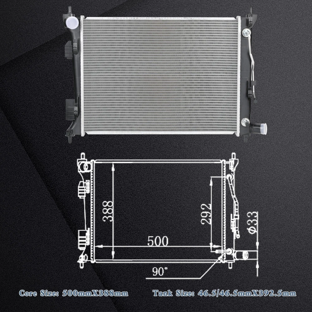 Fitment 2016-2016 Kia Rio 1.6L GAS 2012-2017 Kia Rio 1.6L GAS 2012-2014 Dodge Attitude 1.4L GAS 2012-2014 Dodge Attitude 1.6L GAS 2012-2017 Hyundai Accent 1.6L GAS Specification Inlet Diameter(inch): 1.38 Outlet Diameter(inch): 1.30 Package Weight(kg): 3 Package Size(inch):length×width×height: 28.35x5.91x18.90 Core Size(inch): 19.69x15.28x0.63 Interchange Part Number: 13253 Row Count: 1 Core Material: Aluminum Tank Material: Plastic Fitment Type: Direct Replacement Color: Silver Core, Black Tank Radiator Cap: No Style: Crossflow Compatibility: A/T radiator, without radiator cap ISO Specification: ISO 16949 Features Perfect radiator direct replacing part for car engine cooling system. Radiator is really easy to get damaged during delivery. We have upgraded packaging (EPE foam and cardboard)to prevent aluminum fins, plastic water tank and fitting parts from damage. EPE foam helps fix radiators to reduce wobble. Regularly clean your radiator to prevent clogging that may lower cooling efficiency. Don't mix different brands of coolant. Before you start up your vehicle, please make sure there is coolant in the radiator. Highly recommended to check car cooling system of the whole vehicle before professional installation. We are willing to provide 1 Year warranty service. Highest grade plastic tanks with aluminum core - made to withstand rust and wear. Leak tested & Sealing tested, durable and long-lasting. Direct Bolt-on Replacement with No Additional Time. With plastic cover to prevent dust during delivery. Louvered core fins increase waterflow and accelerate heat transfer to keep your engine running cool. An aluminum core and durable plastic tank prevent rust and corrosion while also limiting weight and promoting longevity. Wider tube or dimpled tube surface increases contact surface area for more efficient cooling. Our radiator is suitable for standard vehicles, not for modified car/vehicles.