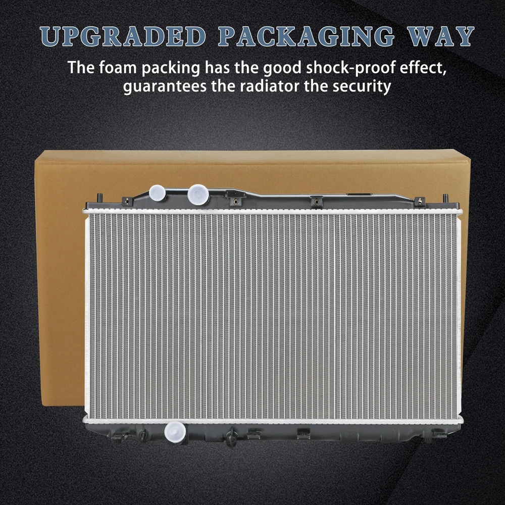 Fitment 2011-2011 Honda Civic 2.0L GAS 2006-2011 Honda Civic 1.8L CNG 2006-2011 Honda Civic 1.8L GAS 2006-2011 Acura CSX 2.0L GAS Specification Inlet Diameter(inch): 1.26 Outlet Diameter(inch): 1.26 Package Weight(kg): 3.77 Package Size(inch):length×width×height: 29.72x5.31x20.67 Core Size(inch): 14.76x26.69x0.63 Interchange Part Number: 2922 Row Count: 1 Core Material: Aluminum Tank Material: Plastic Fitment Type: Direct Replacement Color: Silver Core, Black Tank Radiator Cap: No Style: Downflow Compatibility: MT radiator, without radiator cap ISO Specification: ISO 16949 Features Perfect radiator direct replacing part for car engine cooling system. Radiator is really easy to get damaged during delivery. We have upgraded packaging (EPE foam and cardboard)to prevent aluminum fins, plastic water tank and fitting parts from damage. EPE foam helps fix radiators to reduce wobble. Regularly clean your radiator to prevent clogging that may lower cooling efficiency. Don't mix different brands of coolant. Before you start up your vehicle, please make sure there is coolant in the radiator. Highly recommended to check car cooling system of the whole vehicle before professional installation. We are willing to provide 1 Year warranty service. Highest grade plastic tanks with aluminum core - made to withstand rust and wear. Leak tested & Sealing tested, durable and long-lasting. Direct Bolt-on Replacement with No Additional Time. With plastic cover to prevent dust during delivery. Louvered core fins increase waterflow and accelerate heat transfer to keep your engine running cool. An aluminum core and durable plastic tank prevent rust and corrosion while also limiting weight and promoting longevity. Wider tube or dimpled tube surface increases contact surface area for more efficient cooling. Our radiator is suitable for standard vehicles, not for modified car/vehicles.