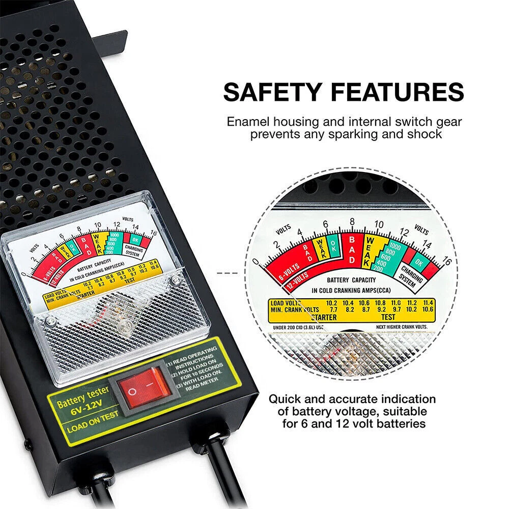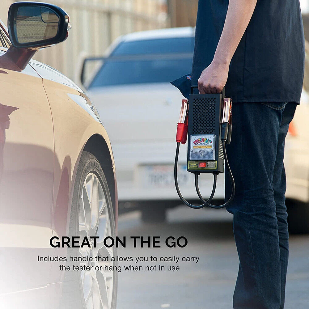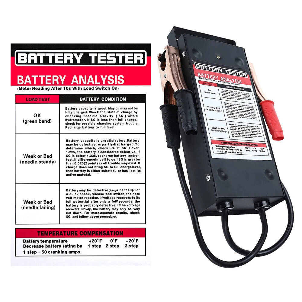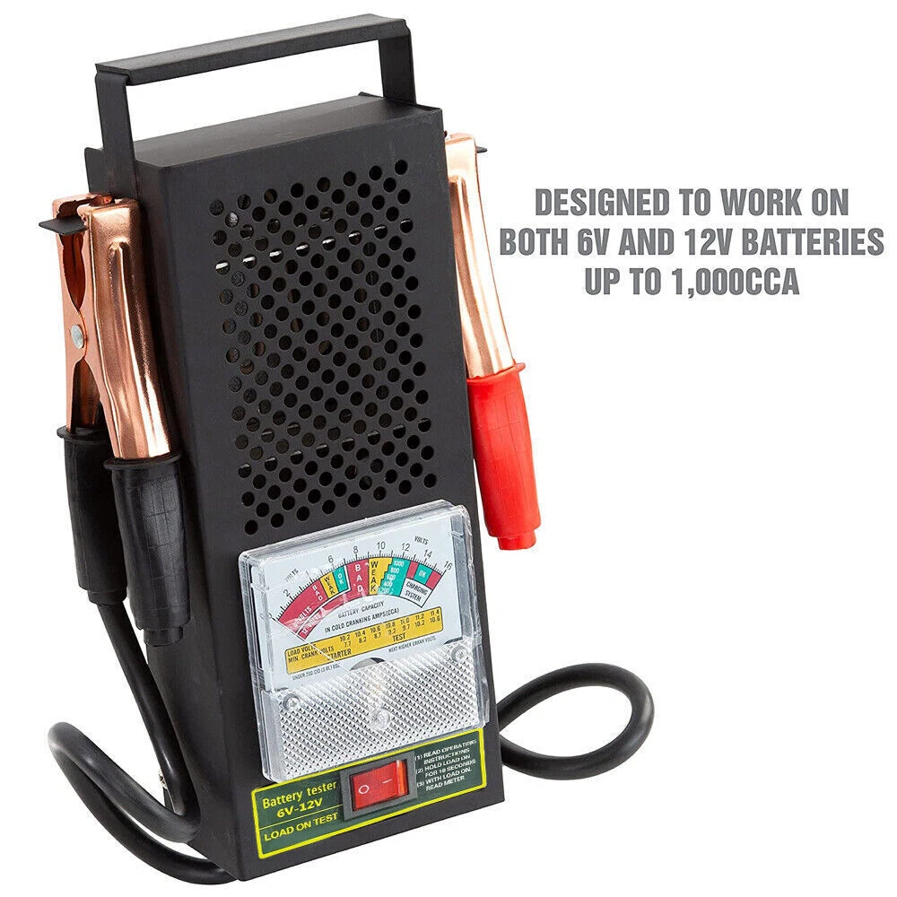Product Description Feature: Tests 6V and 12V batteries up to 1000 CCA, ideal for cars, light trucks, RVs, motorcycles, ATVs, boats and lawn tractor batteries Copper clamp connectors feature red positive and black negative rubber grips to easily designate test clip placement on battery terminals. Fixed load current of 100 AMP, 100 AMP load test for 12V batteries up to 1000 Cold Crank Amps, 50 AMP load test for 6V batteries up to 1000 CCA. Voltage accuracy of ± 0.2V. 5 seconds our battery tester automotive tool will do its job Color-coded analog voltage meter for easy reading It tests three aspects of battery health: battery condition, load, and alternator health Specifications: Item Size:11.4” * 4.3” * 2.2” Load test capacity: 50 amps, 100 amps, Battery capacity: 6 volt, 12 volt Package Included: 1 x Battery Tester 3 Modes Leg Massager Cordless Calf Air Compression Massager W/ Heat Pain Relief. 20.97 USD Free shipping 1/4" Snow Foam Washer Gun Car Wash Soap Lance Cannon Spray Pressure Jet Bottle 10.99 USD Free shipping Solid Brass Garden Spray Nozzle 4" Adjustable Twist Water Hose USA Stock 2 PACK! 9.38 USD Free shipping 5X Replacement Gas Can Spout Nozzle Vent Kit For Plastic Gas Cans Old Style Cap~ 10.97 USD Free shipping 1 Pair Leg Massager Cordless Calf Air Compression Massager Heated Pain Relief US 38.99 USD Free shipping New For Titleist 915 913 910 D2 D3 Driver .335 Tip Shaft Adapter Sleeve 9.35 USD Free shipping