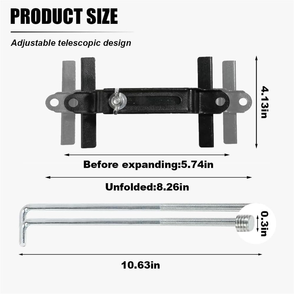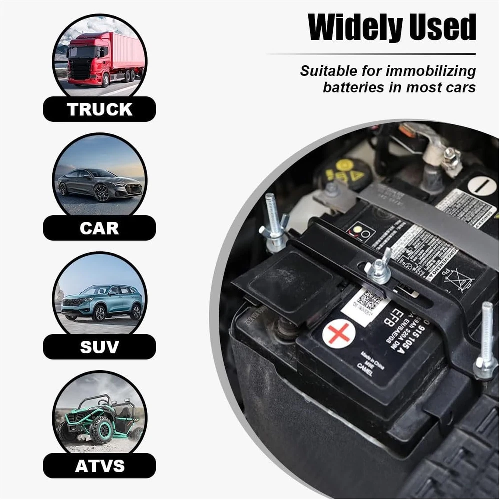 Free eBay listing template designed by dewiso.com Car Battery Hold Down Kit, Adjustable Battery Tie Down Holder, Universal Battery Crossbar with J Bolt, Auto Battery Hold Down Bracket, Car Battery Holder Kit for SUVs Cars Trucks (10.6"/270mm Bolt) FREE AND FAST SHIPPING! About this item 【high-quality Material】:The car adjustable battery holder is made of high-quality iron material, sturdy, rust and corrosion-resistant, wear-resistant, the surface is specially treated, smooth to the touch, and not easy to break or damage, for long-term use. 【Adjustable Design】:The universal battery holder for car features an adjustable battery crossbar and J-bolt, which can be adjusted in length or width according to your needs, convenient for you to fix the battery effectively, the bolt length is 10.63 inches, and the adjustment range is from 5.74 inches to 8.26 inches. 【Easy to Install】:This car battery holder kit comes with wing nuts and washers, convenient for you to install and remove easily, just adjust the height and width, and then hook the J bolts into the holes of the tray, match the washers and tighten the wing nuts to make sure that the battery is securely fixed. 【Applications】:The car battery holder is suitable for most cars, SUVs, trucks, RVs, boats and other vehicles, used to hold the battery to protect the battery from shifting or damage, and can hold almost most sizes of batteries. 【What You Get】:Includes 1 automotive universal battery holder, 2 J-hooks, 2 wing nuts, 2 washers. Lightweight, easy to carry and store. Note: Before purchasing, please check the size of the product to make sure it fits. Product We offer a 30-Day Return Policy on items which you are not completely satisfied with. You have the option for a full-refund or an exchange of the item. No returns are available on items shipped outside of the US . Shipping We offer Free Shipping to the US and ship within 2 business days of payment, usually sooner. We use UPS express shipping. That's why your products are usually delivered within 3 days . Contact We try our very best to make sure every customer is completely satisfied. If there's a problem , message us! We're happy to help. 24/7 live chat available.