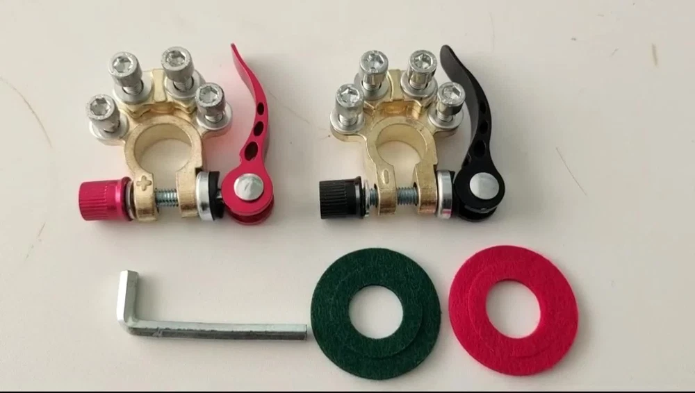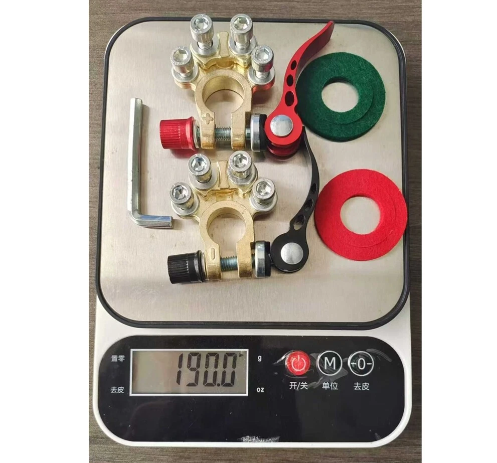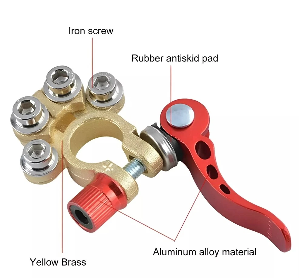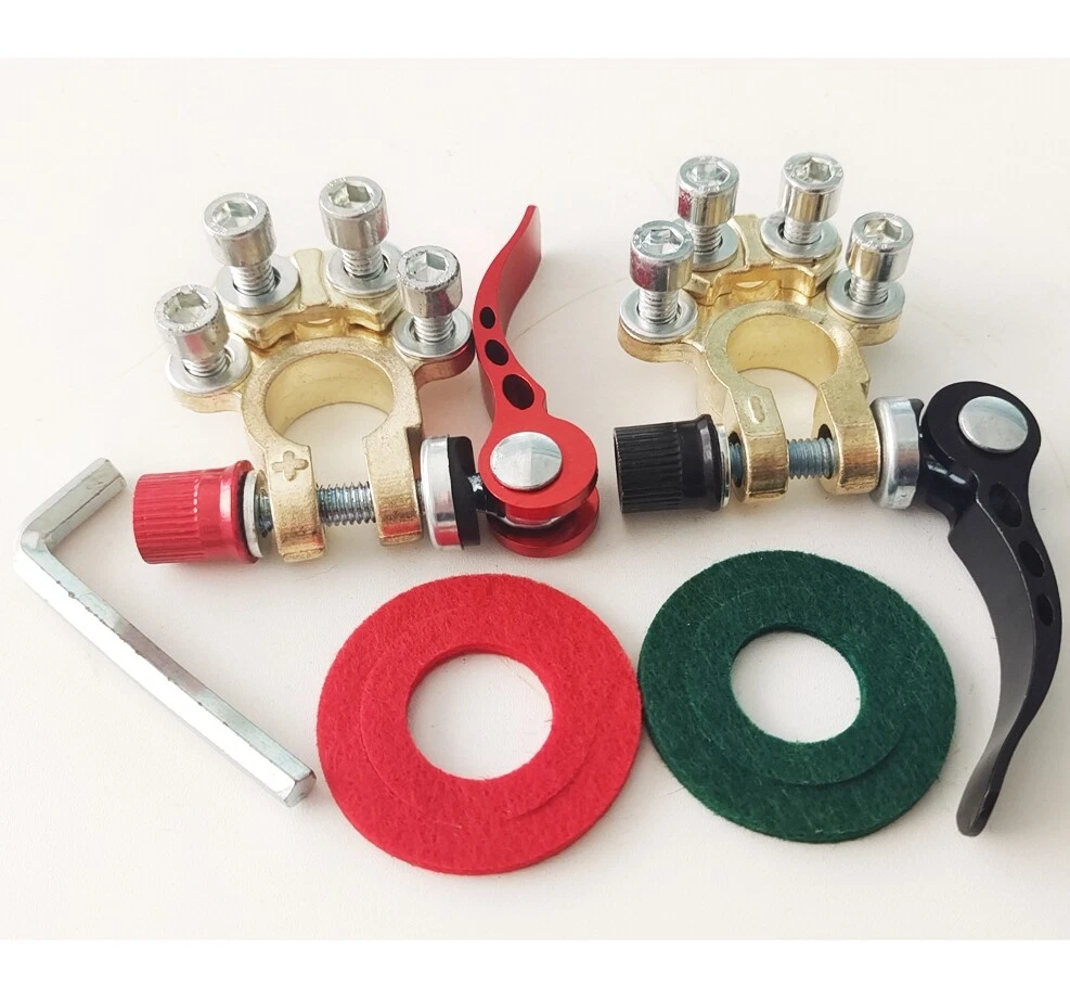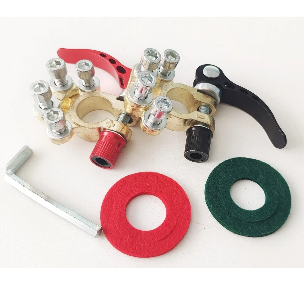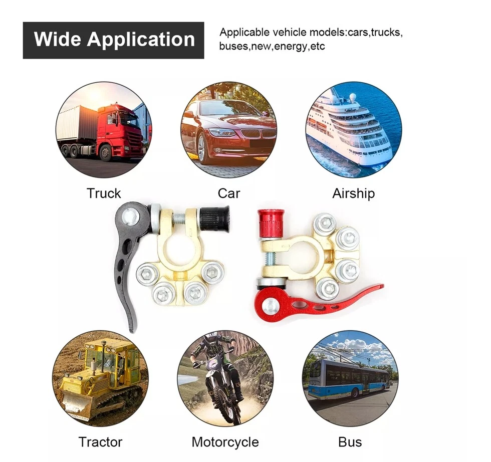 Package includes: 4 pieces of quick disconnect Car Battery Terminals Connectors Features: 4 post wire connection design to accommodate multiple cable connections. The package also includes Allen wrenches for easy installation. Suitable for wire diameters 4.1 - 8.2 mm (AWG gauges 0 - 16) and wire clamps 9.5mm - 6.5mm; can be effortlessly connected to the battery posts after installation. Comes with clearly labelled Positive (17.5mm-19.1mm) and Negative (15.9mm-17.5mm) Battery Terminal Connectors; ensures compatibility with most battery models and can replace worn out or corroded terminals. Wide-ranged application includes Cars, Vans, Caravans, Motorhomes, Truck Batteries, and Car Audio devices Car Battery Terminal Connectors 4Way Quick Disconnect Release Terminal Clip 4Pcs Package includes: 4 pieces of quick disconnect Car Battery Terminals Connectors Features: 4 post wire connection design to accommodate multiple cable connections. The package also includes Allen wrenches for easy installation. Suitable for wire diameters 4.1 - 8.2 mm (AWG gauges 0 - 16) and wire clamps 9.5mm - 6.5mm; can be effortlessly connected to the battery posts after installation. Comes with clearly labelled Positive (17.5mm-19.1mm) and Negative (15.9mm-17.5mm) Battery Terminal Connectors; ensures compatibility with most battery models and can replace worn out or corroded terminals. Wide-ranged application includes Cars, Vans, Caravans, Motorhomes, Truck Batteries, and Car Audio devices Brand Unbranded Manufacturer Part Number Does not apply Country/Region of Manufacture China Warranty 90 Day Positive taper hole size 17.5~19.1mm Type Battery Terminal Connector Material Brass+Aluminum alloy+steel Negative taper hole size 15.9~17.5mm quantity 4 Type 1 Battery Terminal Connector Clamp