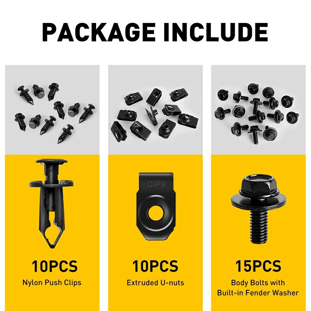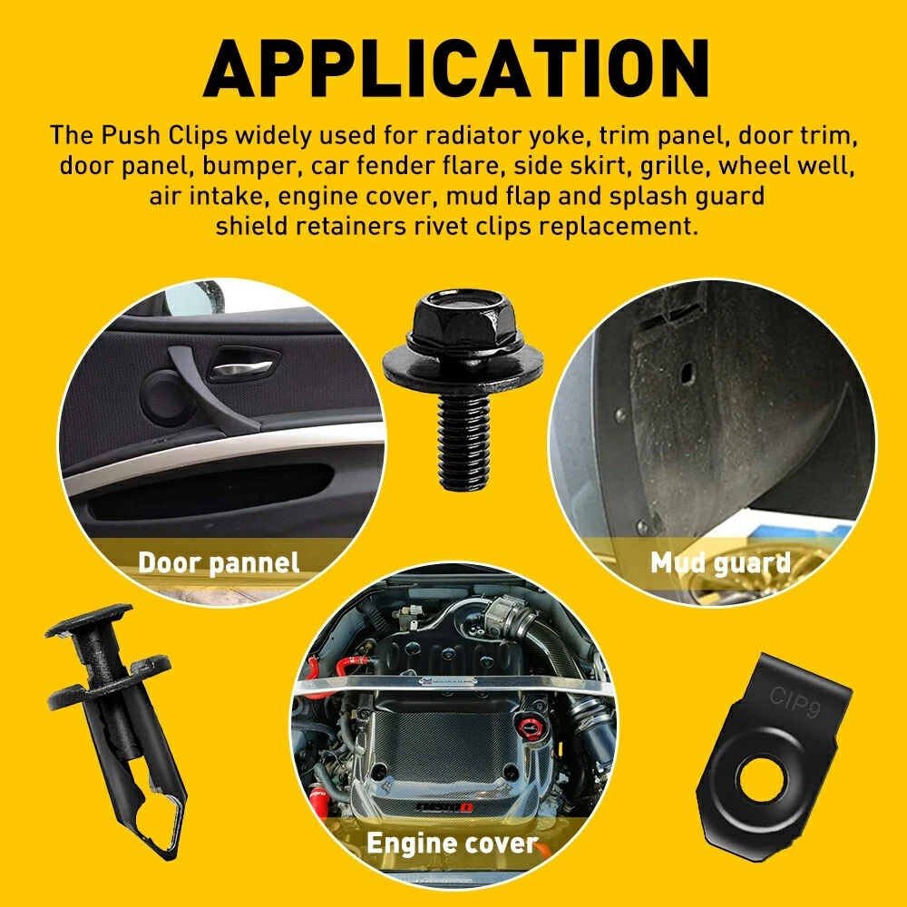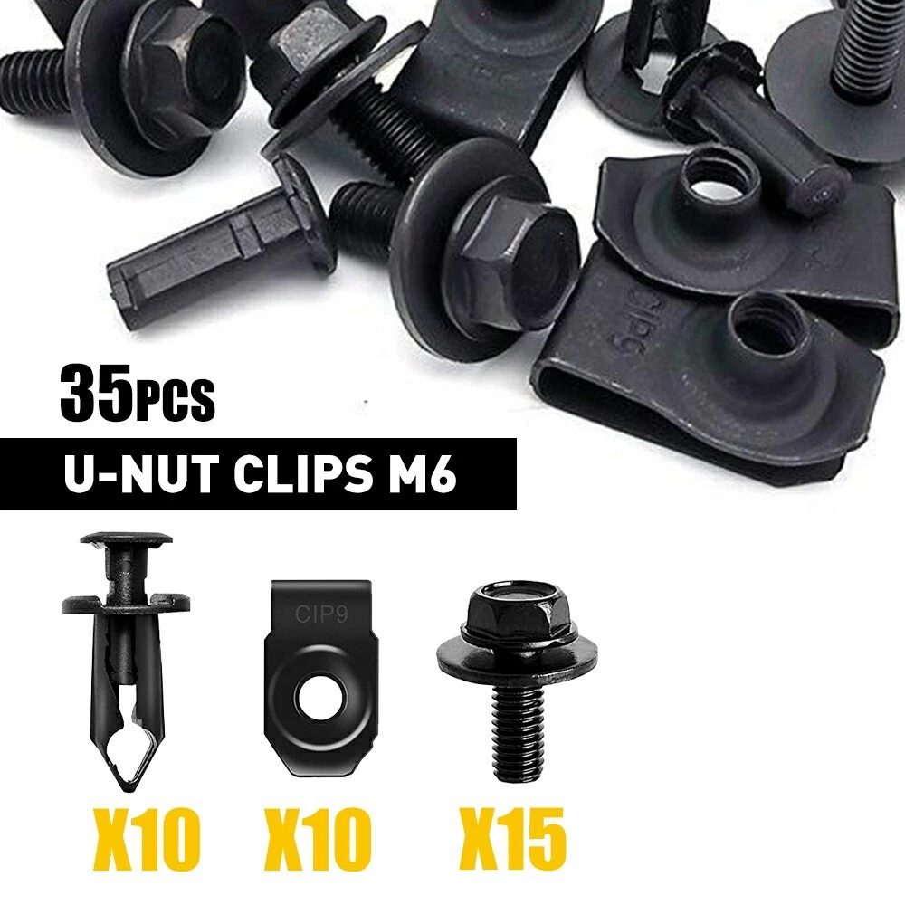 Features: Easy Installation, Heat Resistant, Self-Adhesive, Waterproof Interchange Part Number: Fender Liner Push Retainer Fastener Rivet Clips UPC: Does not apply Type: Bumper Vintage Part: Yes Finish: Black Attachment Type: Clip-On Country/Region of Manufacture: China Color: Black Material: metal, plastic Manufacturer Warranty: 2 Years Vintage Car Part: No Universal Fitment: No Placement on Vehicle: Left, Right, Front, Rear, Upper, Lower OE/OEM Part Number: Engine Under Cover Splash Shield Guard Body Bolts Bumper Screws gtin13: Does not apply Manufacturer Part Number: 35pcs U-nut Clips M6-EXI Other Part Number: 150 Fitment Type: Direct Replacement Performance Part: Yes Brand: Unbranded Superseded Part Number: NA OE Spec or Performance/Custom: OE Spec