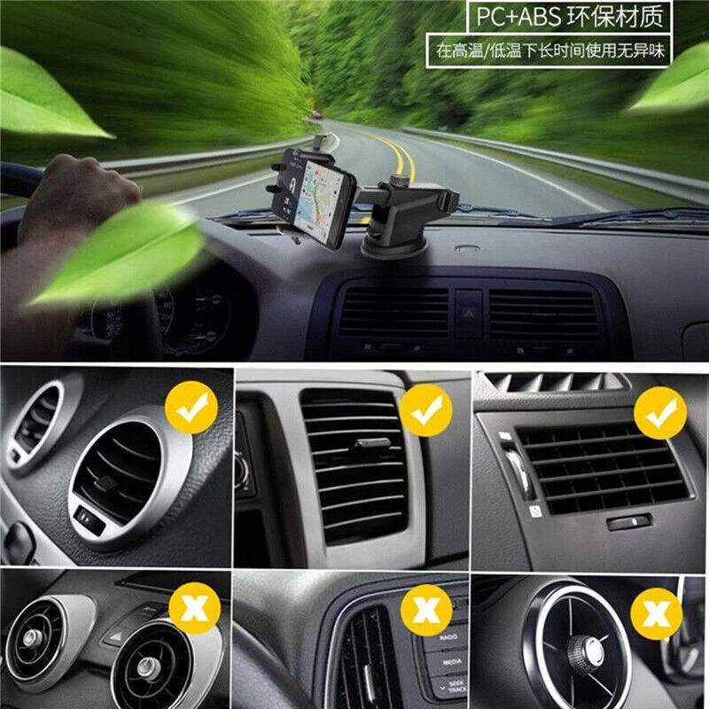 Car Cell Phone Mount Car Windshield Dashboard Air Vent 2 in 1 Universal Phone Mount Holder, Car Cradle for iPhone , Samsung ,Motro,Huawei,XiaoMi,OnePlus,Etc.Smart Phone About 4.3-6.7 inch ♥Universal Compatibility, Adjustable size, This Dashboard Phone Mount Perfectly fit for 3.5-6.7 inch Smart phone, Design for iPhone X/XS/XR/XS MAX/iphone 8/8P,iphone 7/7Plus,iphone 6s/6Plus, Samsung Galaxy S10/SS10+/S10E/S8/S8+/S9/S9+/Note8/Note9, LG, Huawei ,OnePlus and More Smart phone. ♥Full 360 degree multi-angle rotation via adjustable levers on the suction part or via rotating clip holder .Easy Touch ,Easy Used . ♥Material:Made from high quality ABS+PC. At the bottom of the regulator, can adjust left to right, would not obscure vision; move the tap, charging and audio port can be used normally. ♥Can fix on the Instrument Platform, Windshield, Dashboard.Long Neck One-Touch Car Mount.This Set With A Air Vent Holder ,More using Choose you can do with them .Make your driving more Easy and fun 。Please choose which One or a set you need . ♥One-Touch Design,There are enhanced universal easy one touch mounting system in the mount for phone, and locks and releases the device with just a push of a finger. Operating with one hand, Completely free your hands.Please see our listings images show how to control it .Any questions ,please email to us .Thanks . Note: >Material:Made from high quality ABS+PC. >Can fix on the Instrument Platform, Windshield, Dashboard ,Air vent . >Full 360 degree multi-angle rotation via adjustable levers on the suction part or via rotating clip holder. >Plate at the bottom of the regulator, can adjust left to right, would not obscure vision; move the tap, charging and audio port can be used normally. >What you wiil get : Long Neck & air vent holder + One-Touch Car Mount 3 in 1 holder mount /or air vent holder & One-Touch Car Mount /or Windshield Dashboard holder & One-Touch Car Mount . Depends on the product link you have purchased. Please contact with us before leave a negative feedback!Thank you! Country (HK air mail )Delivery Time Working Days (not including holiday) 5-7 8-11 12-14 15-19 20-22 >22 Working Days + Saturday + Sunday 5-9 10-15 16-20 21-25 26-30 >31 United States Rate (item arrived) 5 .1% 50.1% 29.6% 10.5% 4.7% Refund United Kingdom Rate (item arrived) 9.9% 63.2% 19.1% 3.4% 4.4% Refund Australia Rate (item arrived) 21.4% 50.0% 14.3% 7.2% 7.1% Refund France Rate (item arrived) 10.5% 28.6% 43.8% 10.1% 7.0% Refund Germany Rate (item arrived) 11.1% 22.2% 30.3% 20.9% 15.5% Refund Canada Rate (item arrived) 0.0% 47.1% 31.4% 17.6% 3.9% Refund Spain Rate (item arrived) 3.5% 25.0% 47.9% 12.9% 10.7% Refund Payment We accept PayPal ONLY Payment is expected within 3 days. Unpaid item will be filed for Final Value Fee. Please allow up to 3 days for e-Check to clear. We will NOT responsible any import tax, and we will mark the product as gift and the Price also will mark the lowest Shipment Ship to your PayPal Address ONLY. Please confirm it before placing the order Ship to Worldwide All goods will ship out via Hong Kong Post Airmail without Tracking number (Please e-mail us and add US$2 if you need to ship by register mail with Tracknig number). Work Time : Monday - Friday (excluding holidays). Orders received during Weekends & Holidays will be shipped the following business day We usually ship within 2 business day after payment cleared then leave parcel in hands of HK. Warranty and Return Policy We provide 30 days warranty service for all item Buyer MUST pay return postage for any return reason, no exception. In return, we will pay the postage for shipping back the item to you Returns that are a result of customer error will be subject to an actual S&H fee deduction from the refund Contact Any question please feel free to email us. Reply is usually made within 24 business hours. If you could not get our reply within 1 business day, pls email us again in case our emails were blocked outside.