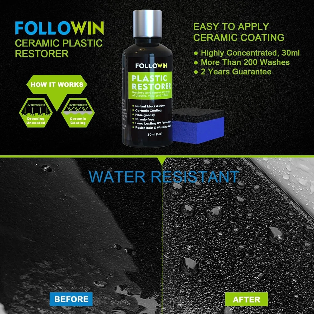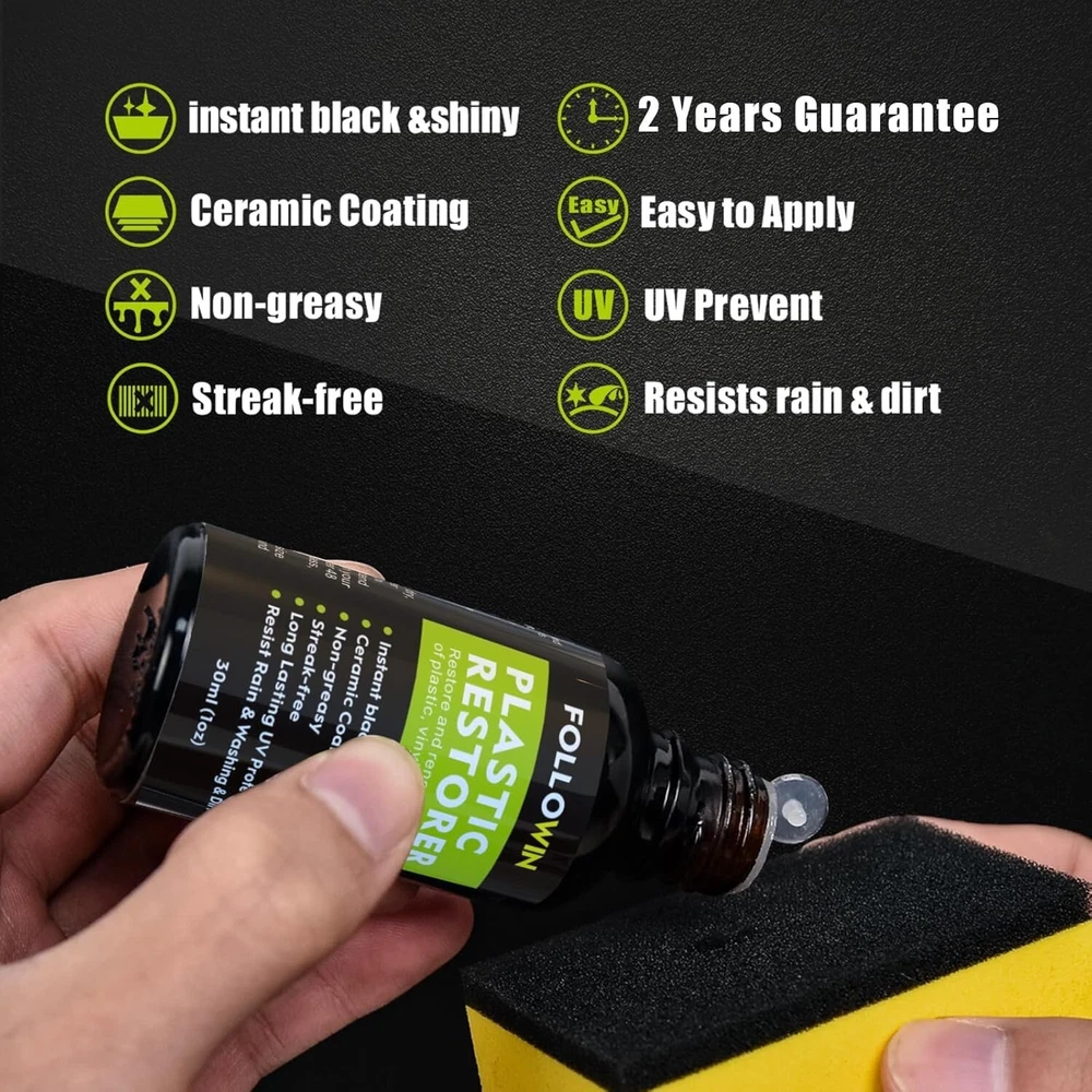 Plastic Restorer for Cars Ceramic Coating Hydrophobic UV Water Resistant 30ml ‹ › ‹ › ‹ › ‹ › ‹ › ‹ › ‹ › ‹ › ‹ › Plastic Restorer for Cars 30ml Ceramic Coating - Hydrophobic & UV Water Resistant Product Features: CERAMIC COATING, NOT DRESSING: Unlike conventional trim products, which offer only temporary solutions, our Plastic & Trim Restorer utilizes a pioneering German formula. This effectively removes oxidation from plastic surfaces and bonds to the pores of unpainted trims while forming a robust ceramic coating. LONG-LASTING PERFORMANCE: Each application requires only 5ml of our highly concentrated restorer, ensuring that one treatment lasts for up to 6 . A full 30ml bottle offers enough product to last up to 3 , standing steadfast against the elements. NON-GREASY FORMULA: Experience a streak-free finish with our restorer's unique formulation, drying completely to the touch after application. It effectively prevents premature aging, cracking, and fading, ensuring your vehicle maintains that immaculate appearance. EASY APPLICATION: We include a free applicator for a hassle-free experience. Simply pour a few drops onto the applicator, spread it evenly over the surface, and wipe off the excess. The product absorbs quickly, leaving behind a radiant shine. VERSATILE USE: Perfect for use on bumpers, mirror housings, door handles, vinyl rooftops, and all your plastic interior trims. For best results, ensure thorough cleaning and drying before application. Why Choose Our Plastic Restorer? If you desire to restore your vehicle's plastic surfaces back to showroom condition, our Plastic Restorer is your ultimate solution. Engineered for durability and efficiency, it not only enhances the shine but also protects against harsh weather conditions with its UV-resistant properties. Don’t let time and the environment diminish your car's exterior. Invest in our Plastic Restorer today and ensure your vehicle turns heads wherever you go! Shipping Free & Fast Shipping - We offer free shipping to most of the USA with a normal delivery time of 3-7 days. However, due to the current situation, additional delivery time (up to 3 weeks) may be required for some items. Alternative Carriers - We may use alternative carriers (e.g. USPS, FedEx, UPS, etc.) to ensure your package arrives safely and on time. Due to the use of multiple carriers, we are unable to provide a tracking number automatically. Handling Time - Orders are processed and shipped within 1-2 business days of receiving cleared payment. Shipping Restrictions - Shipping to Alaska, Hawaii, Puerto Rico, Guam, and other US territories may incur shipping charges or delivery restrictions. Please contact us before ordering, or your order can be refunded/cancelled. State Restrictions - There may be restrictions based on your state of purchase. For example, certain items may not be shipped to California due to state regulations. Contact for Tracking Updates - If you require tracking updates or have any concerns about the delivery of your order, please feel free to contact us, and we will be happy to assist you. Return 30-Day Hassle-Free Returns - We want you to be completely satisfied with your purchase. If you are not, you can return the item within 30 days of receiving it for a full refund or exchange. Easy Return Process - To start a return, simply contact us and we will provide you with a prepaid return shipping label and detailed instructions. Restocking Fee - There are no restocking fees for returns. However, the buyer is responsible for return shipping costs if the return is not due to a seller's error. Refund Processing Time - Refunds will be processed within 5 business days of receiving the returned item in its condition. Payment We accept all major credit cards, PayPal, and Apple Pay for your convenience. Your payment information is secure and encrypted to ensure a safe and seamless transaction. Please complete your payment within 3 days of purchase to avoid any delays in shipping. Feedback Your feedback is extremely important to us. We strive to provide the best products and customer service possible. If you are satisfied with your purchase, please take a moment to leave us a positive review. If you have any concerns or issues with your order, please contact us before leaving negative feedback. We are committed to resolving any problems and ensuring your satisfaction. Contact Us If you have any questions or concerns, please feel free to out to our customer support team. You can contact us through the eBay messaging system. We are available Monday to Friday, 9:00 am to 5:00 pm EST, and we will do our best to respond to your inquiry within 24 hours. Buy it now and enjoy a pleasant shopping experience! Manufacturer Part Number: Car Plastic Restorer Unit Quantity: 1.01 fl oz Type: Plastic Restorer : Car Plastic Restorer Country/Region of Manufacture: Car Plastic Restorer Unit Type: fl oz