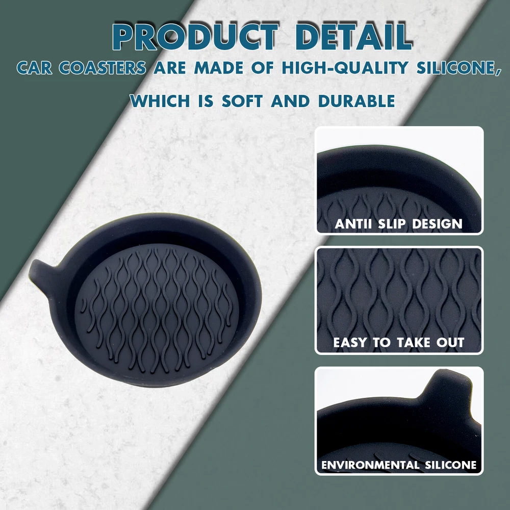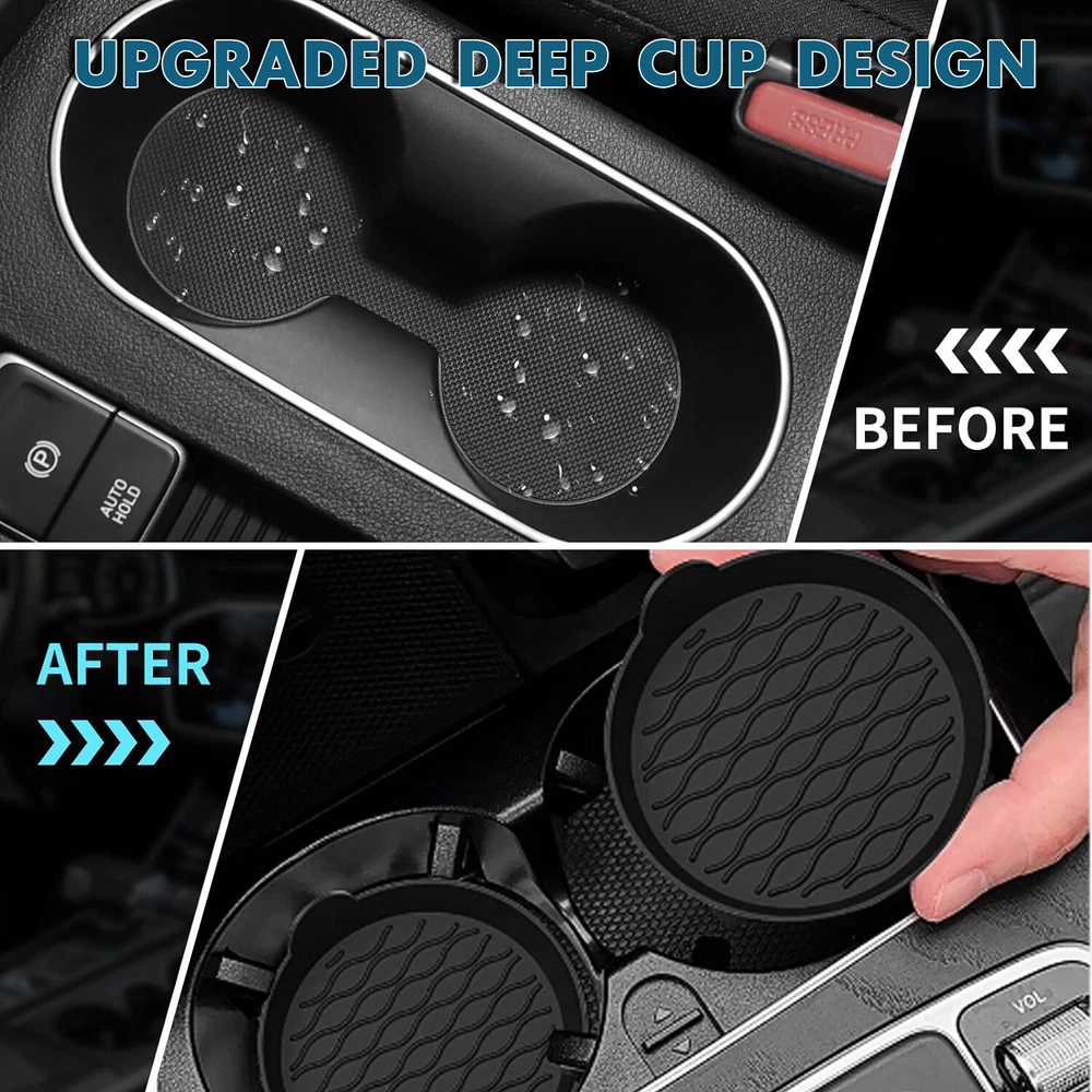 Store Categories Store Categories Other Car Cup Holder Coaster, Silicone Cup Holder Insert, Universal Non-Slip Cup Holde Product Description Protection for Car Cup Holder: Deep cup shape design with non-slip base, the coasters can catch and hold spills, condensation, crumbs and other messes to make your car clean, and also keeps cans and bottles from scratching or damaging your car cup holder. High Quality Silicone Material: These cup holders are high temperature resistance, so you can also use them in the office or at home for coffee cup or tea cups and so on. Universal Deep Cup Shape Design: Diameter of the bottom base is 2.8'', and top is 3.15'', which is universal fit for cup holders of most cars, SUVs, trucks, vans and boats. The deep cup shape is sift-proof for liquid and other messes. Easy to Clean: Unique finger slot design for easy placement and removal, and the coasters are fully washable under water. Shipping Policy Returns Policy Contact us Shipping Policy We process and dispatch your purchase within 1 business day after payment clearance. Please conta ct us if you have special requirements (combination of packaging etc.). We offer free USPS First Class Package as default. If you choose express post, we charge a flat rate and we Express Post, which can be delivered in 1-3 business days, depending on your locatio n. If you require another company, please contact us. Returns Policy Please contact us first when return, exchange and refund is required. Any direct return of purchased items will not be processed. Buyer is responsible for the return cost. Change-of-mind return can only be accepted within 8 days after purchase. All other returns can be accepted in 30days. Contact us If you are satisfied with the product you received,please leave us positive feedback and 5 scores DSR. Please give us the opportunity to resolve any problem. We understand the concerns and frustrations you might have, and will try our best to resolve the issues. We care about our valued customers, and will always try to help you. So if you have any problems, please e-mail us immediately. Copyright © 2023 Dianxiaomi