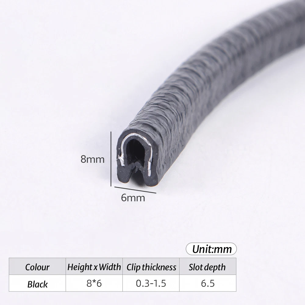 Black Rubber U Channel Edging Trim Seal Door Window Edge Protector Strip U-shape