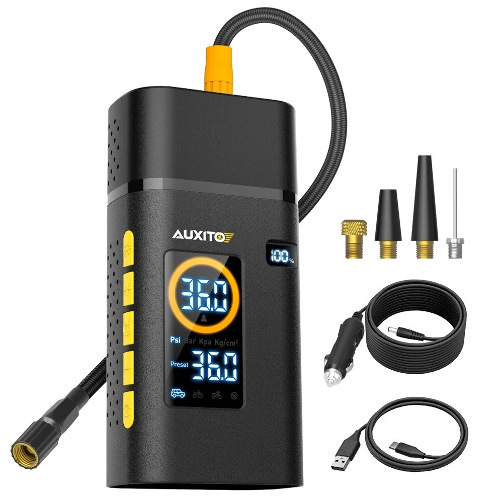 Portable Tire Inflator 150PSI Air Pump for Car Tires,with Digital Pressure Gauge and Led light,for Car,Motorcycle,Bike,Ball Specification: Brand:AUXITO Voltage:11.1 Volts Recommended Uses For Product:Tire Inflation Power Source:Battery Powered/DC Powered Noise Level:≤75 dB Features: *4+1 Inflation Mode The air compressor has four types of pressure units: PSI, KPA, BAR, and KG/CM ². There are four preset inflation modes: bicycle, motorcycle, car, and ball. The fifth custom mode can also set pressure values based on the inflation object to meet various inflation needs. It is an essential product for daily life and travel. *3 modes LED light Car Electric Air Pump 150PSI Air Compressor Portable Tire Inflator For Car Bike Portable Tire Inflator 150PSI Air Pump for Car Tires,with Digital Pressure Gauge and Led light,for Car,Motorcycle,Bike,Ball Specification: Brand:AUXITO Voltage:11.1 Volts Recommended Uses For Product:Tire Inflation Power Source:Battery Powered/DC Powered Noise Level:≤75 dB Features: *4+1 Inflation Mode The air compressor has four types of pressure units: PSI, KPA, BAR, and KG/CM ². There are four preset inflation modes: bicycle, motorcycle, car, and ball. The fifth custom mode can also set pressure values based on the inflation object to meet various inflation needs. It is an essential product for daily life and travel. *3 modes LED light The tire inflator portable air compressor with pressure gauge comes which super bright LED light with 3 lighting modes (SOS, Normal and Strobe), ensuring you can easily inflate and change tires at night or deal with emergencies even in low light conditions.Perfect for inflating cars, motorcycles,bicycles,balls so on.And it also has a warning light function that can send a warning signal to alert other vehicles and pedestrians in case of vehicle breakdown or emergency. *Advanced Screen Display The portable air pump built in high-performance chip, it can quickly inflate tires and provide high-speed airflow. Inflate small car tires in less than 1 minute. The large-sized LED display screen displays real-time pressure values and preset values, making it easy to monitor tire pressure status. The automatic shutdown design can also prevent excessive inflation, making it safe to use. * Persistent Power Tire Inflator This tire inflator comes with a built-in 20000mA rechargeable battery for power supply, eliminating the need to connect to an external power source during use. The inflation speed is three times faster than other ordinary cordless inflators on the market, with a 35% increase in power. It can inflate 12 car tires or 30 Racing bicycle tires, away from the problem of low power. *Preset values for different modes and adjustable pressure ranges Car: 36PSI(26-50PSI) 2.5Bar(1.8-3.5Bar) 250Kpa (180-350Kpa) 2.5Kg/cm2(1.8-3.5Kg/cm2) Bicycle: 45PSI(30-120PSI) 3.1Bar(2.1-8.3Bar) 310Kpa (210-835Kpa) 3.1Kg/cm2(2.1-8.3Kg/cm2) Motorcycle: 32PSI(26-45PSI) 2.2Bar(1.8-3.1Bar) 220Kpa (180-315Kpa) 2.2Kg/cm2(1.8-3.1Kg/cm2) Ball: 9PSI(4-16PSI) 0.6Bar(0.3-1.1Bar) 60Kpa (30-110Kpa) 2.5Kg/0.6cm2(0.2-1.1Kg/cm2) User-defined: 30PSI(3-150PSI) 2.1Bar(0.2-10.3Bar) 210Kpa (10-995Kpa) 2.1Kg/cm2(0.2-10.3Kg/cm2) Packaging include: portable tire inflator*1 Item Specifics Brand AUXITO Type Air Compressor Voltage 11.1 Volts Recommended Uses For Product Tire Inflation Power Source Battery Powered/DC Powered Noise Level ≤75 dB Manufacturer Warranty 5 Years FAQ ♥ If you have a decoding problem or any other problems, please contact us first, we will help you with it. We will reply you within 24 hours in working days. I'm a new seller, thanks a lot for your trust and convince! I will serve you with all my heart. ♥ Q1: Will this bulb fit my vehicle? A: We can match almost any vehicle to one of our bulb sizes. eBay only lets us include some vehicle fitments per listing, but if your vehicle does not show up on the compatibility table at the top of our listings, welcome you to contact us for free consulation before purchasing a product. Q2: My item has not arrived, what's taking so long? A: Sometimes items take longer than expected, especially if it’s going far or to rural area. Check with your post office to see if your item has been held up. Sometimes Royal Mail will not update a tracking number until it has arrived at its destination. If your item still don't arrive after a few days, let us know so we can double check for you and help solve it asap. Q3: My bulbs won't fit, help! A: Special bulb holder may be required. See if you can take the holder from the stock bulb. If not, let us know. The bulb size may be wrong, double check the item you received with the item you ordered. Do you have an aftermarket lighting housing? These may not be perfectly fitted for aftermarket bulbs and will require some manual modifications. Q4: Neither side lighting up? Both sides flicker, hyper flash, or work inconsistantly. A:Check the light fuses, and then check the ballast plugs to insure correct installation. If this doesn't work, there may be a voltage problem with the vehicle. You probably just need a relay or capacitor. Even though some bulbs are builtin resistors, they may still need a decoder. Pay & Ship (1). We gladly accepts payment via PayPal, We will ship your item(s) within 24 hours. (2). Before payment, please keep the consistency of Paypal address and ebay address. (3). Quantity orders are welcome! Returns (1). We offer 60 days free return policy. Please contact us within 60 days from the date you receive your order if you have any issues with the product or want return. Refund will be send after we got your resend package. (2). All returned items should be in the original packaging , return tracking information should be provided . Contact Us (1).Negative feedback will not help resolve any problems you have, please contact us via eBay messages before leaving negative feedback , our customer service will make best effort to help you with the issues. (2).We maintain high 
