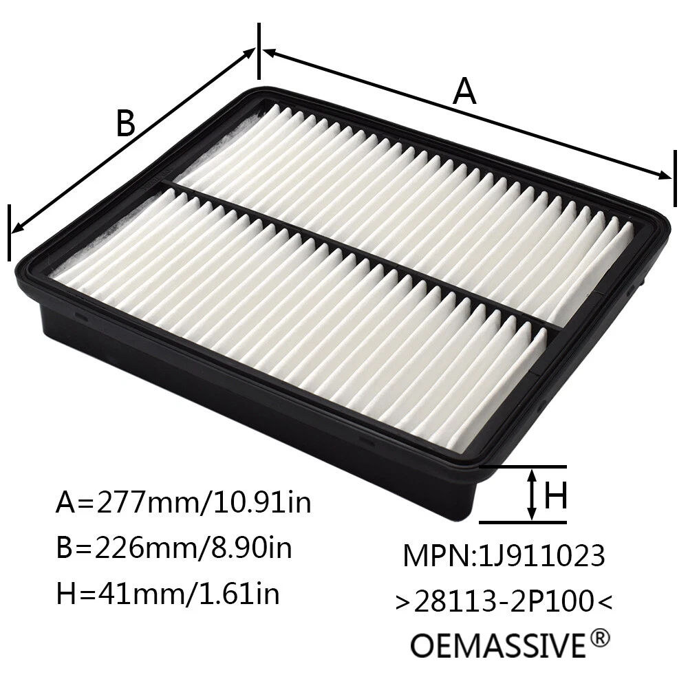 Car Engine Air Filter 28113-2P100 For Hyundai Sonata Santa Fe Azera Kia Sorento Please check OE number and the filter size in the image Brand: OEMASSIVE Manufacturer Part Number: 1J911023 Reference OE/OEM Number: 28113-2P100, 28113-3R200 Interchange Part Number: 28113-2P100, 28113-3R200 Other Part Number: CA10881, AF6124, FA-1889, 96910360, A3193C, A36124, A6124, AF5185, AF5221, LAF6889, R83250, WAF5185, 49264, PA6277, TA262, AF791, SA10881, P9250, PA6124, AF1434, 2AF791, 33-2448, 421812, 46949250, 61949250, 69250, 83250, 9250, AF10881, XA6124, PAB10881. Type: Car Engine Air Filter Manufacturer: Xukey Fitment : For Hyundai Azera 2012-2017 3.3L 3342CC V6 GAS DOHC Naturally Aspirated For Hyundai Santa Fe 2010-2012 2.4L 2359CC l4 GAS DOHC Naturally Aspirated For Hyundai Santa Fe 2010-2012 3.5L 3470CC V6 GAS DOHC Naturally Aspirated For Hyundai Sonata 2011-2014 2.0L 1998CC 122Cu. In. l4 GAS DOHC Turbocharged For Hyundai Sonata 2011-2014 2.4L 2359CC l4 GAS DOHC Naturally Aspirated For Kia Optima 2011-2015 2.0L 1998CC 122Cu. In. l4 GAS DOHC Turbocharged For Kia Optima 2011-2015 2.4L 2359CC l4 GAS DOHC Naturally Aspirated For Kia Optima 2011-2015 2.4L 2359CC l4 ELECTRIC/GAS DOHC Naturally Aspirated For Kia Sorento 2011-2013 2.4L 2359CC l4 GAS DOHC Naturally Aspirated For Kia Sorento 2011-2013 3.5L 3470CC V6 GAS DOHC Naturally Aspirated For Kia Cadenza 2014-2016 3.3L 3342CC V6 GAS DOHC Naturally Aspirated Please BE AWARE that the vehicle compatibility list may not be 100% accurate. However, the OE number provided in our listing is. Ifyou are not certain about compatibility of the parts you wish to purchase, send us your VIN. Match the result with the OE number we have in the listing and that would be the Best way to guarantee fitment. Recommended Replacement Cycle: 1. Half A Year 2. Over 10000 Kilometers Item Description : Composition: 1pc Engine Air Filter Size: As the Picture Shown Color: Blank And White Material: Filter Paper We accept Paypal and majoy credit cards payment When you place an order, please choose a shipping method and pay for the order including the shipping fee within 48 hours. And please make sure your current address correct after your payment within 1-2 days! About Shipping 1. Receiving time = Processing time + Shipping time 2. Processing Time: Around 1-3 Days 3. Shipping Time: 15-26 Days By Air Mail 3-10 Working Days By Express We do not guarantee delivery time on all international shipments due to differences in customs clearing times in individual countries, which may affect how quickly your product is inspected! Important Notice >Transit Time Is Best Estimated But NOT Guaranteed As Transit Time Varies >Orders may be subject to import taxes, customs duties and fees levied by the destination country.Additional charges for customs clearance must be fulfilled by the recipient; We no control over these charges, nor can we predict what they may be. 100% Customer Satisfaction Is Our Top Priority For Any Reasons You Are Not Satisfied With The Products Within 30 Days Of Purchase, Return Or Exchange Can Be Issued, Customers Are Responsible For The Return Shipping Cost And Subsequent Replacement Shipping Cost For An Exchange Item. Replacement Item Will Be Processed And Shipped Upon Return And Inspection Of The Original Item. Return Items Must Be In Their Original Packaging And Unused Condition, Or They Will Be Rejected And Sent Back To You. Due To The Nature Of The Products We Sell, We Carefully Inspect All Packages Prior To Shipping. All Of Our Products Are Sold As Brand New, All Damaged Products Are Considered Damaged During Transit. If You Received A Damaged Or Broken Item, Please Save All Packaging Material And Paperwork And Contact Us Immediately So We Can Help You With The Damage Claim With The Shipping Carrier. No Claims Will Be Honored After 14 Days Upon Item Receive. Digital Photos Will Be Required For All Cases. All Products Come With A 60 Days Limited Warranty Against Manufacturer’s Defects. No Exchange Will Be Issued On Products That Have Been Damaged In Any Way. Warranty Does Not Applied To Improper Installation, Water / Fire Damage, Modification, Or Any Acts Of Nature . If you have any question or concern, please feel free to contact us via eBay massage directly, we will get back to you as soon as we are available ATTENTION : We do not answer any emails over the weekend Please send message to us.We will reply your message in 24 hours, Our working time: 9:00 AM-22:30 PM (GMT+ 08:00 Beijing) 1:00 AM -14:30 PM (GMT+ 00:00 London) 19:00 PM-08:30 AM (GMT- 06:00 USA/Canada) Why Choose us? 1. A tremendous variety of products-- With over 200,000 items in stock, we are one of the world's largest online stores in automotive aftermarket product sector. You'll have more choices than what you can ever imagine. What's more, we're updating with over 100 new arrivals per month! 2. Affordable prices -- we are offering the latest car parts and accessories for almost 20 years, we're always keeping up with the newest trends, while most importantly, making the prices as low as we can. 3. Free worldwide shipping -- Yep, you won't believe that you'll enjoy free worldwide shipping with us (unless stated otherwise),it's not a joke,but an absolute truth. 4. No-question refund and return-- Anything wrong issuing quality and breakage can be returned or refundable. Please check OE number and the filter size in the image Brand: OEMASSIVE Manufacturer Part Number: 1J911023 Reference OE/OEM Number: 28113-2P100, 28113-3R200 Interchange Part Number: 28113-2P100, 28113-3R200 Other Part Number: CA10881, AF6124, FA-1889, 96910360, A3193C, A36124, A6124, AF5185, AF5221, LAF6889, R83250, WAF5185, 49264, PA6277, TA262, AF791, SA10881, P9250, PA6124, AF1434, 2AF791, 33-2448, 421812, 46949250, 61949250, 69250, 83250, 9250, AF10881, XA6124, PAB10881. Type: Car Engine Air Filter Manufacturer: Xukey Fitment : For Hyundai Azera 2012-2017 3.3L 3342CC V6 GAS DOHC Naturally Aspirated For Hyundai Santa Fe 2010-201