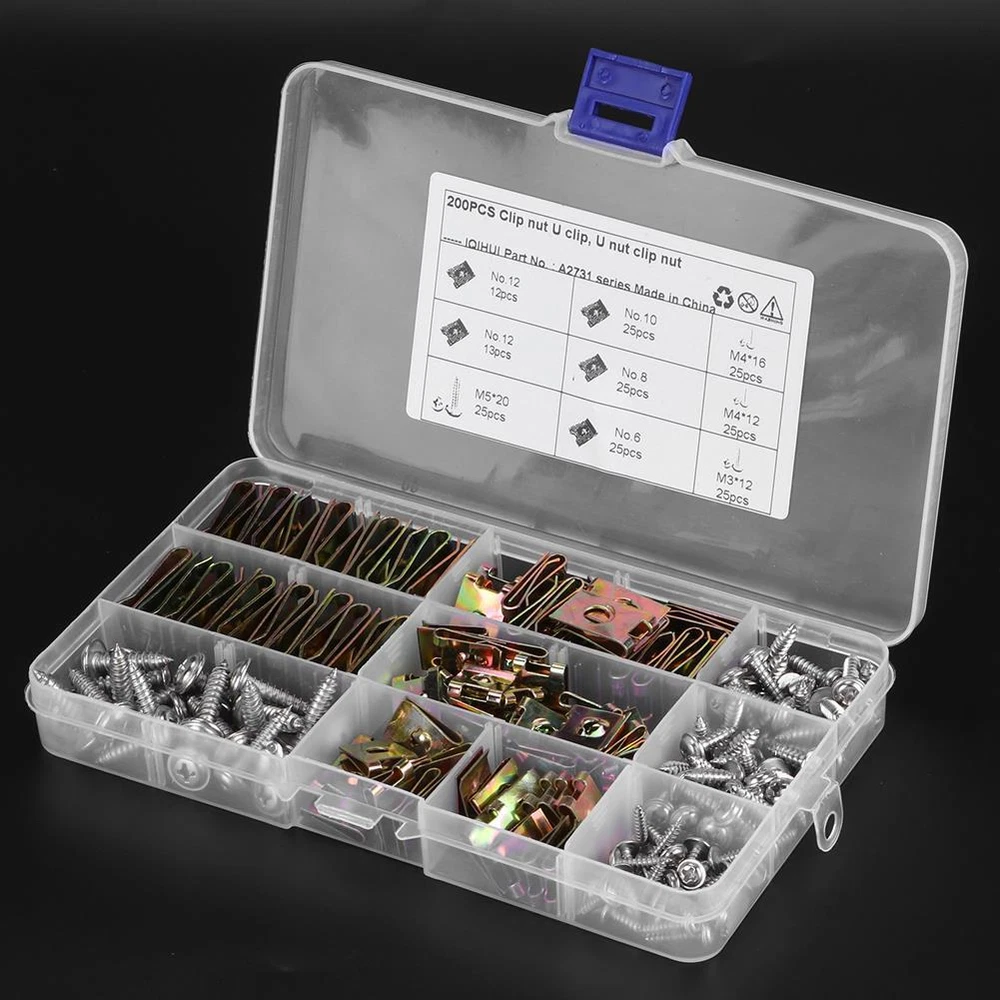 Condition: 100% Brand New Item Type: U-Clips Material: 65 Manganese Steel + 304 Stainless Steel Color: As picture shown Specification: No.6-25pcs M3x12-25pcs No.8-25pcs M4x12-25pcs No.10-25pcs M4x16-25pcs No.12-25pcs M5x20-25pcs Application: Suitable for motorcycles, automobiles, etc.