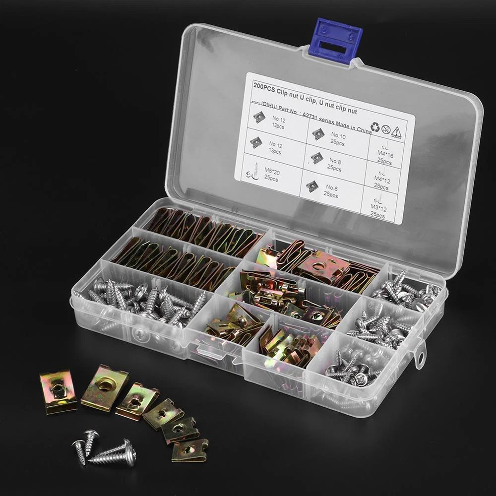 Condition: 100% Brand New Item Type: U-Clips Material: 65 Manganese Steel + 304 Stainless Steel Color: As picture shown Specification: No.6-25pcs M3x12-25pcs No.8-25pcs M4x12-25pcs No.10-25pcs M4x16-25pcs No.12-25pcs M5x20-25pcs Application: Suitable for motorcycles, automobiles, etc.