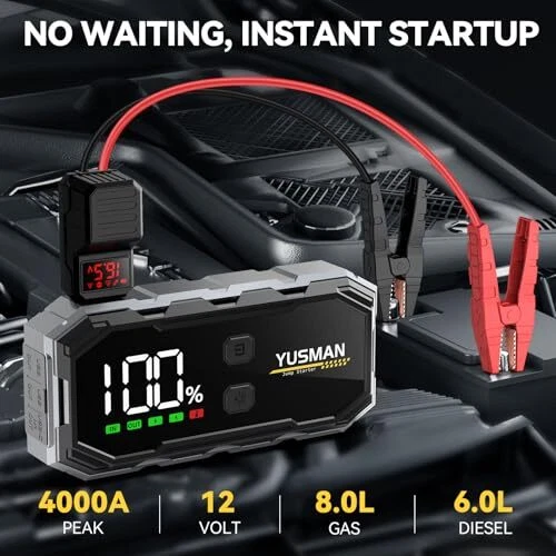 Return Policy Fast Delivery Trusted seller Car Jump Starter, 4000A 12V Jump Starter Battery Pack (8.0 Gas/6.0L Diesel), Safe Car Jumper Box with Display, Car Jump Starter with Extended Smart Jumper Cables, Quick Charge 3.0, LED Light Product Description POWERFUL JUMP STARTER: 4000A Car Jump Starter easily starts your battery in seconds, Starting a drained battery (up to 8L Gas engines and 6L diesel engines). The jump starter can easily restart an unloaded 12V vehicle without fear of extreme temperatures (-4°F~140°F). 1000+ recharge cycles, up to 40 jump starts on a single charge. 12800mAh POWER BANK: car jump starter built-in 4 high-capacity lightweight battery packs, and 3 USB charging ports, the battery jumper starter portable also works as a long-lasting power bank. The fast-charge USB port can fully charge your cellphones, tablets, and other mobile devices at the fastest speed possible. SMART SAFETY PROTECTION & LCD DISPLAY: The battery jump starter works with intelligent jumper clamps which provide multiple security protections to ensure it's safe to use. The car jump starter's LCD shows important data such as battery level, charge status, and battery temperature, making the jump starter easier and clearer to use. ALL-IN-ONE EMERGENCY LED FLASHLIGHT: Beyond jump-starting, our product serves as a multi-functional emergency tool. Equipped with a powerful LED flashlight and SOS mode, it's perfect for nighttime emergencies or outdoor adventures. The car jump starter's LED work light has 4 modes: Normal, SOS, Strobe, and Warning Light. COMPACT AND PORTABLE DESIGN: This Jump Starter has an EVA storage case that allows you to store this car jump starter more conveniently. The Car Jump Starter is lightweight build allows you to take it with you wver you go, ensuring you never get stranded with a dead battery again. IN THE BOX: The package includes a Portable Lithium Car Battery Jump Starter Pack, Heavy-Duty Battery Clamps, USB Type-C Charging Cable, EVA Storage Case, and User manual. Note: Please charge the jumper fully when you first time receive it, though it shows full power. It is suggested to start the car when power is greater than 25%. Please recharge the car jump pack every 2-3 months to activate the battery jump starter and prolong the lifespan of the portable jump starter. Shipping Returns Payment Shipping Shipping is FREE to all addresses other than APO/PO boxes in the lower 48 states. All our stock ships from US-based warehouses. Shipped via USPS or UPS (depending on location and package weight) Unless stated otherwise, all orders will ship within 24-72 hours of your payment being processed. Check our feedback to see the great reviews of FAST shipping we offer. Returns Seller does not accept returns Payment We currently accept payment via eBay managed payments only. Once payment is cleared, we will dispatch your shipment within 1-3 business days. Please refer to the "Shipping" tab for more information regarding shipping speed to your destination.